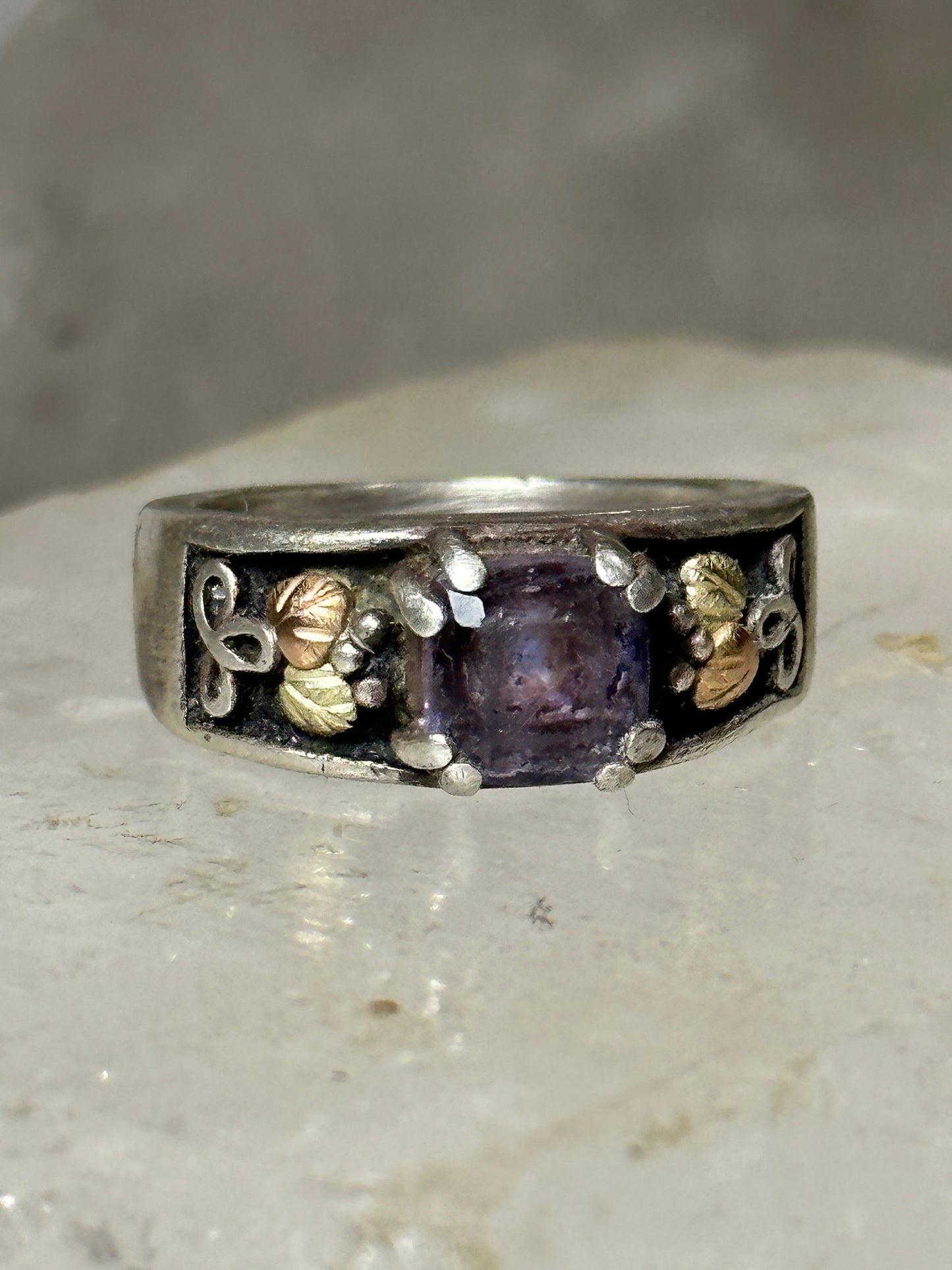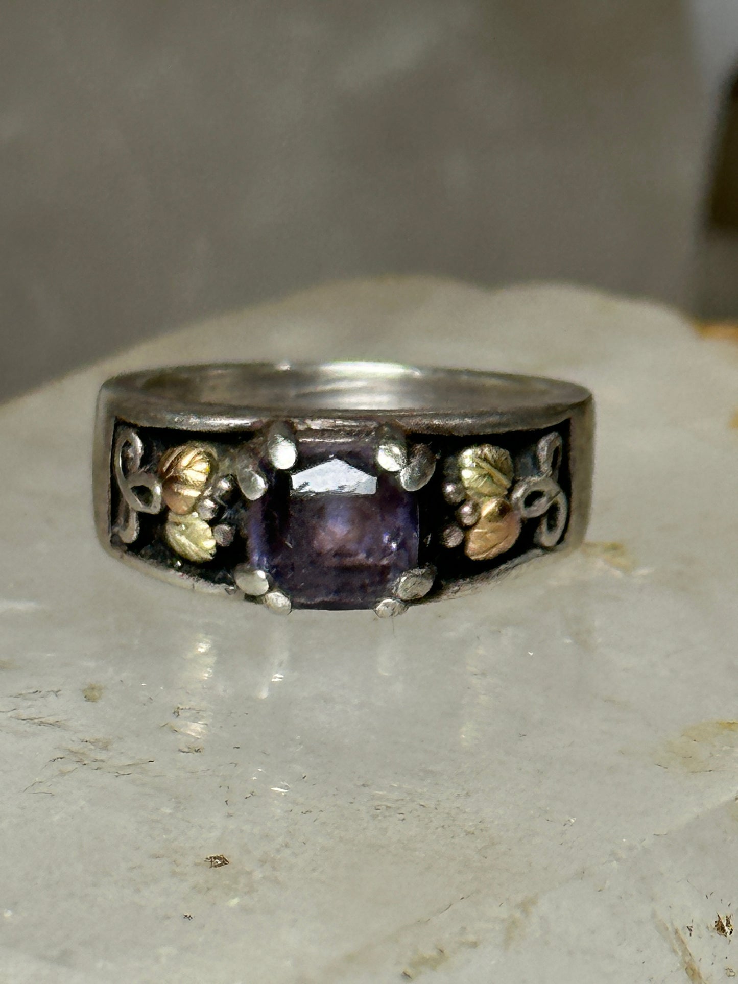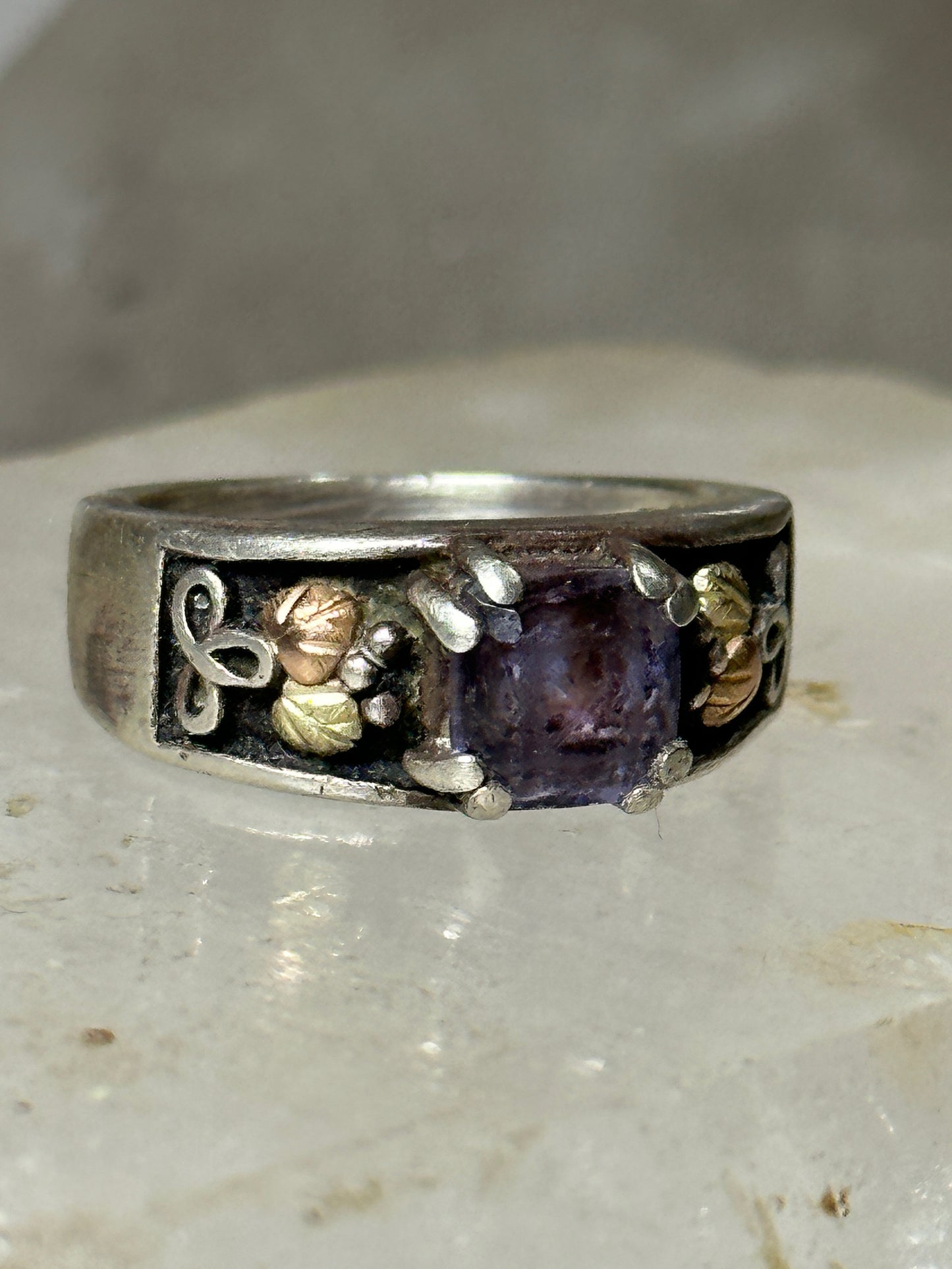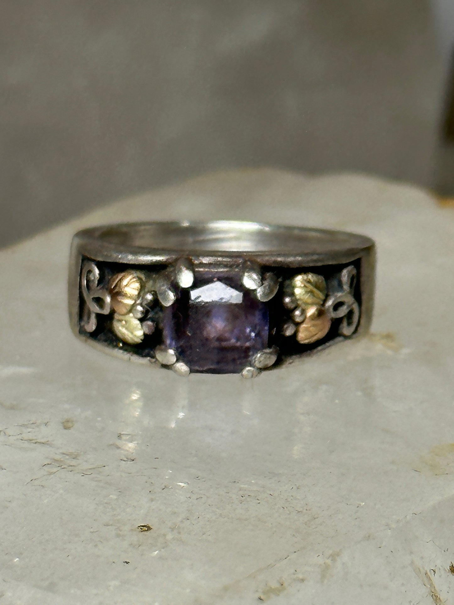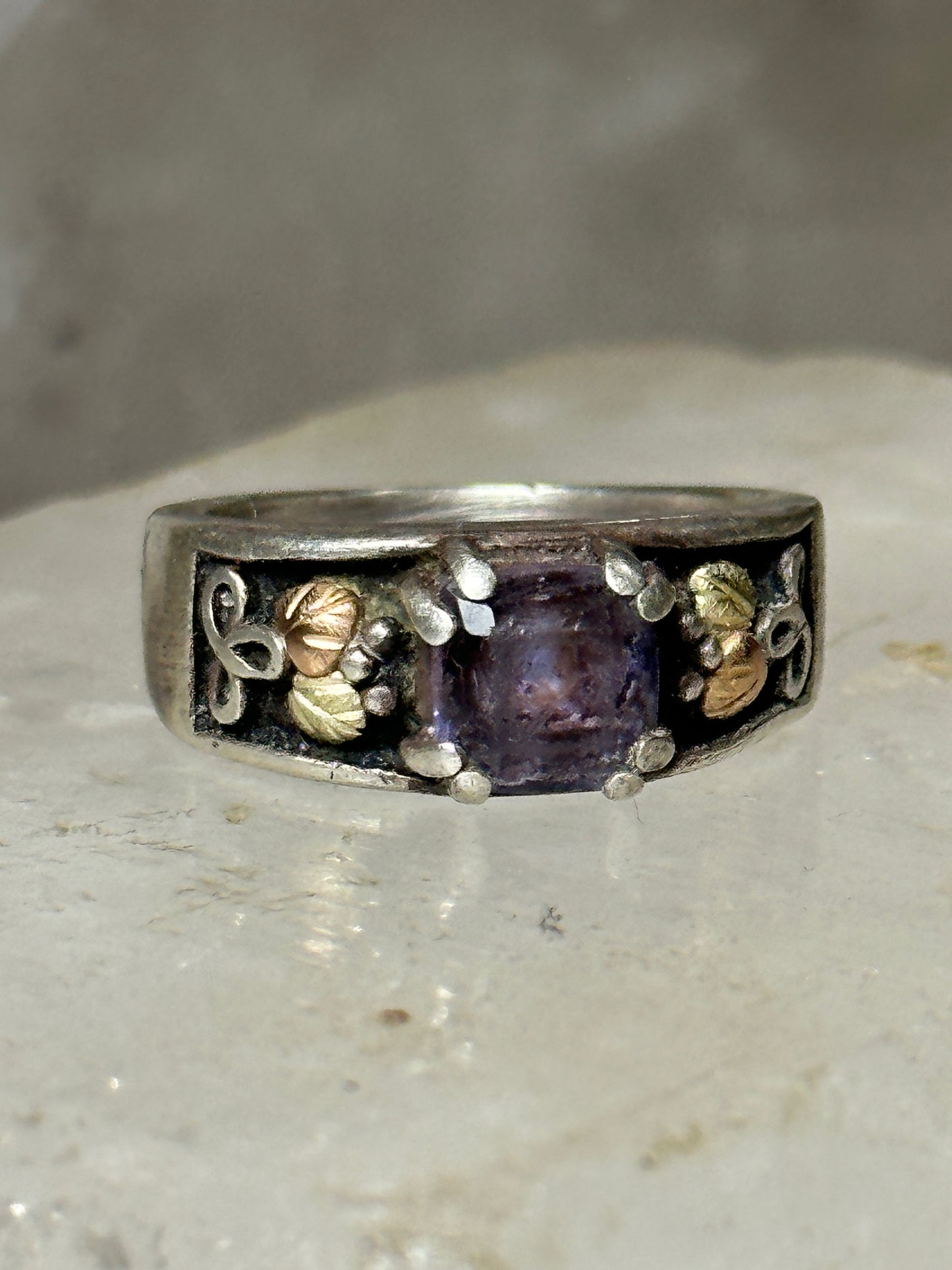 Black Hills Gold ring purple band leaves floral size 7.50 sterling silver women men