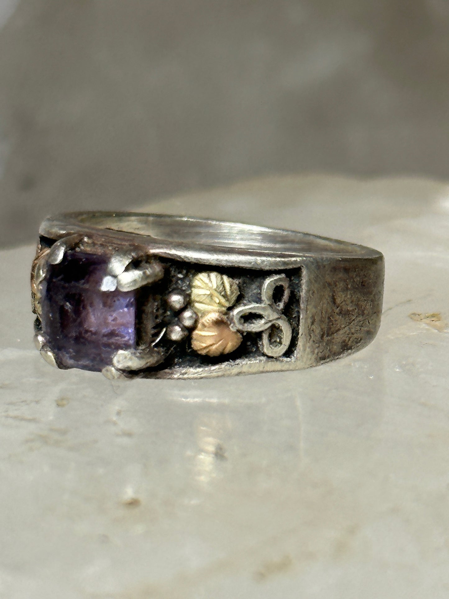 Black Hills Gold ring amethyst band leaves floral size 7.50 sterling silver women men