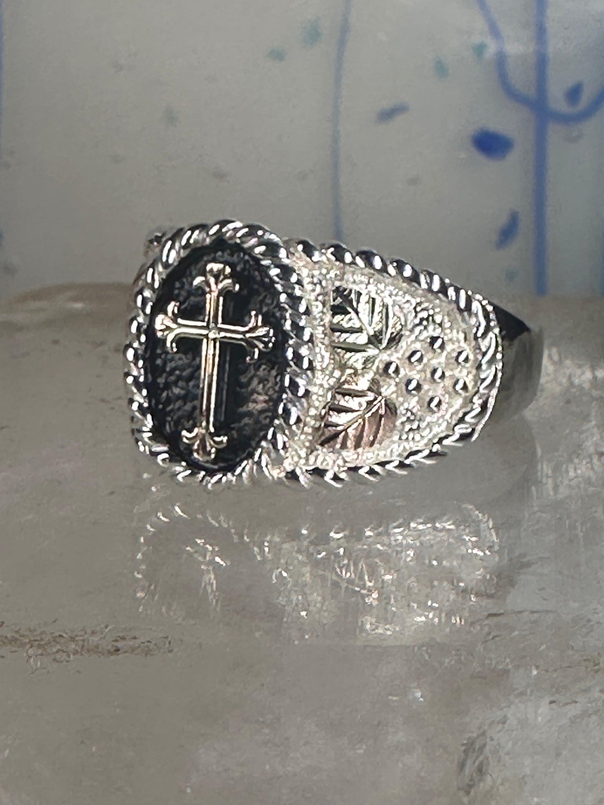 Black Hills Gold ring Cross band Religious Christian size 10.5 sterling silver women men