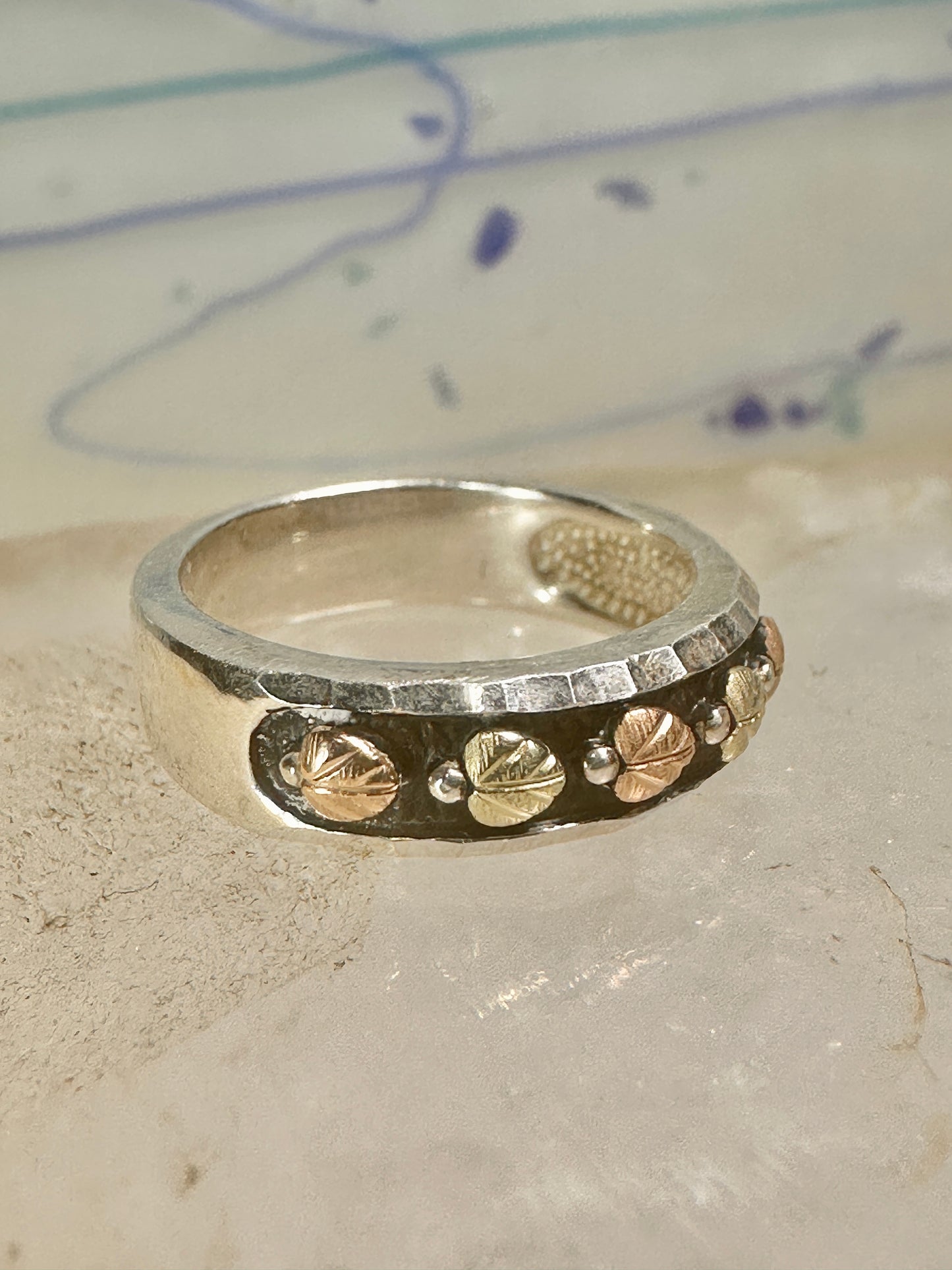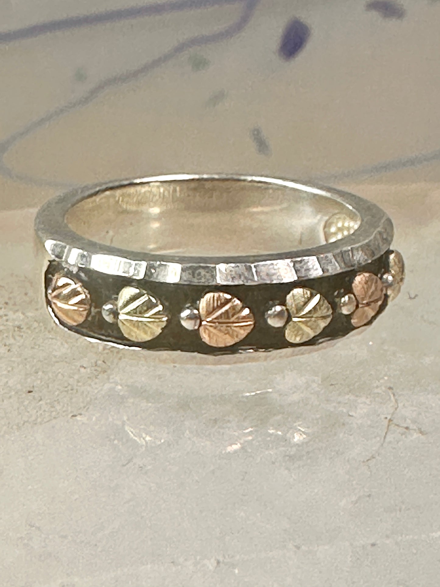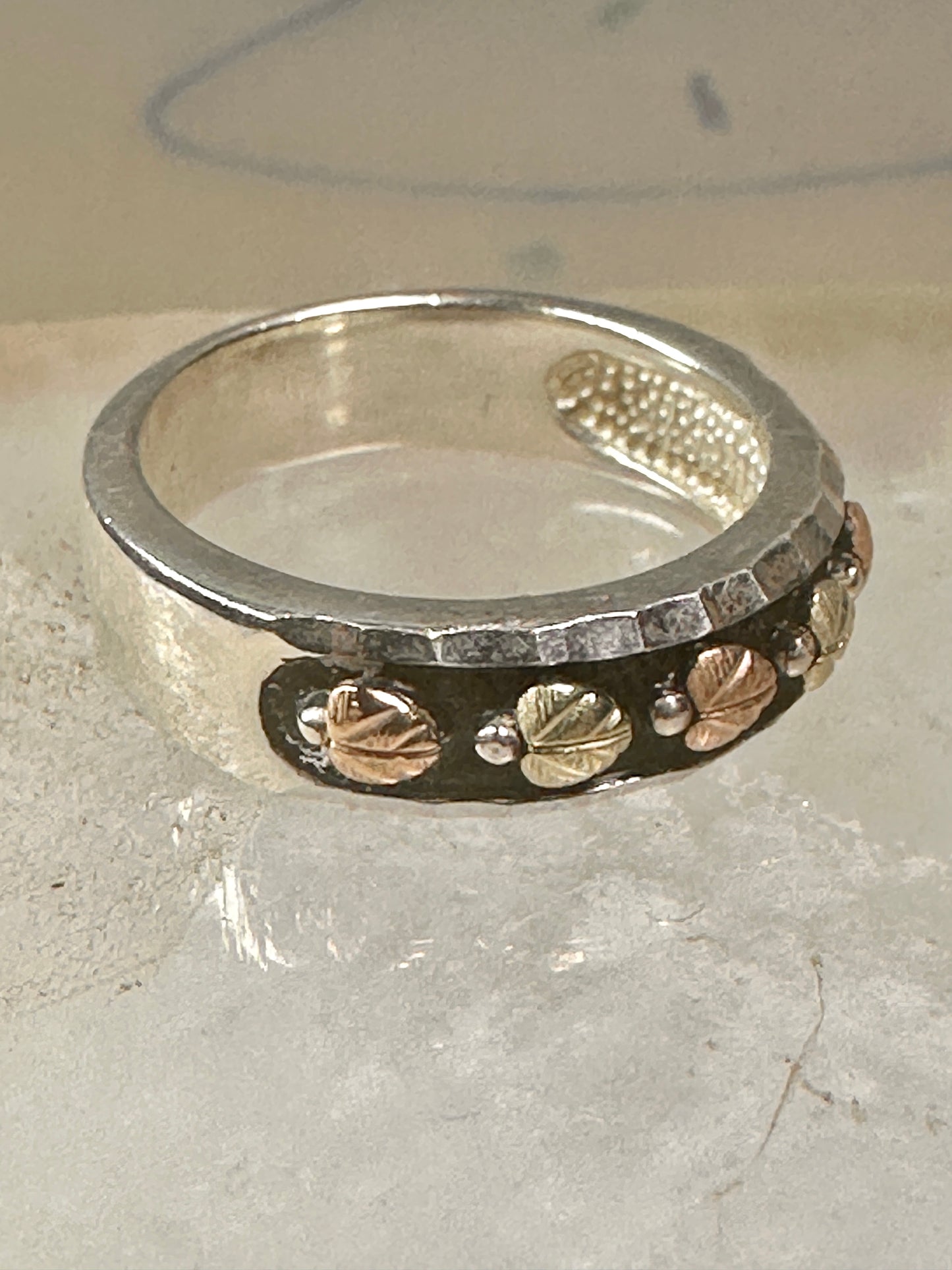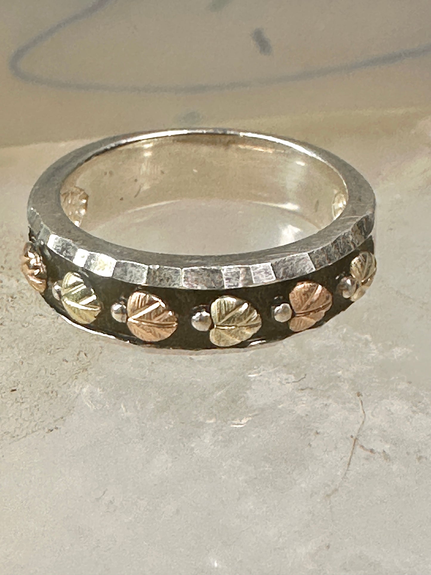 Black Hills Gold ring floral wedding band leaves size 5.75 sterling silver women