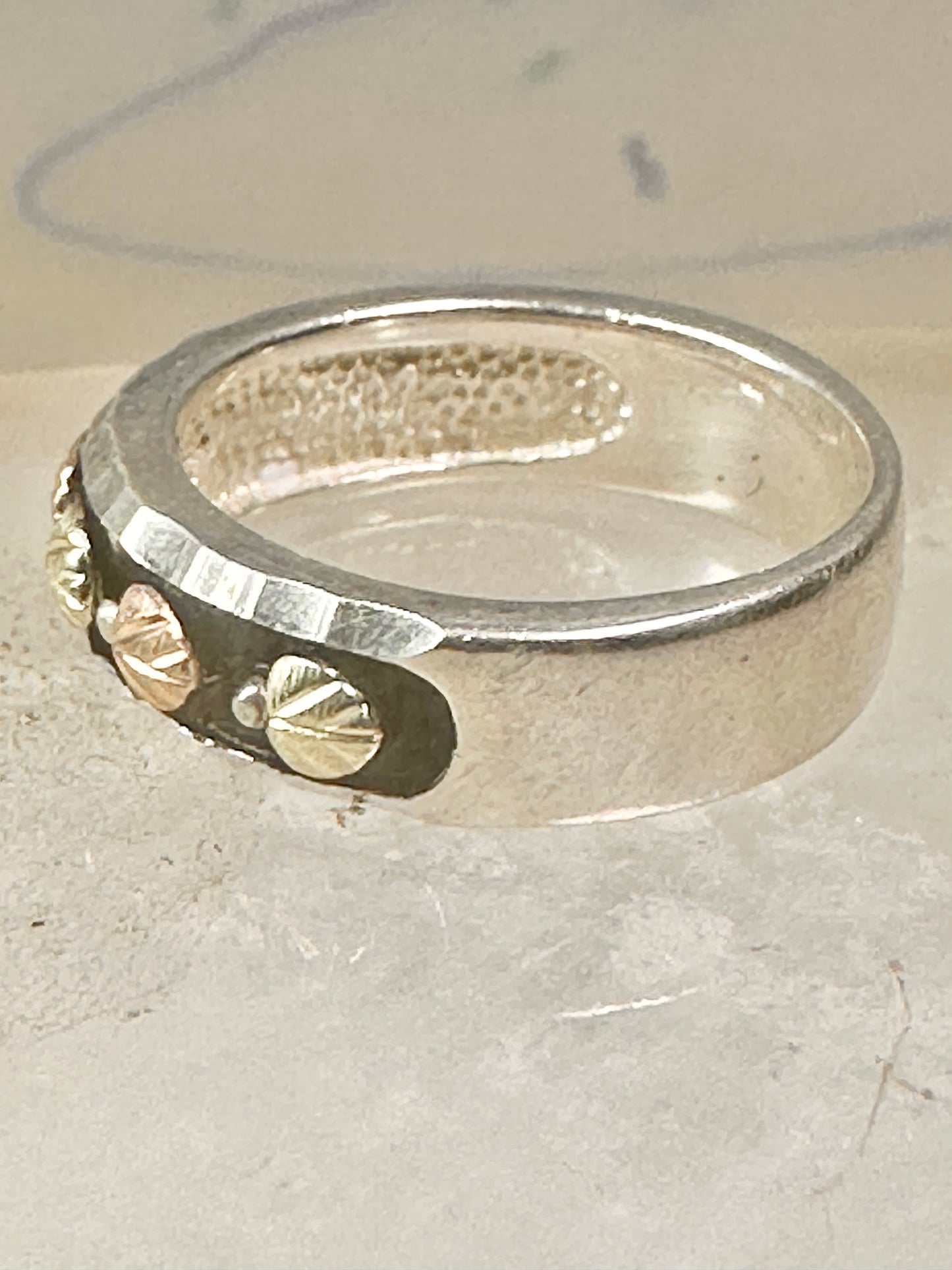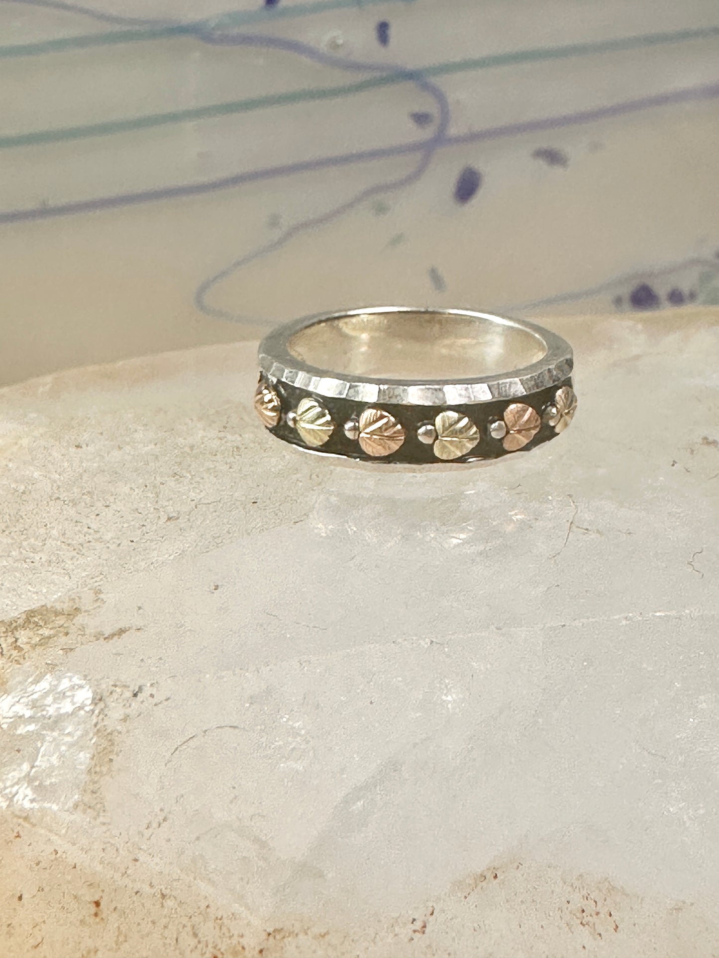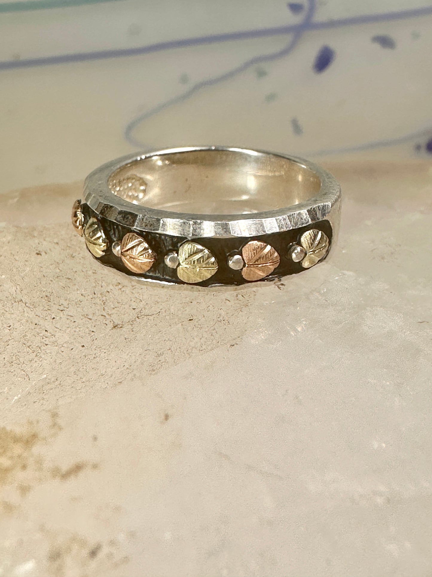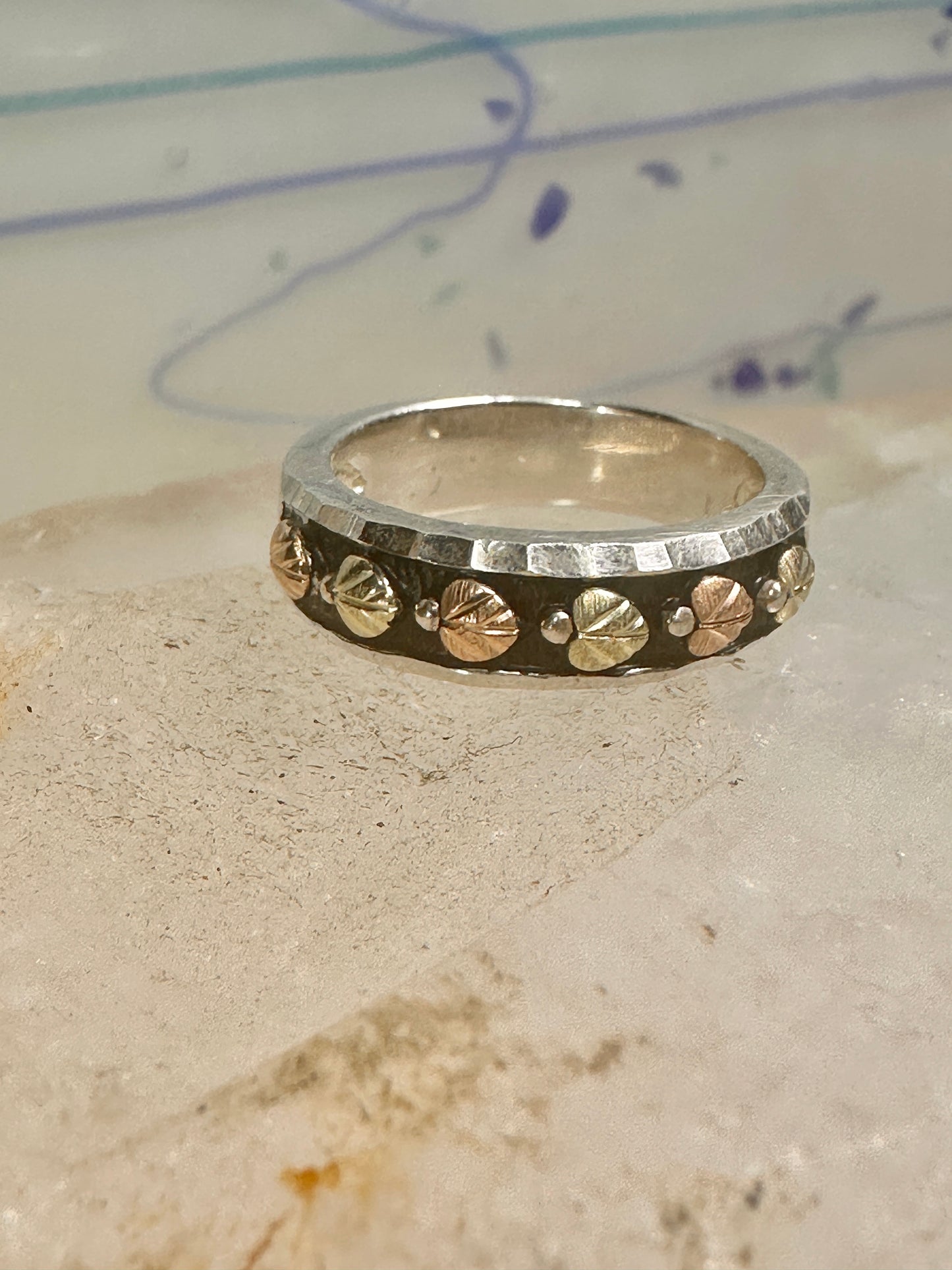 Black Hills Gold ring floral wedding band leaves size 5.75 sterling silver women