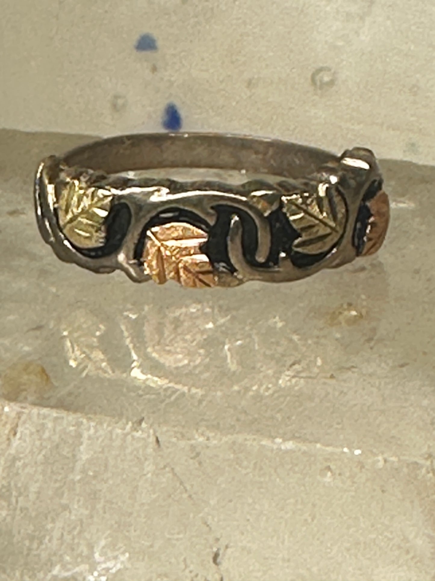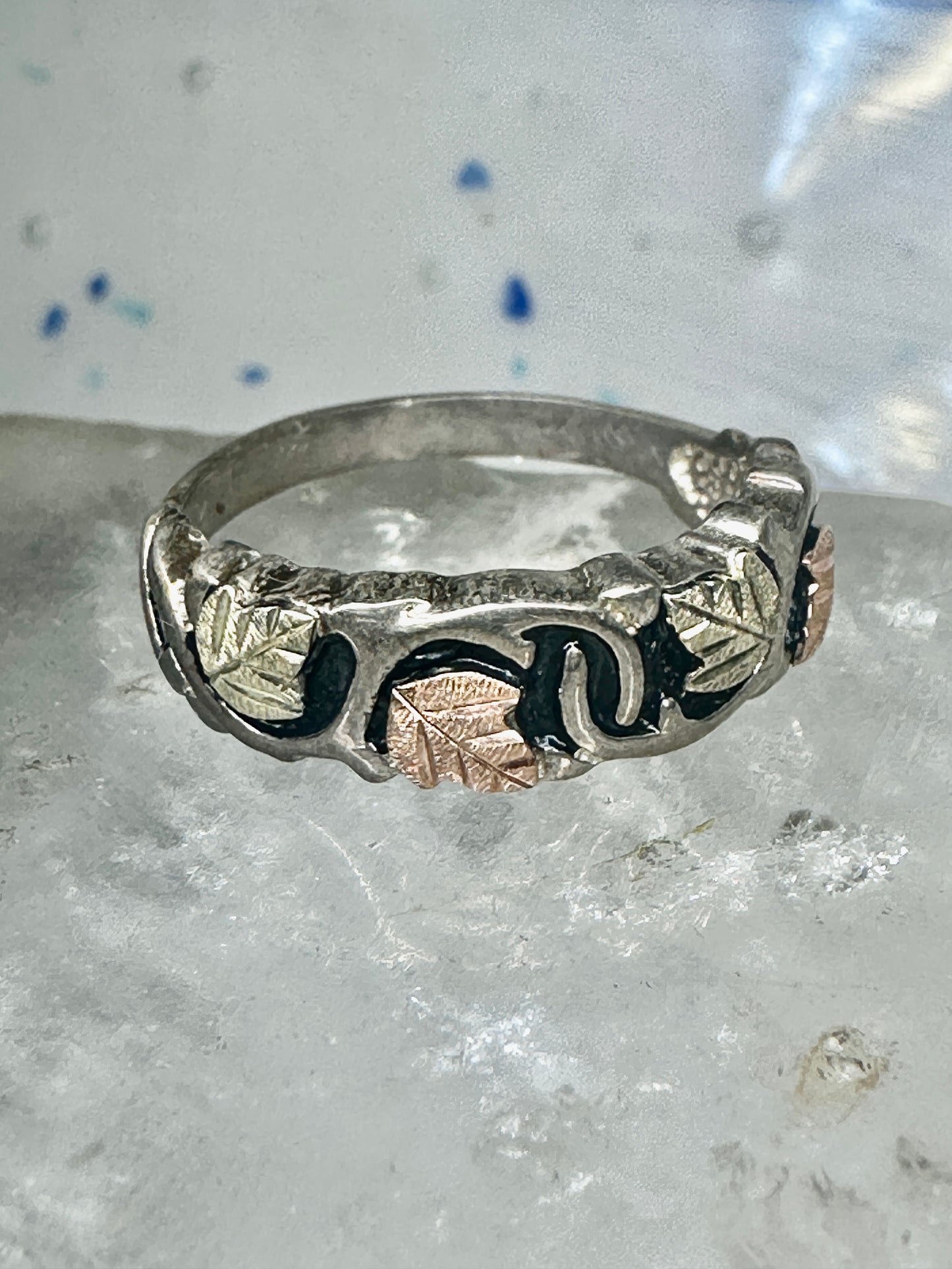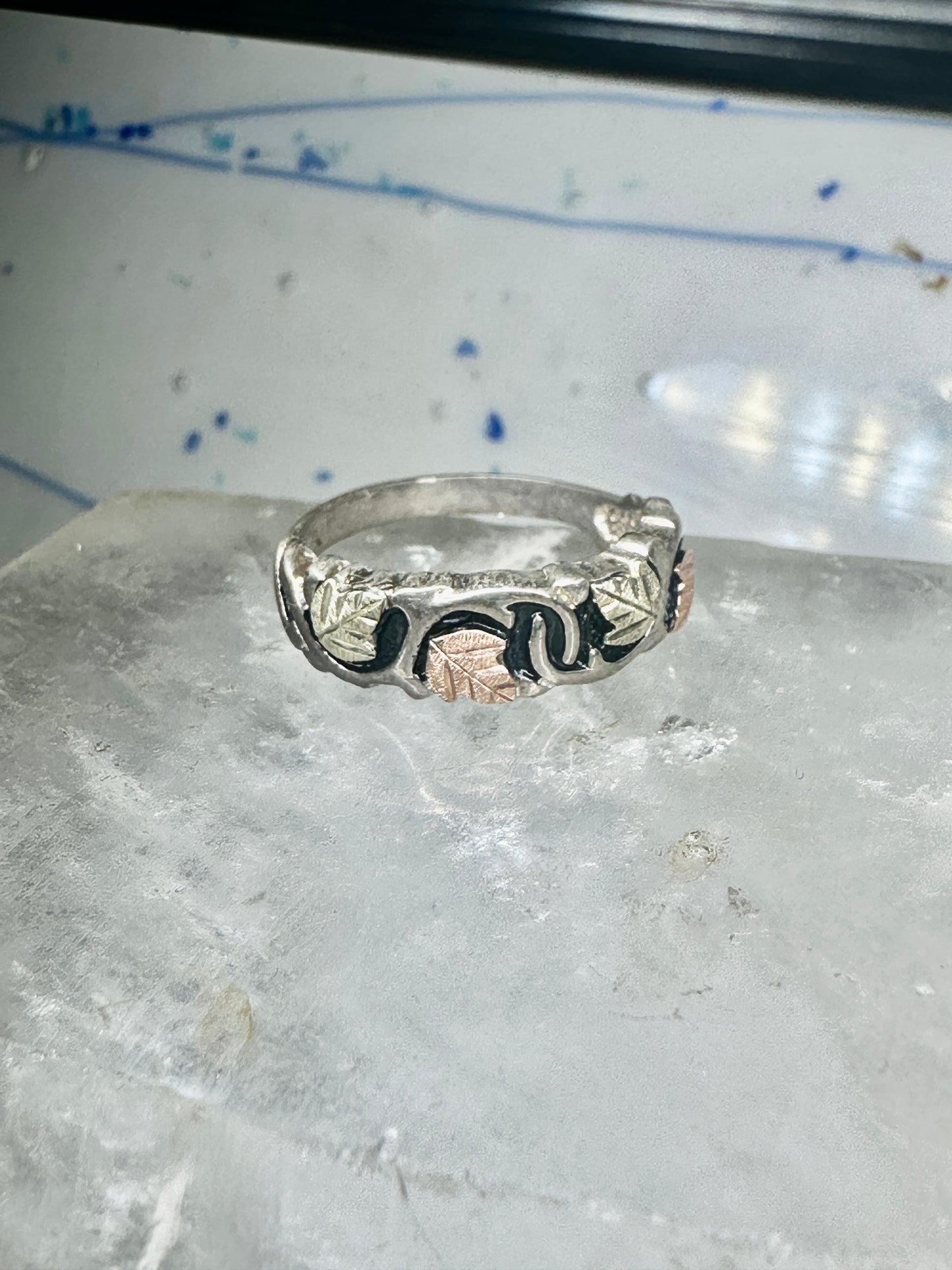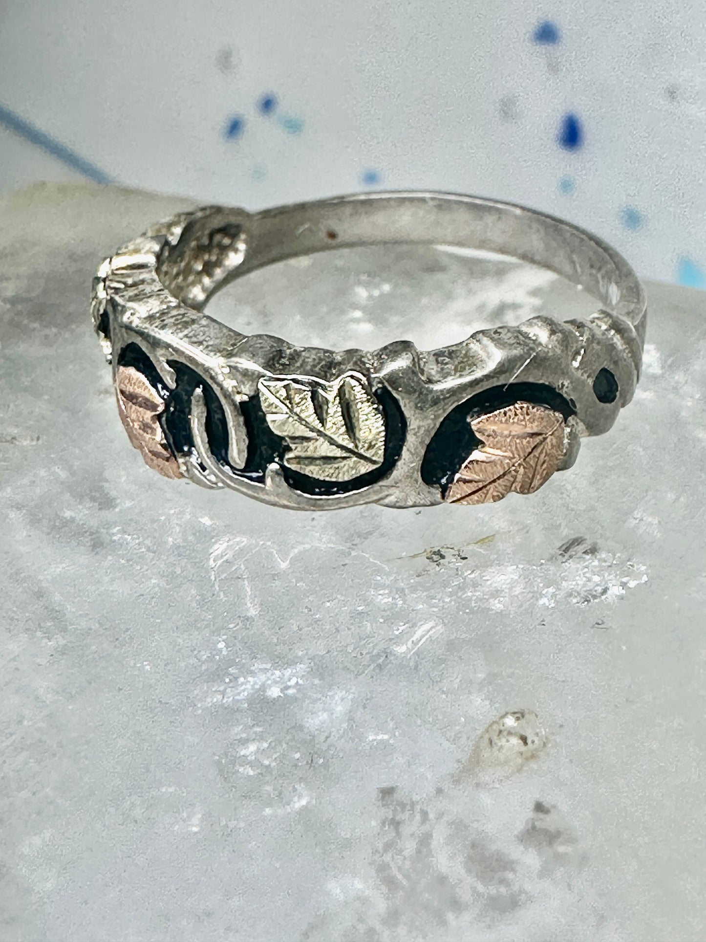 Black Hills Gold ring Leaves Wedding band size 9.75 sterling silver women men