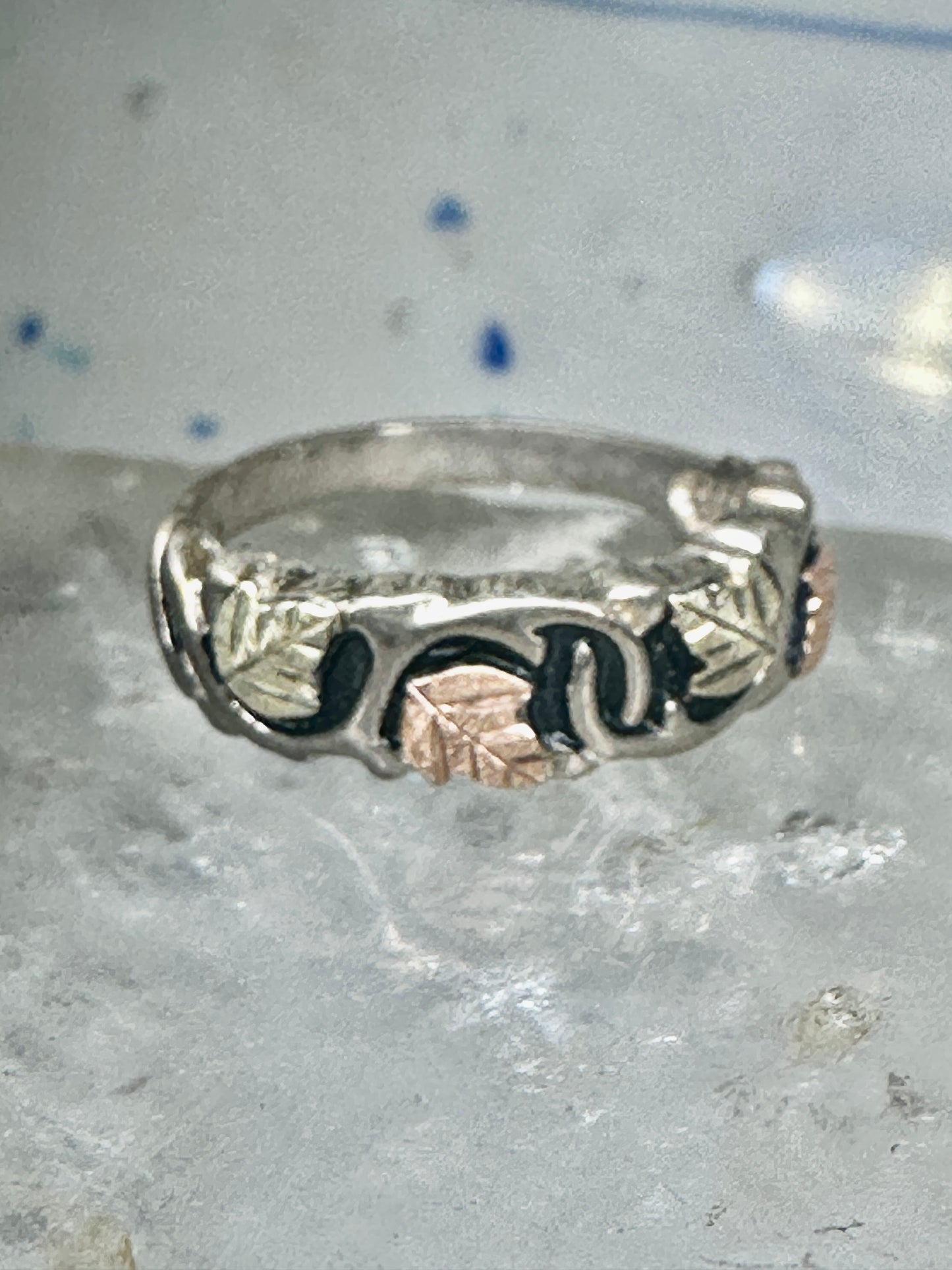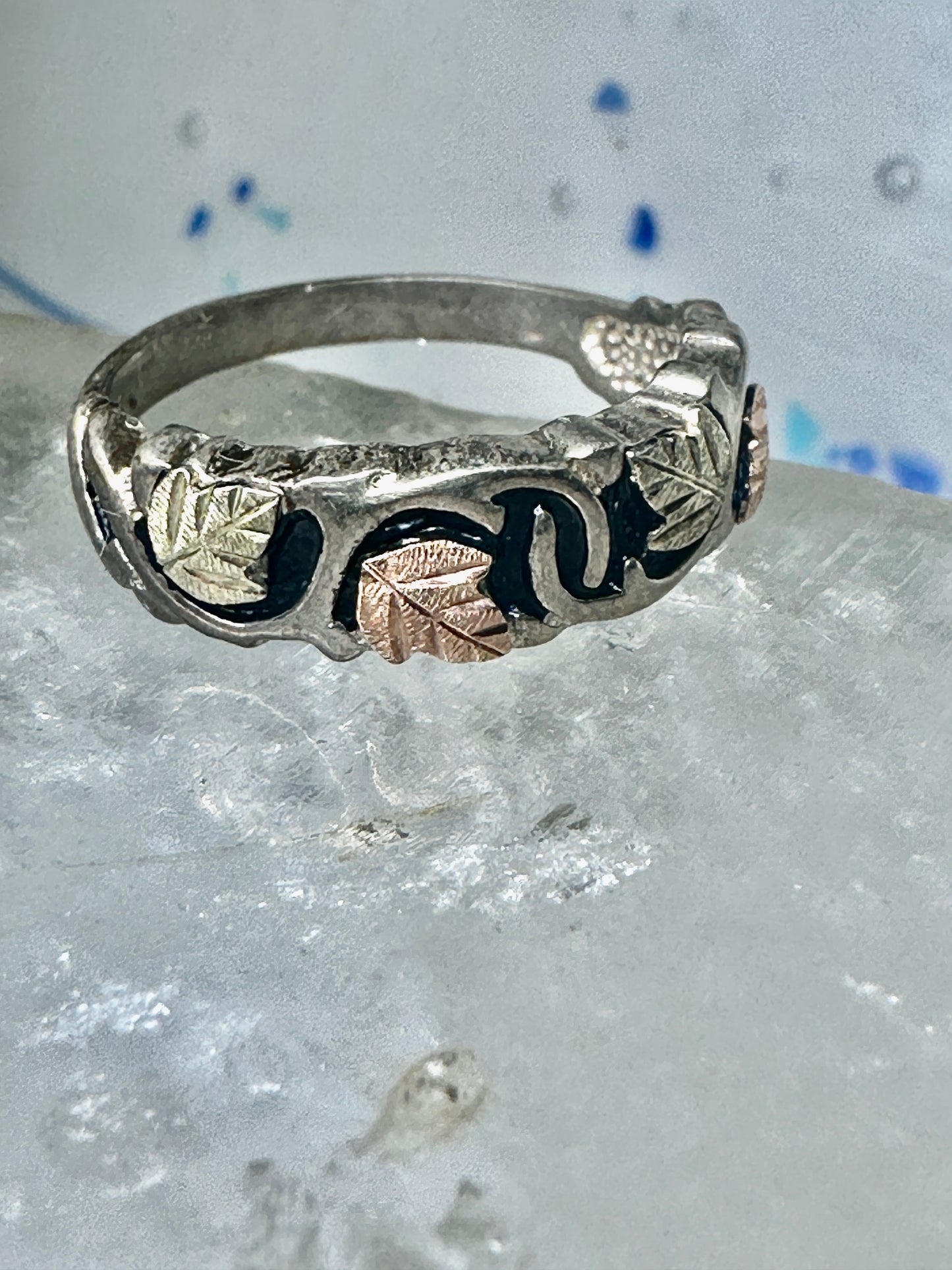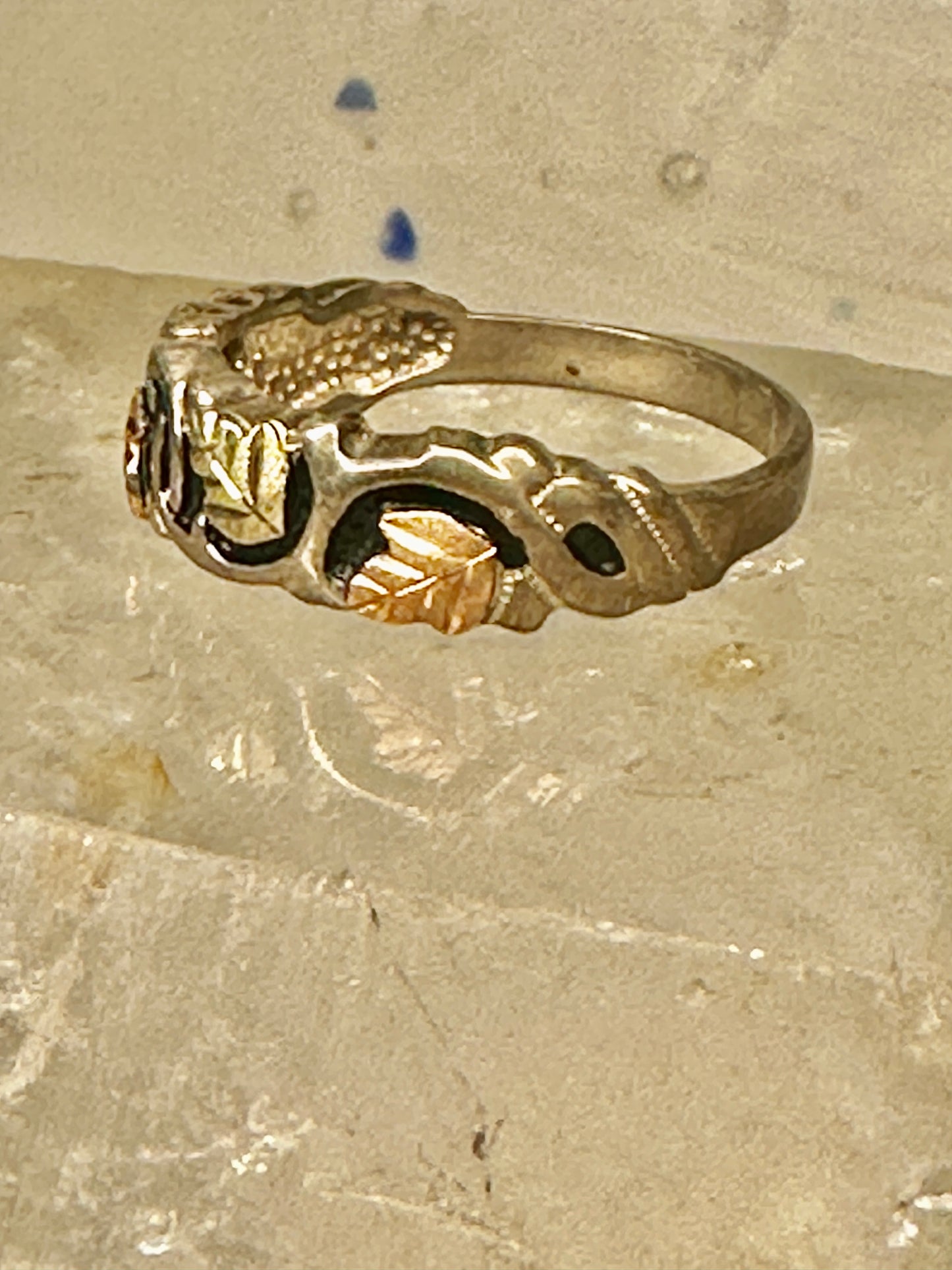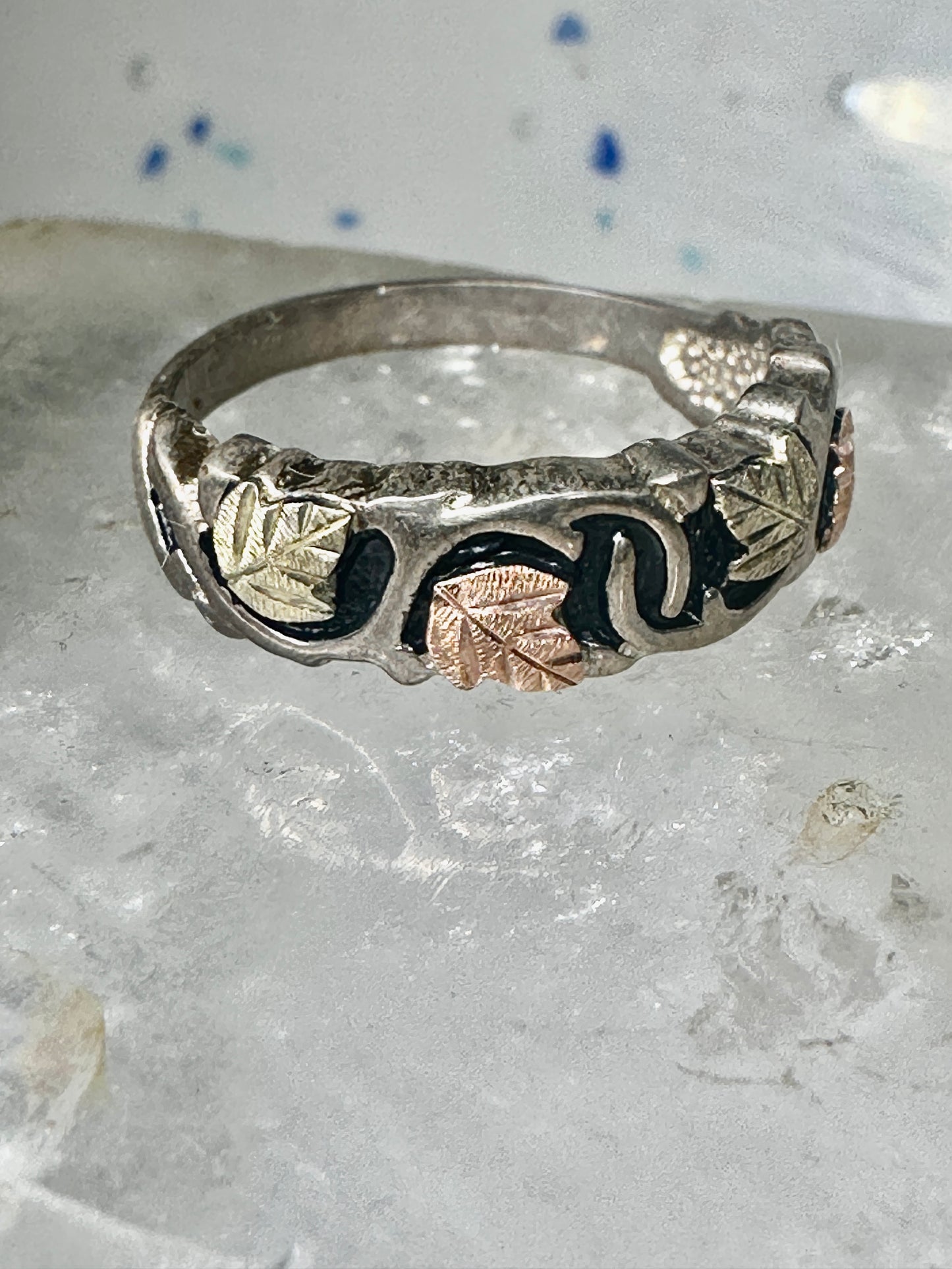 Black Hills Gold ring Leaves Wedding band size 9.75 sterling silver women men