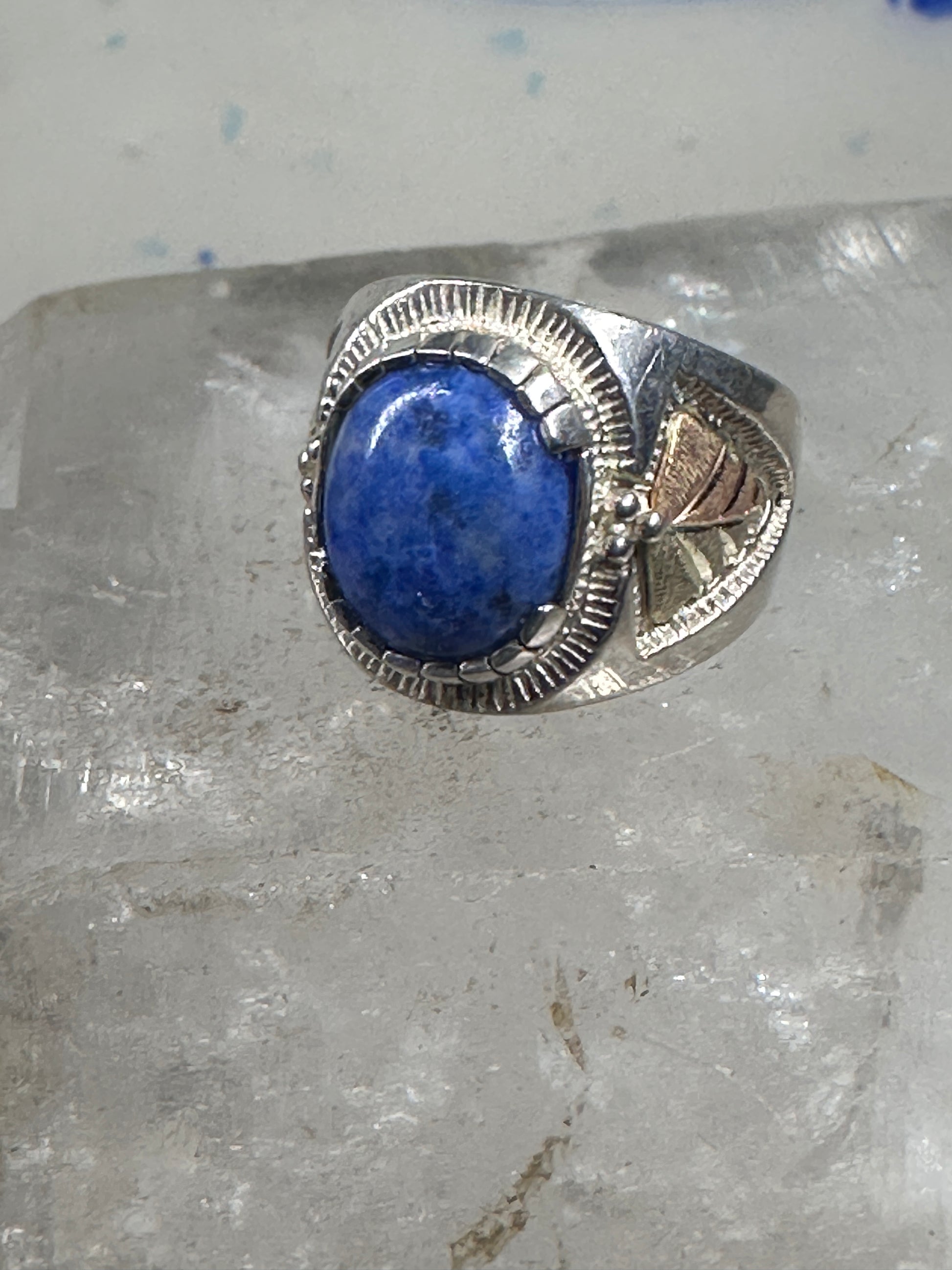 Black Hills Gold ring leaves blue lapis band size 6 sterling silver women men