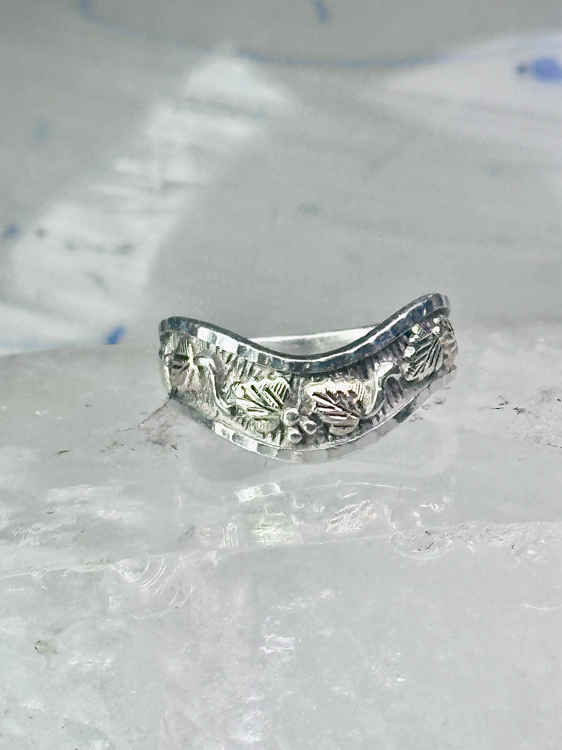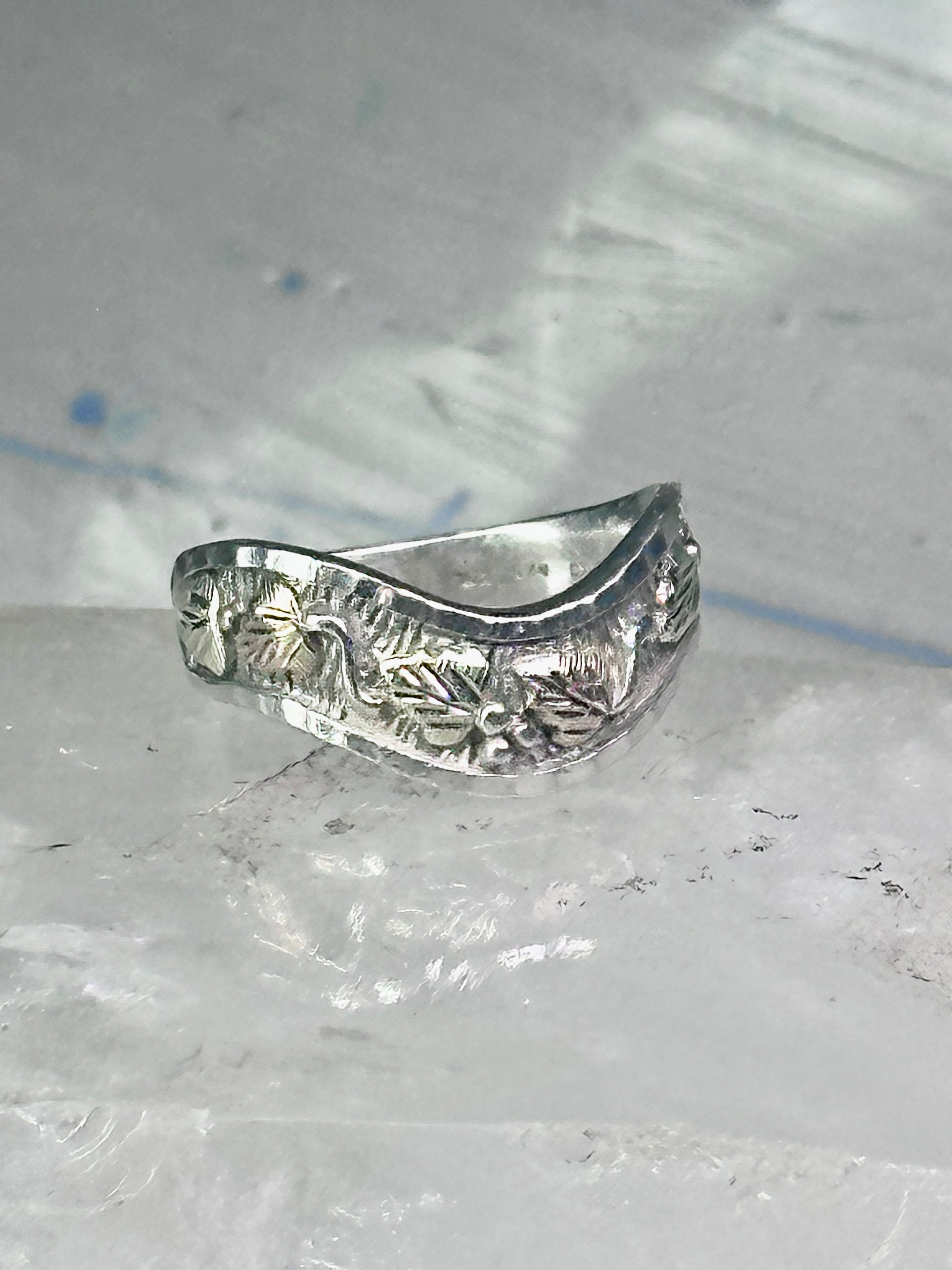 Black Hills Gold Ring leaves wavy band size 8 sterling silver women men