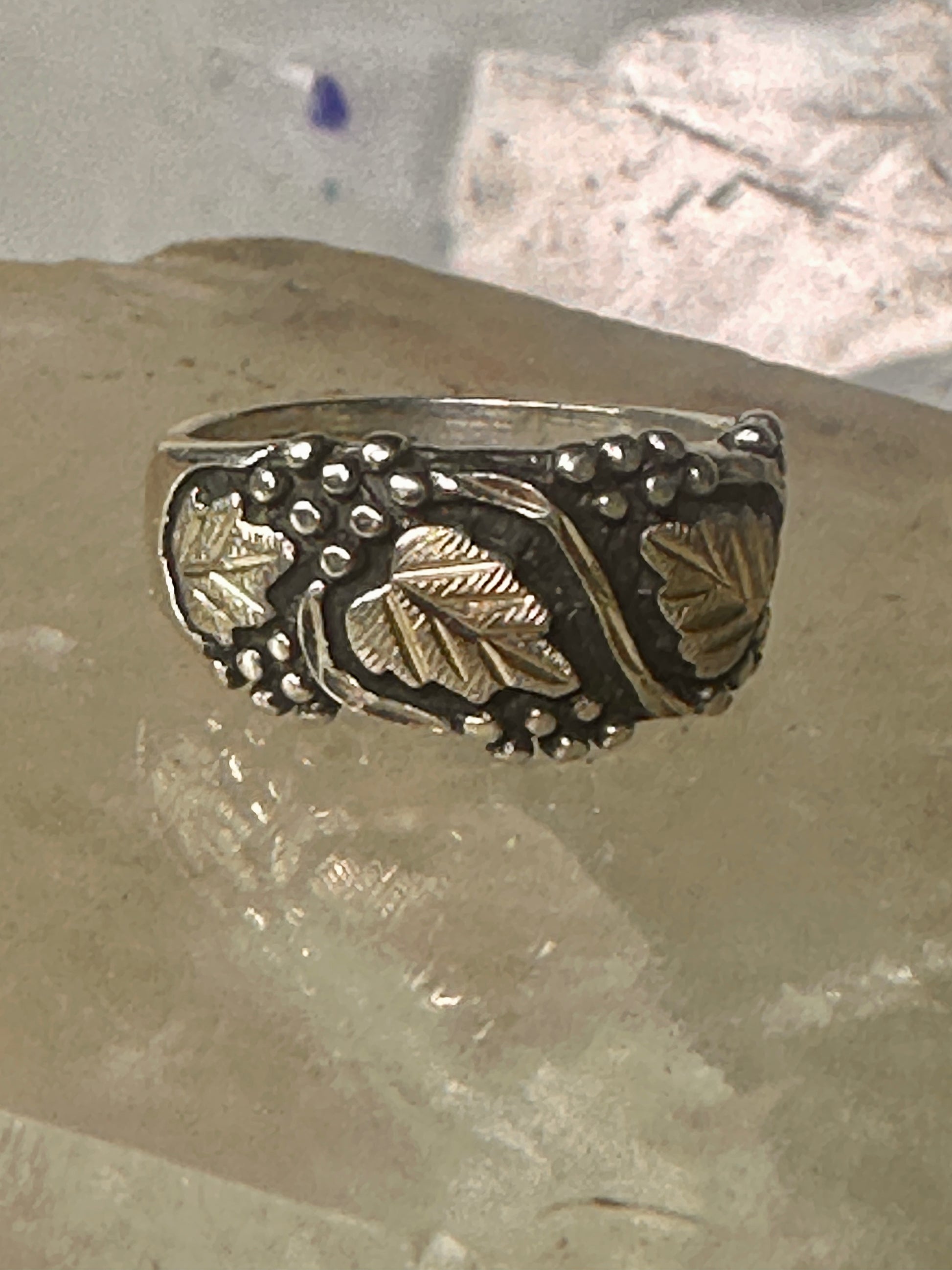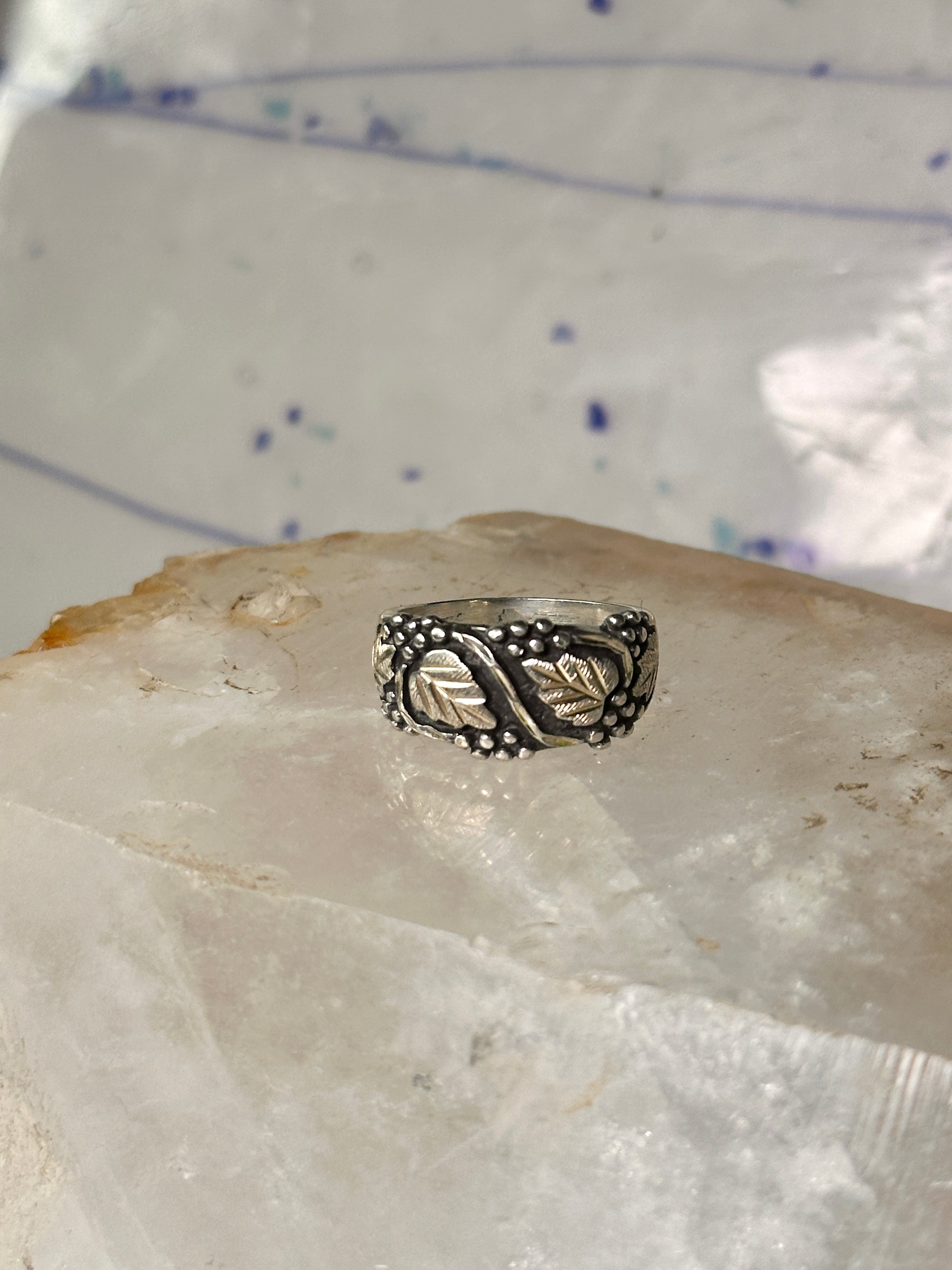 Black Hills Gold ring leaves wedding band size 5 sterling silver women
