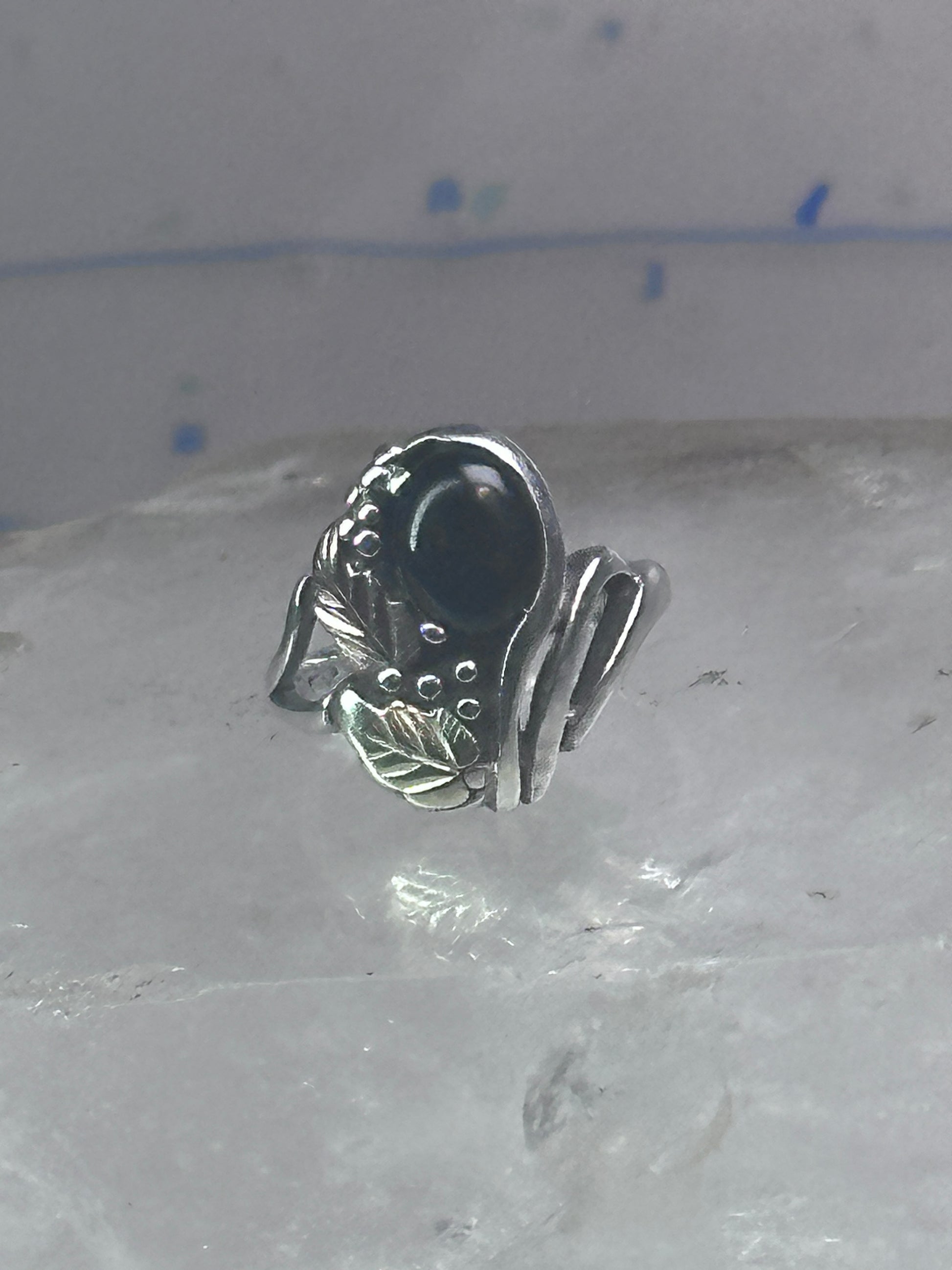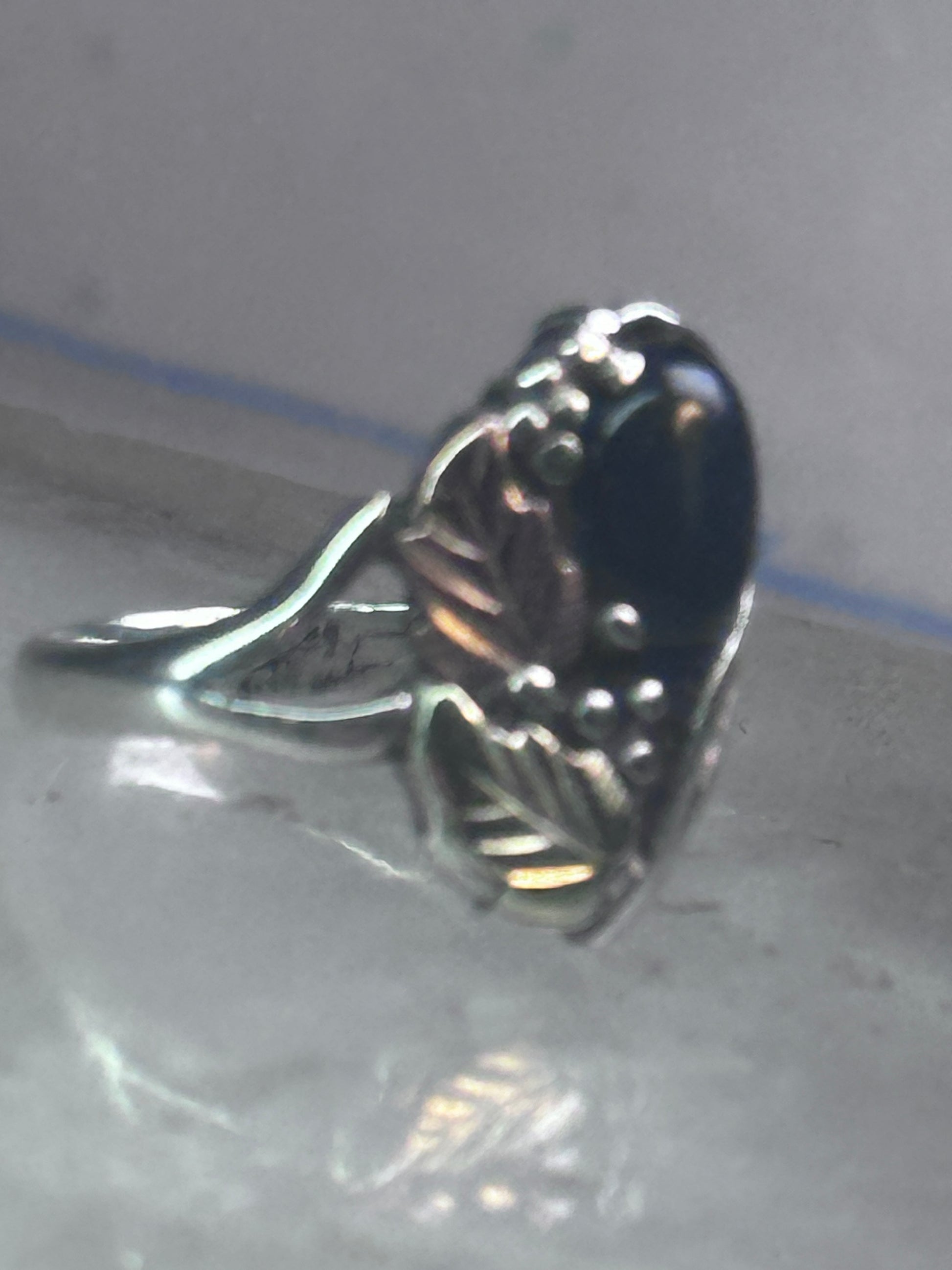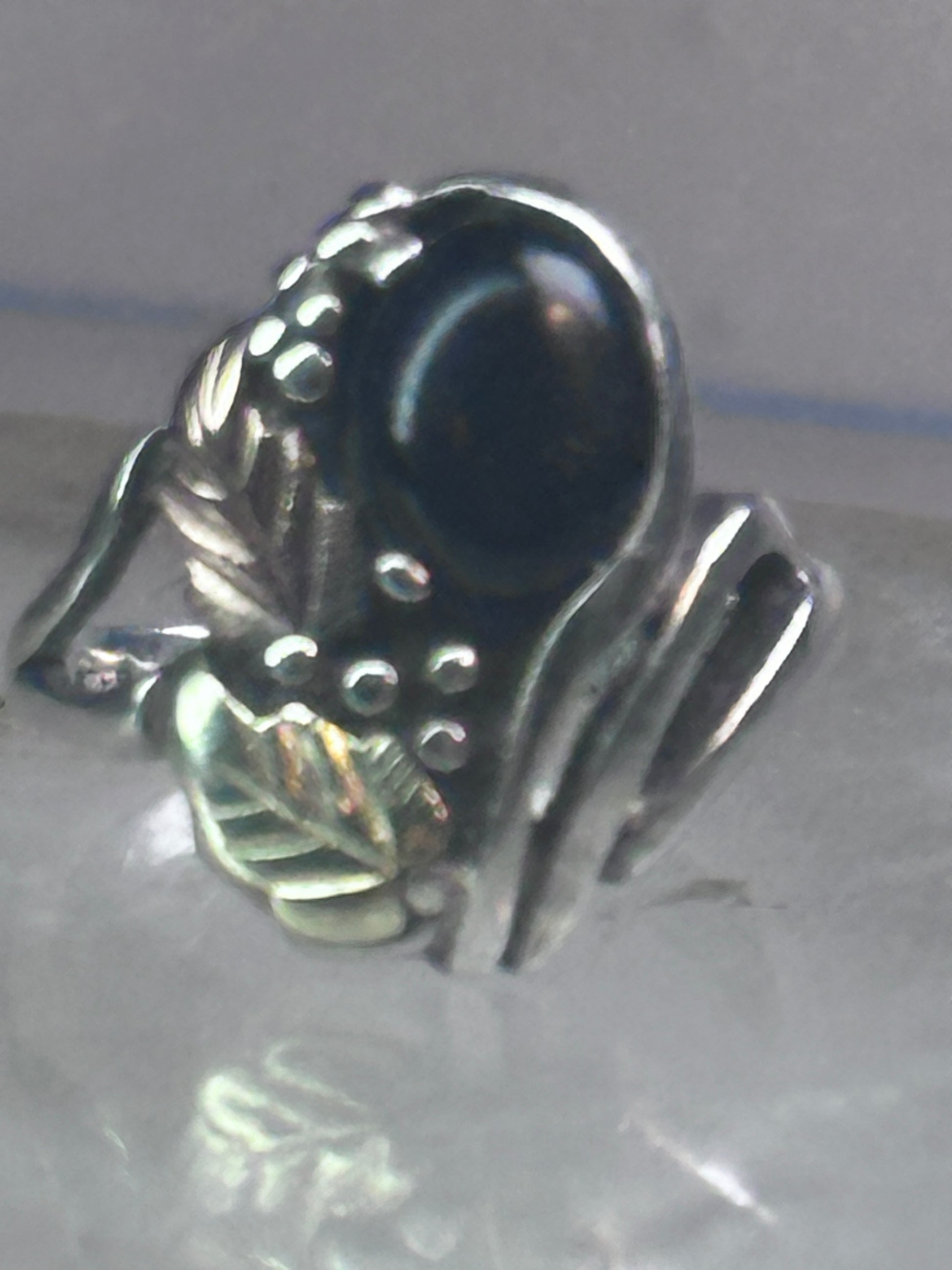 Black Hills Gold ring onyx band leaves size 3 sterling silver women