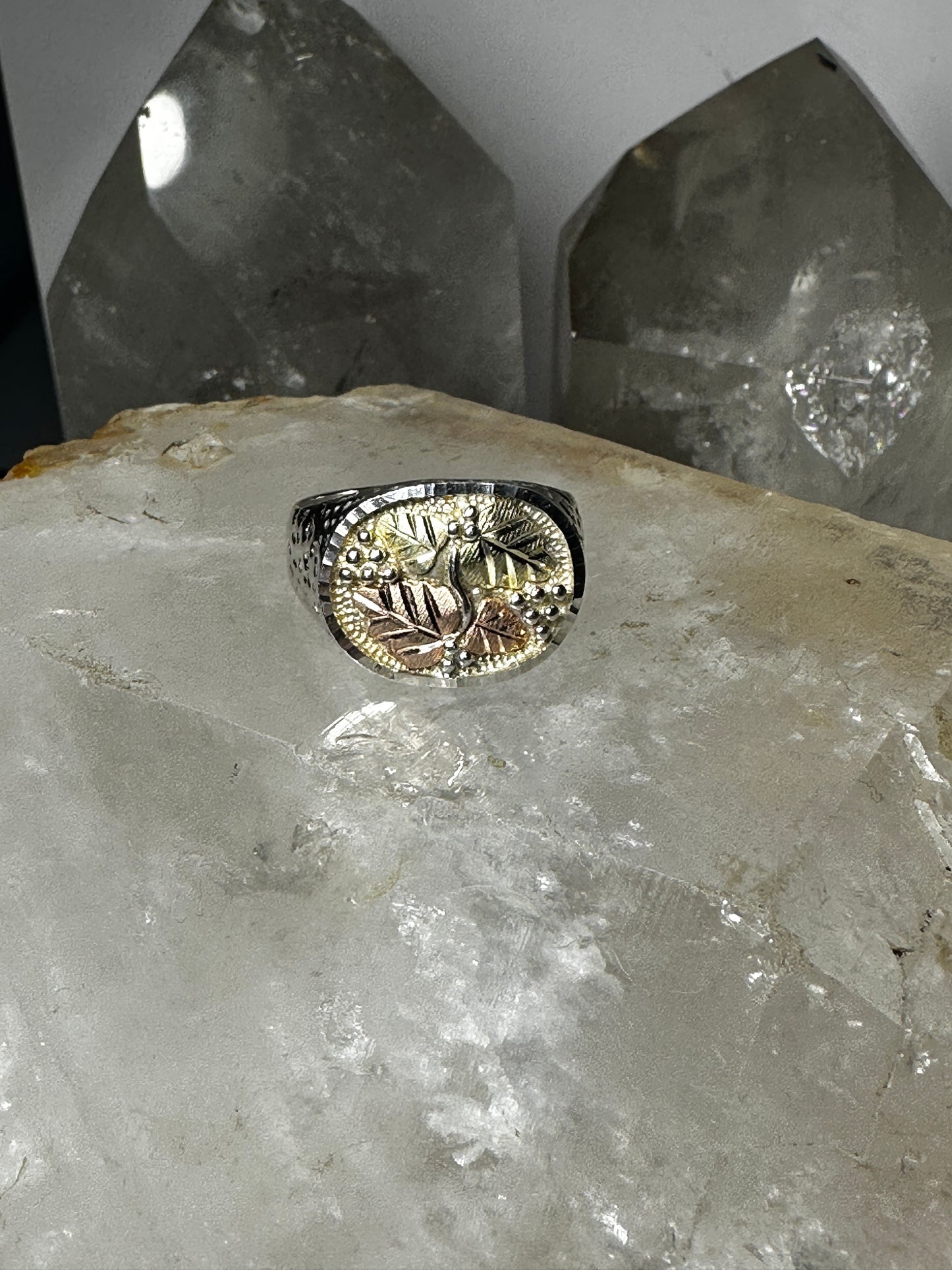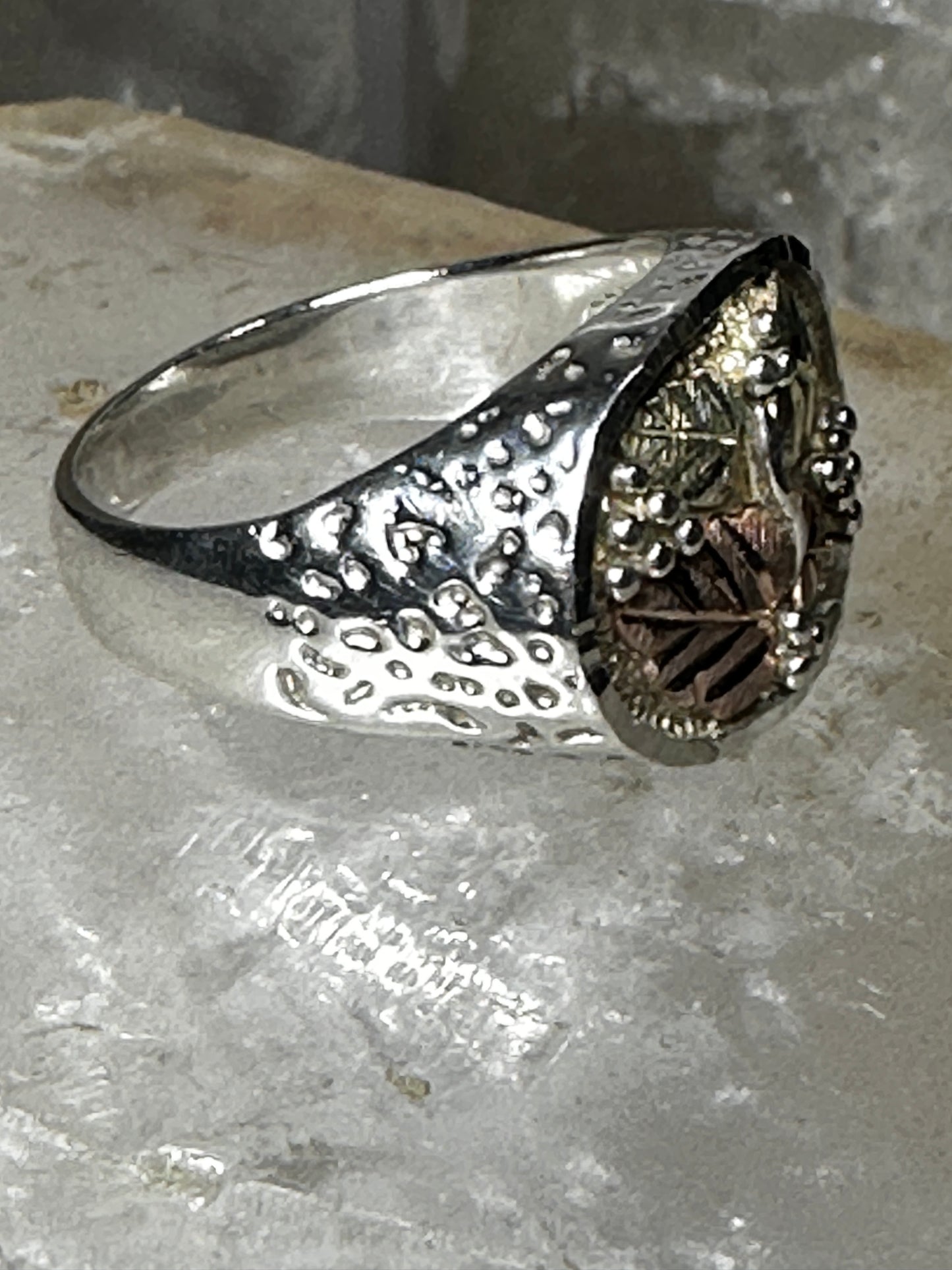 Black Hills Gold ring Leaf band size 10 sterling silver women men