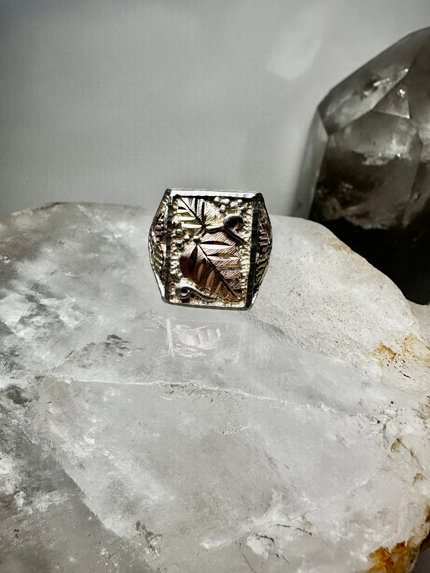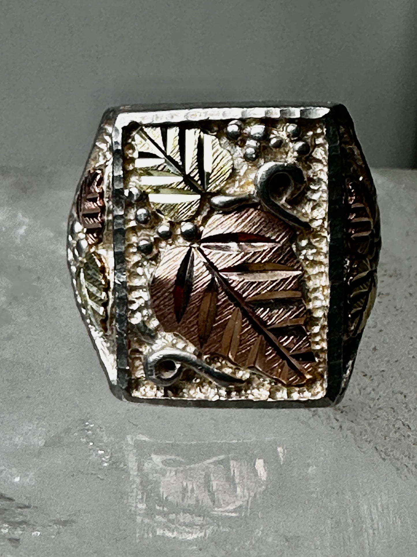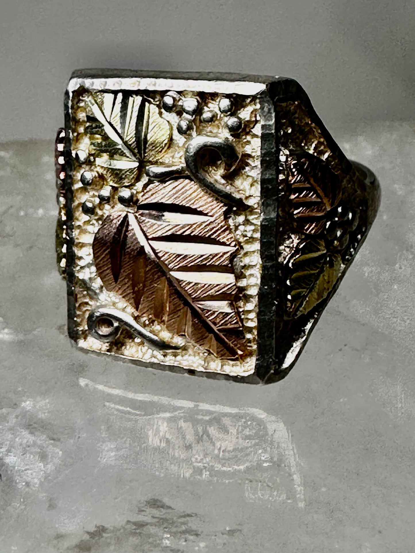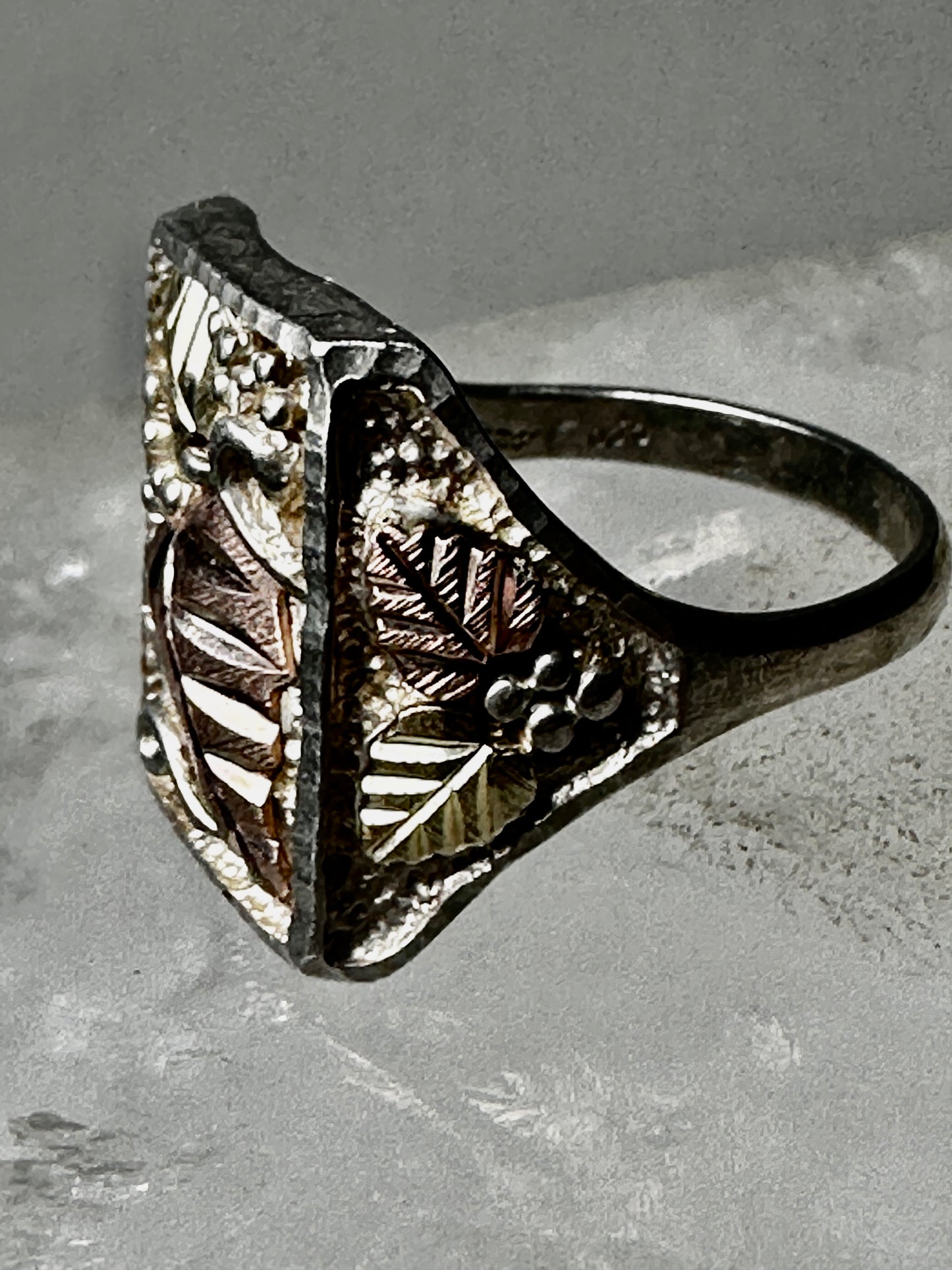 Black Hills Gold ring size 10 band leaves sterling silver women men