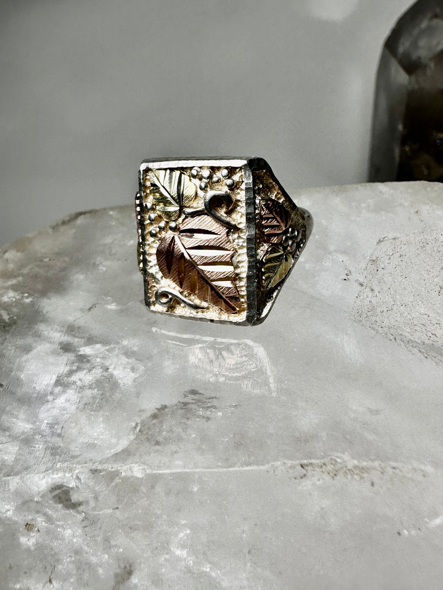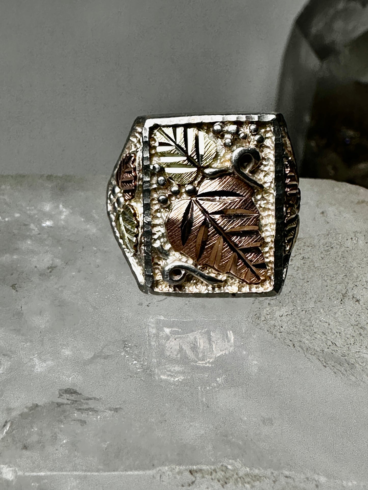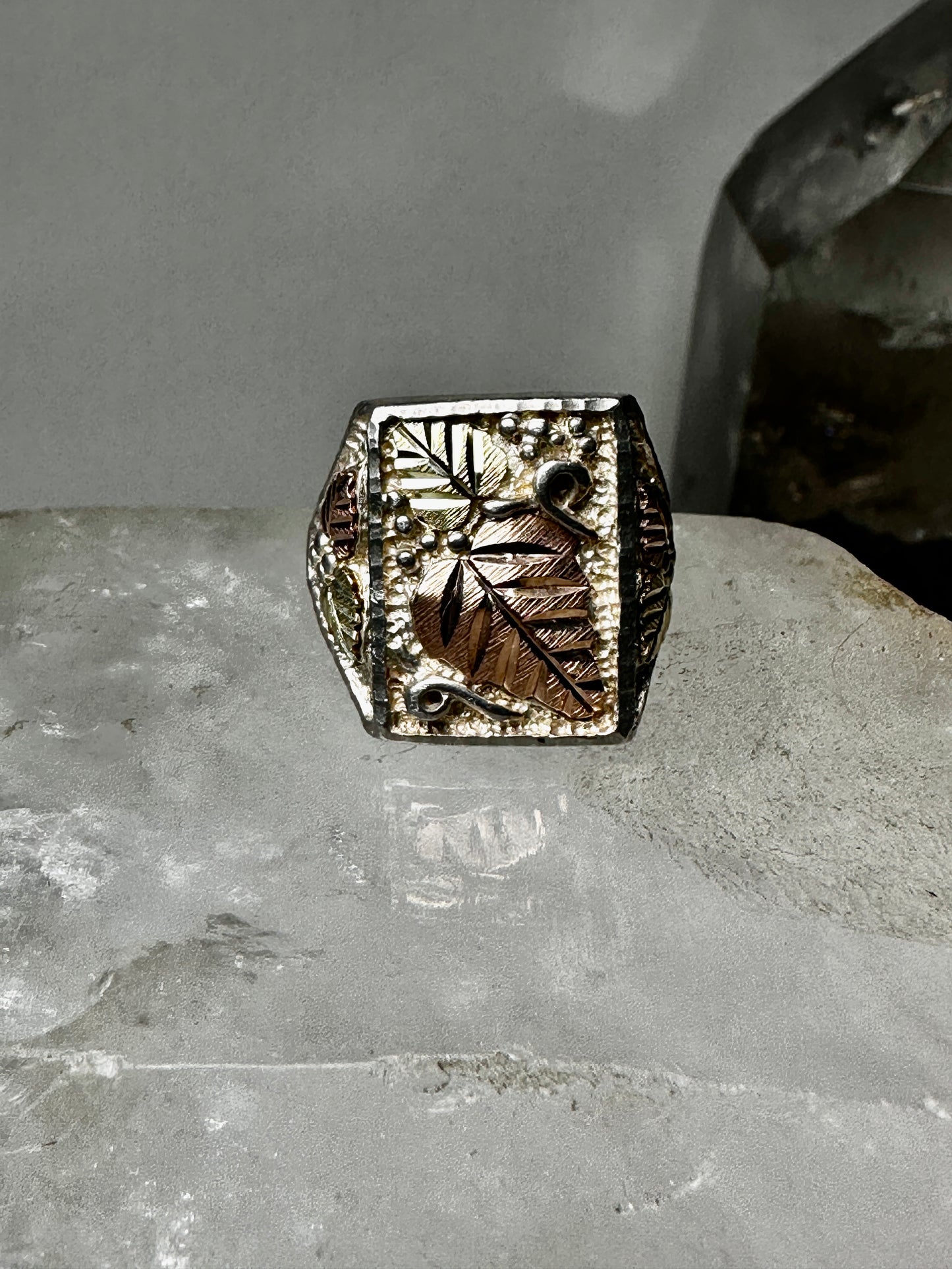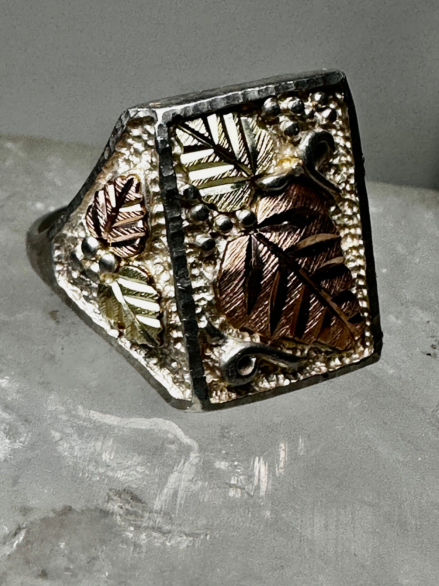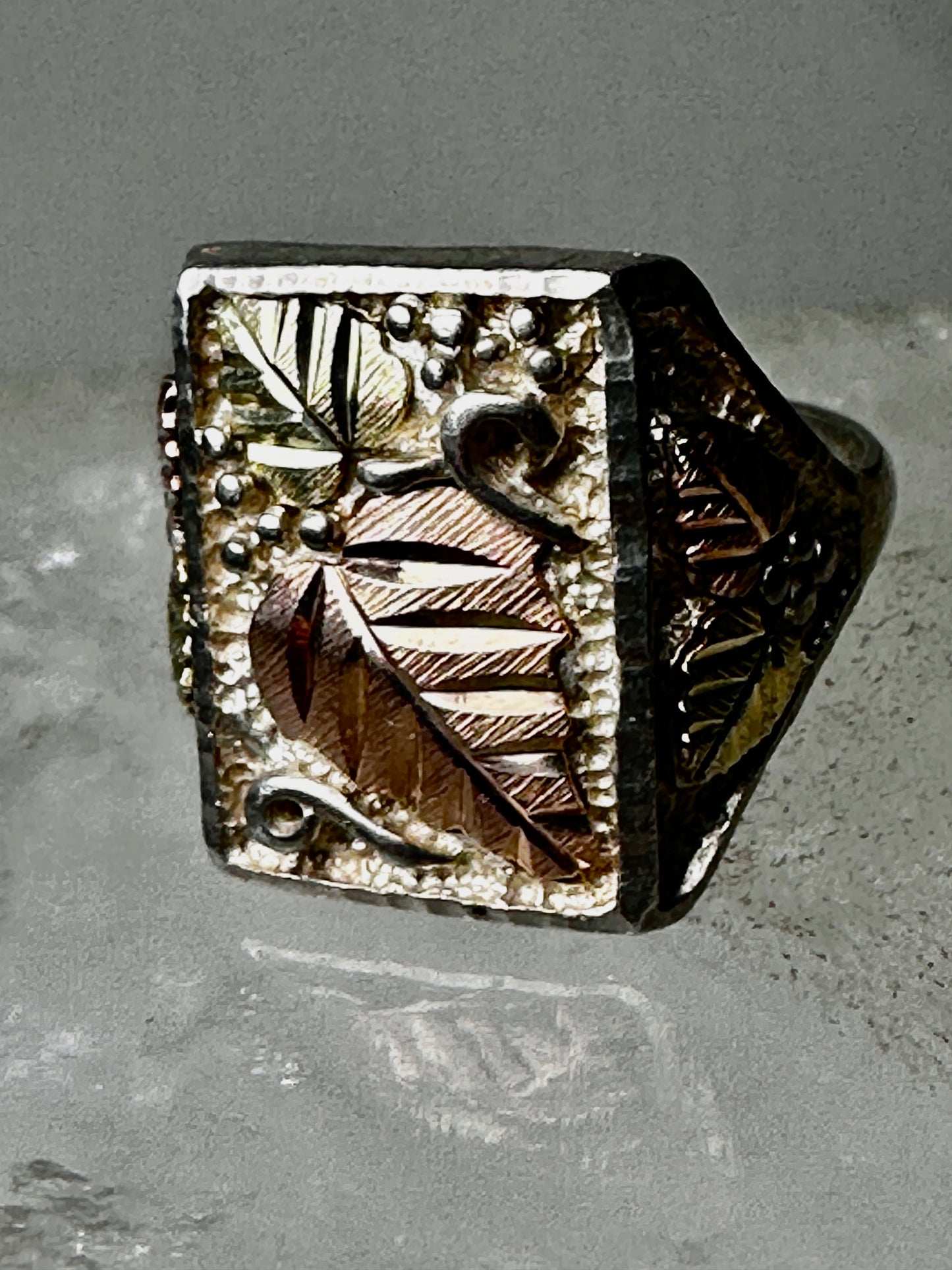 Black Hills Gold ring size 10 band leaves sterling silver women men