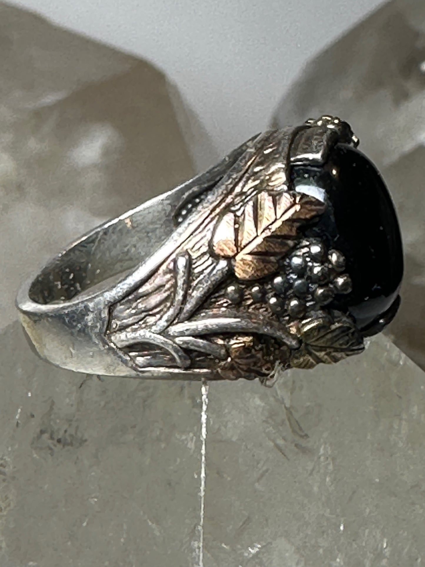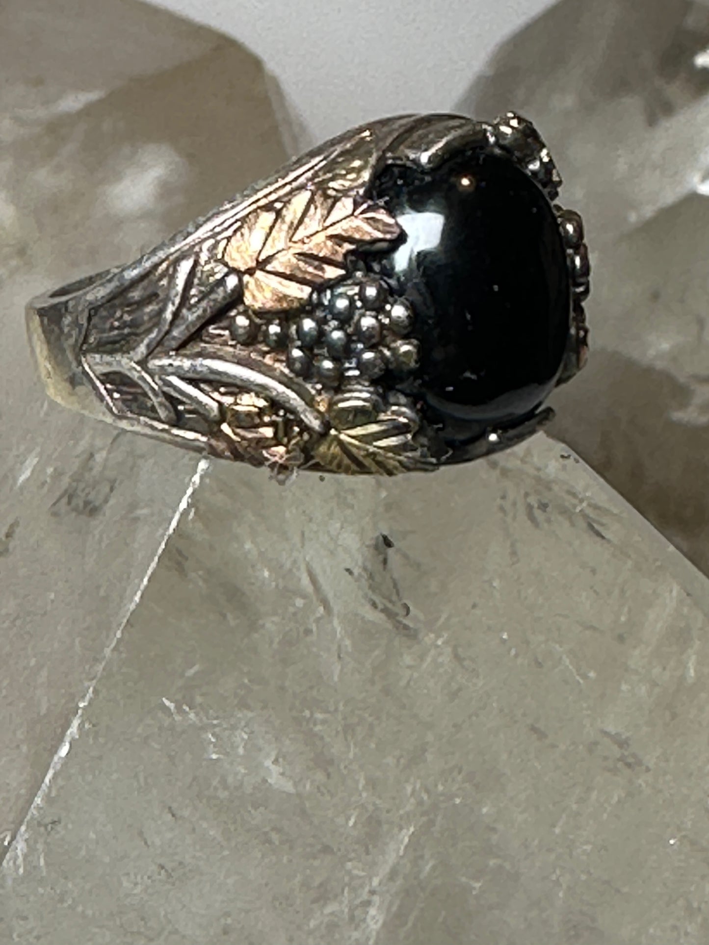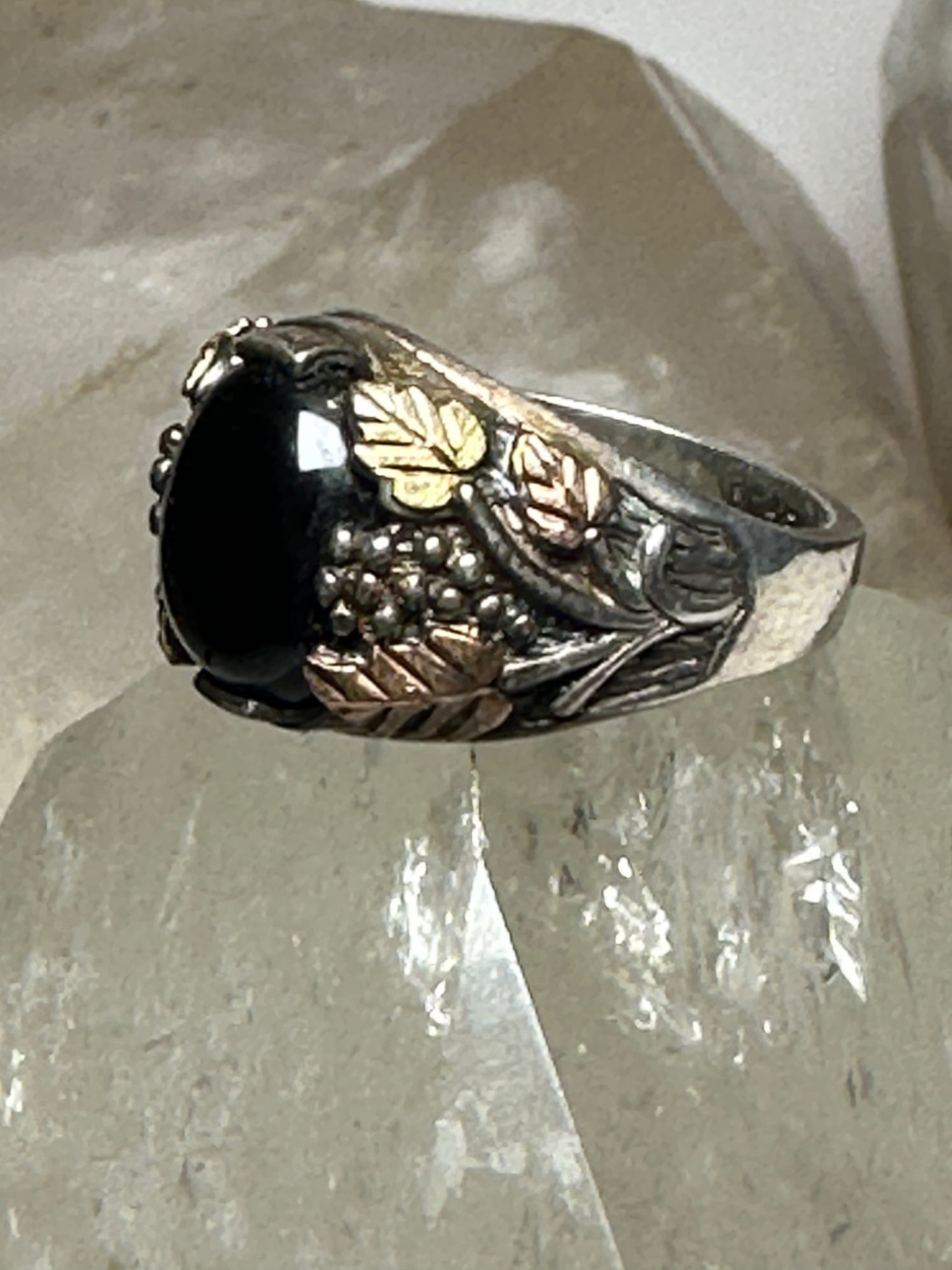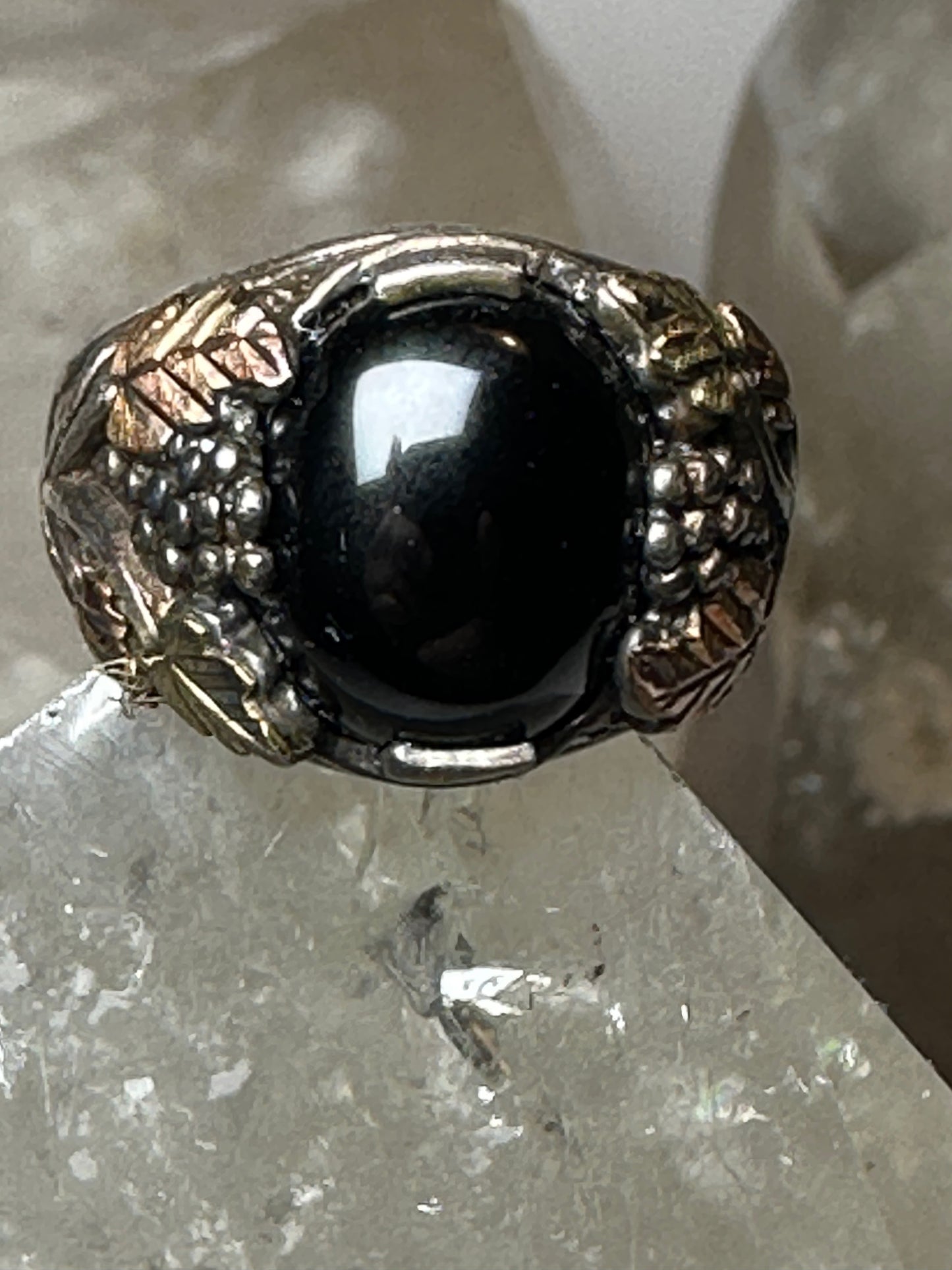 Black Hills Gold ring size 6.75 onyx band sterling silver women