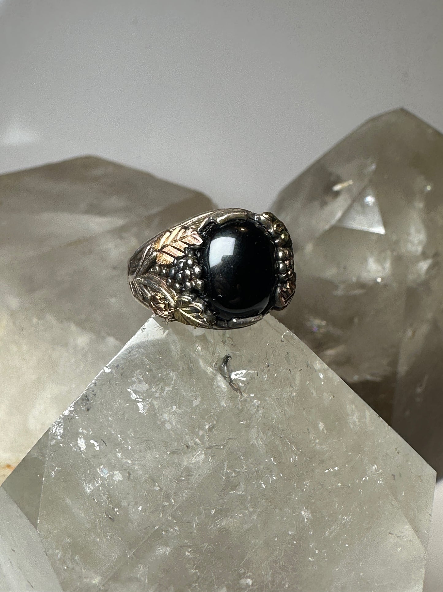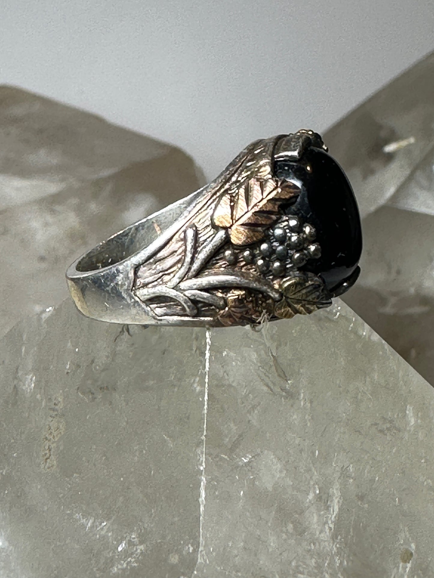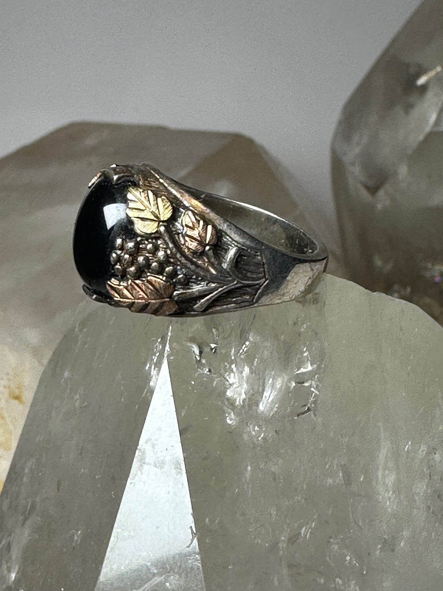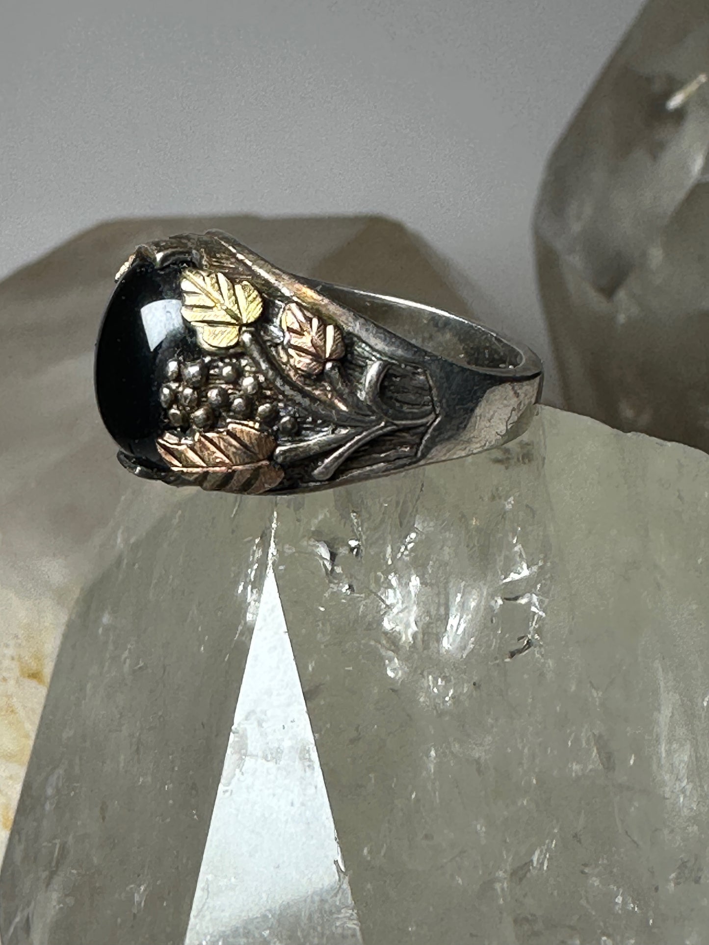 Black Hills Gold ring size 6.75 onyx band sterling silver women
