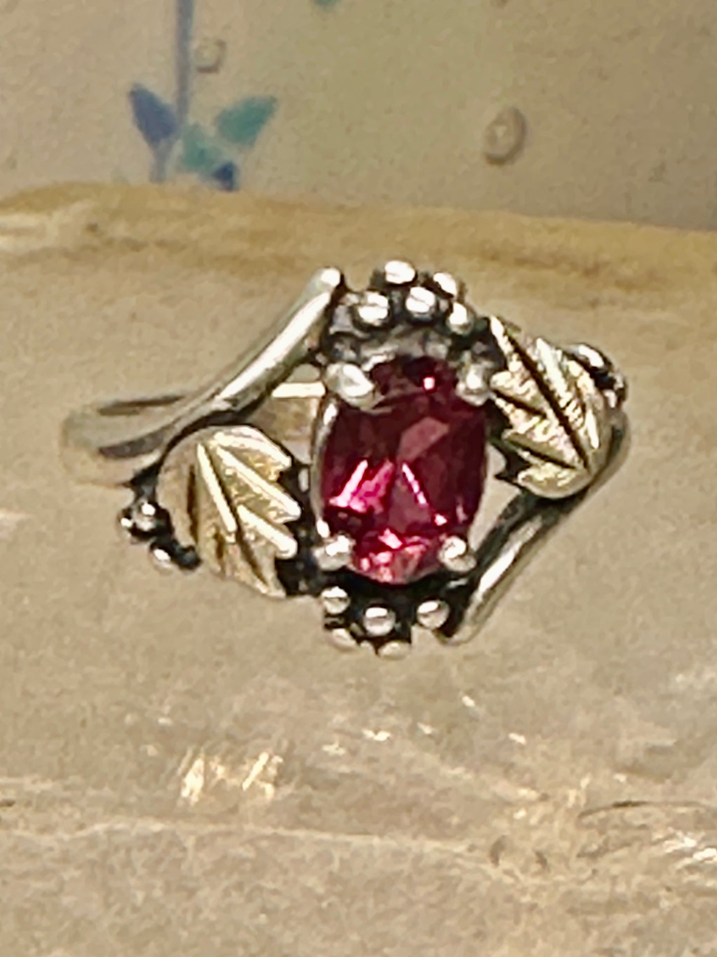 Black Hills Gold ring Wheeler leaves red size 4.75 sterling silver women girls