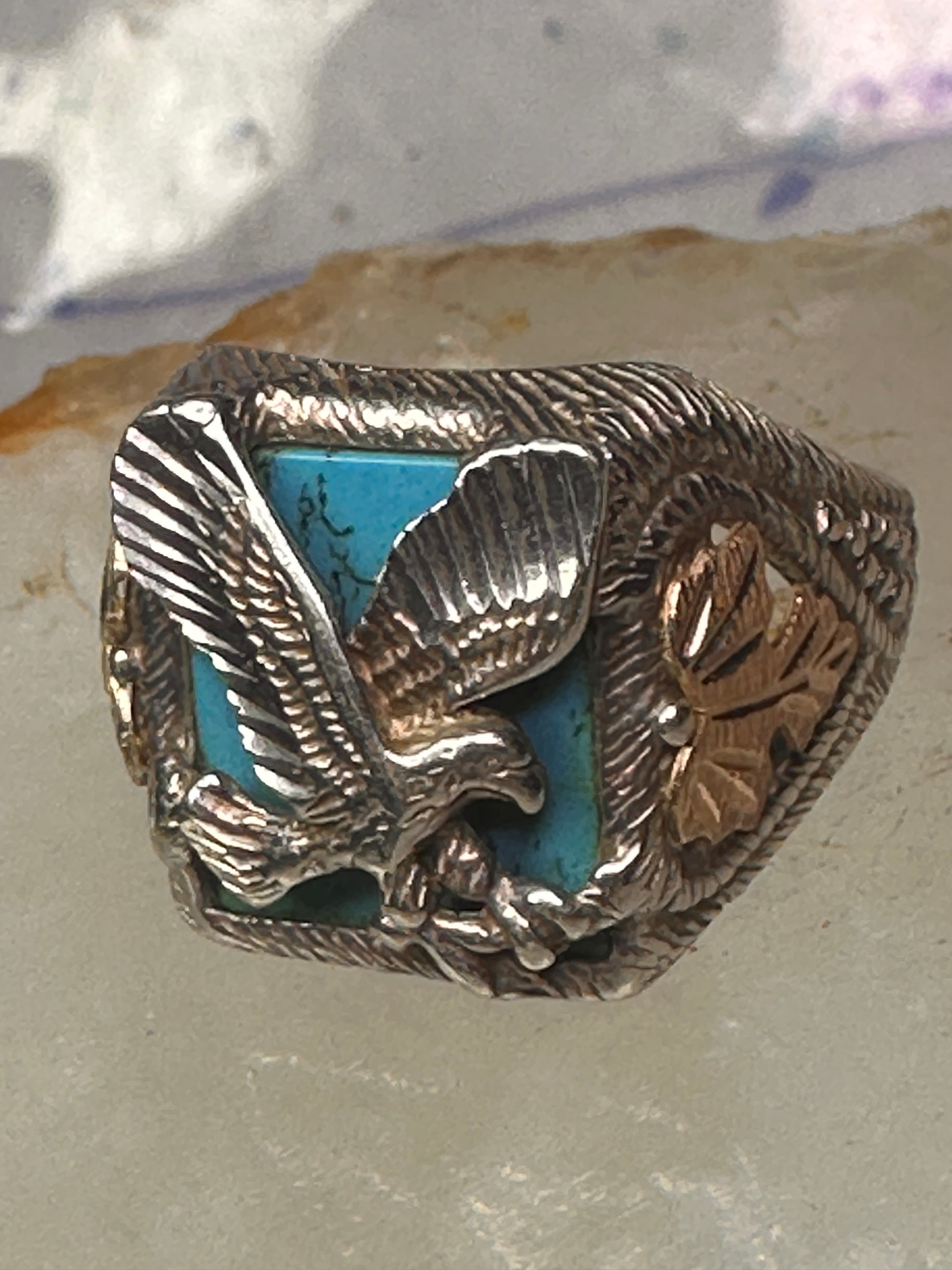 Black Hills Gold Turquoise ring eagle band size 10 sterling silver women men