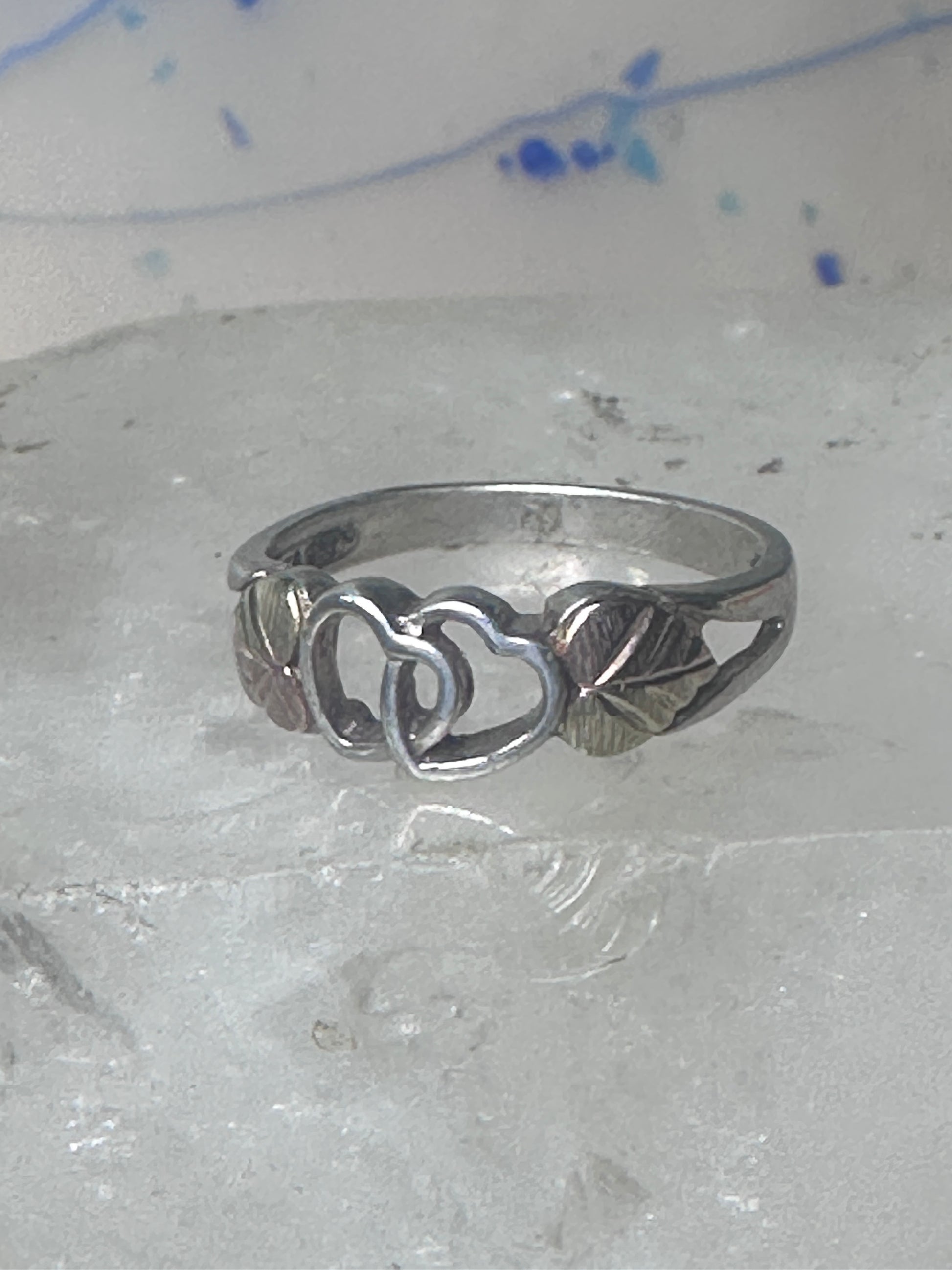 Black Hills ring double heart band Valentine size 7 sterling silver women