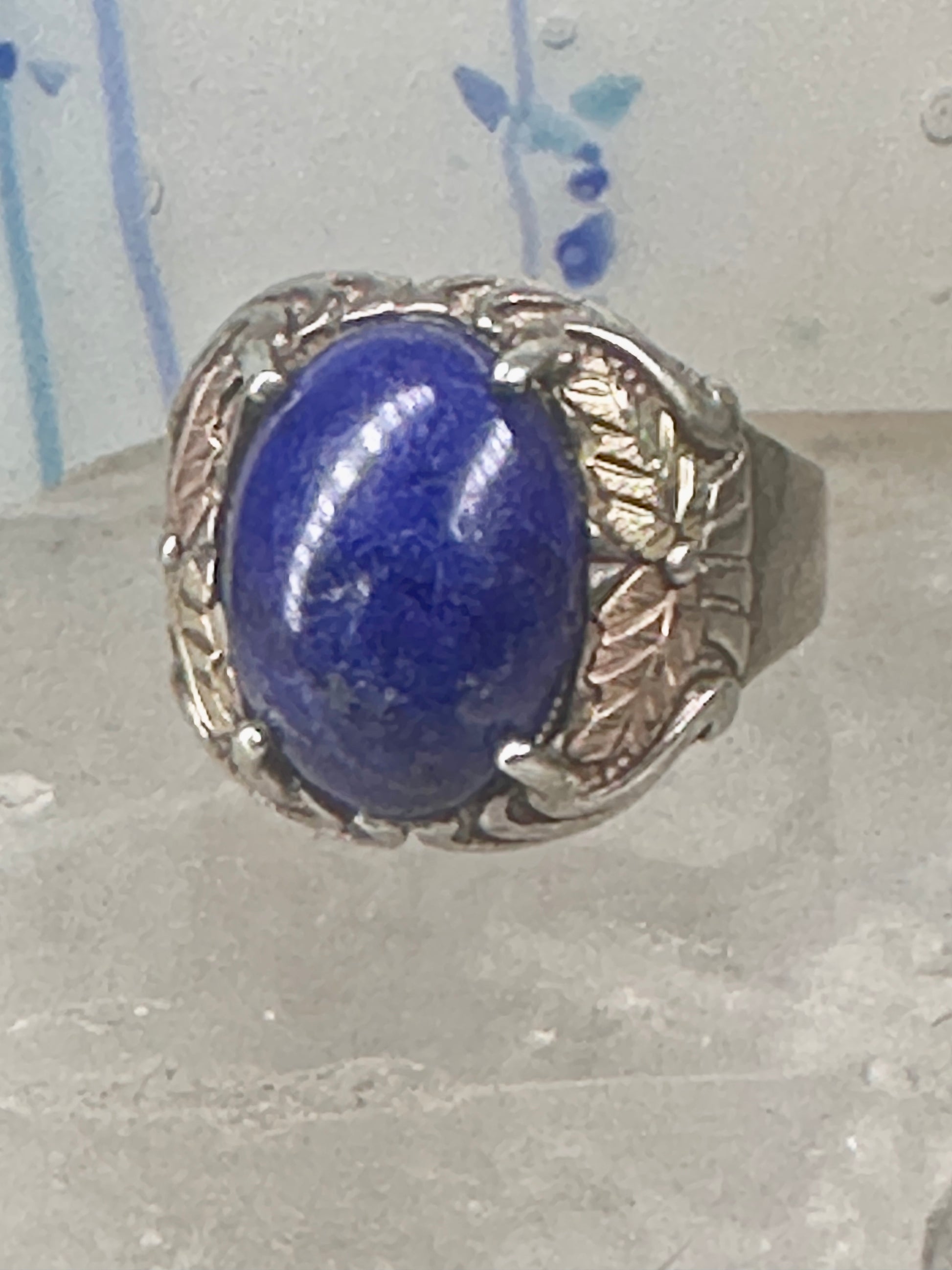 Blue Hills Gold ring Blue lapis band leaves size 9.75 sterling silver women men