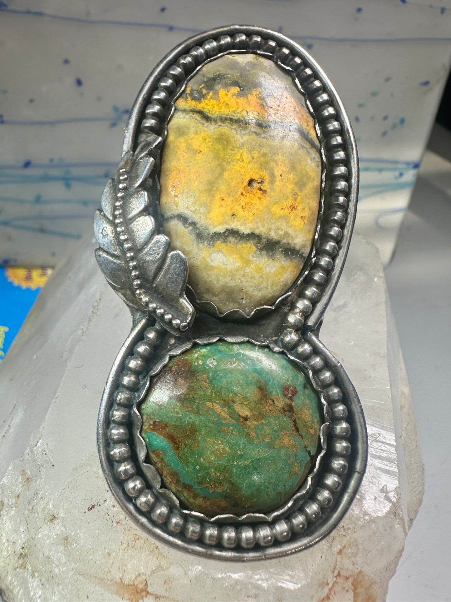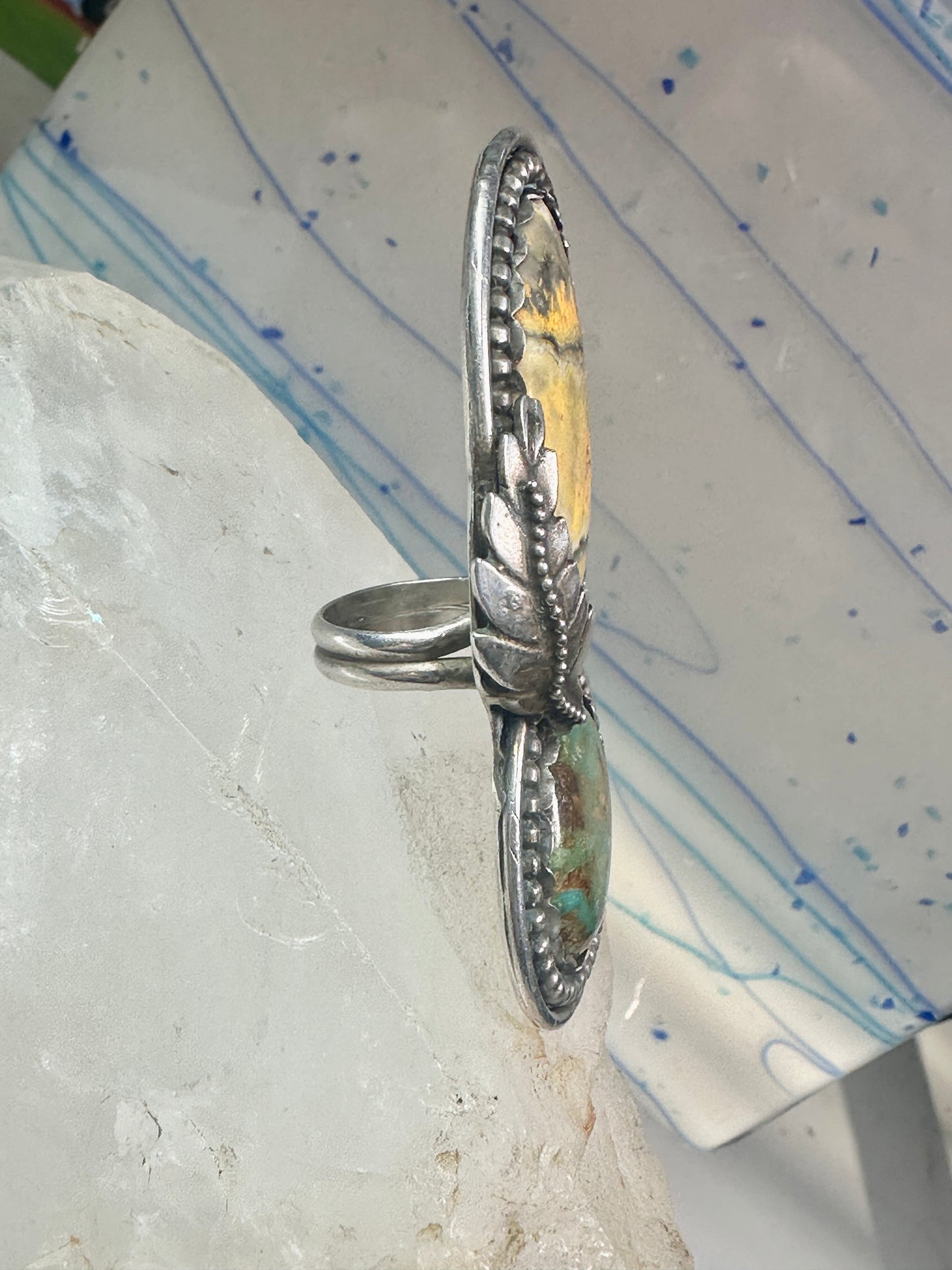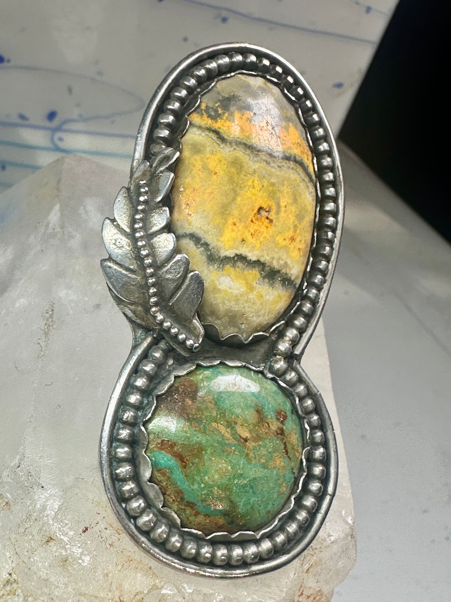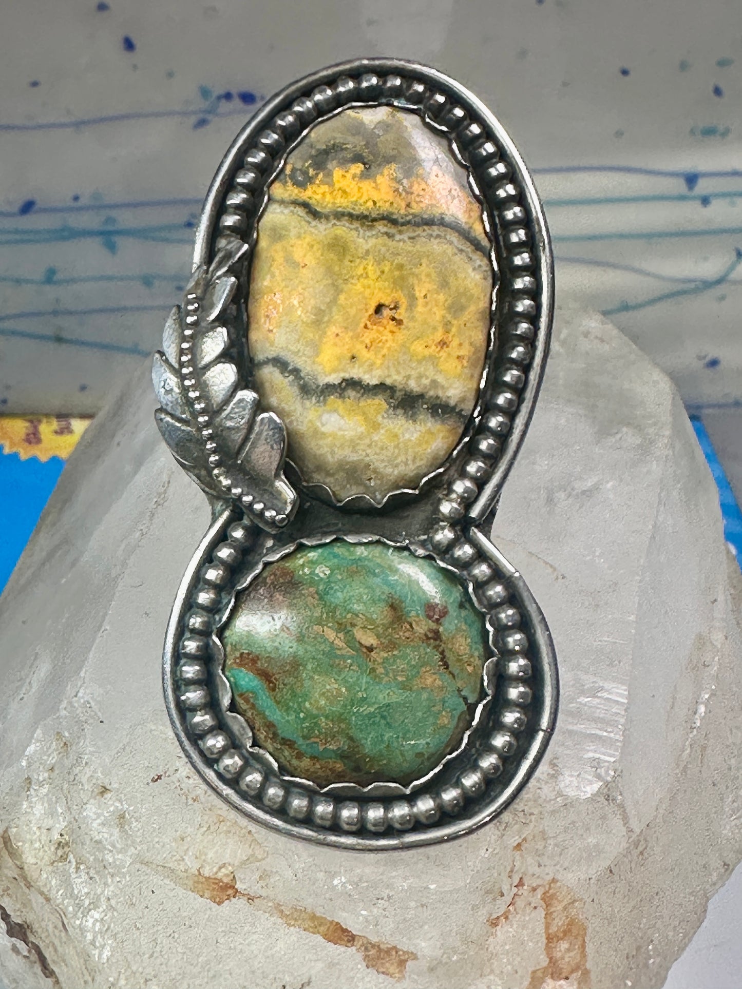 Huge Bumble bee jasper ring signed Sage size 5.50 Navajo sterling silver women