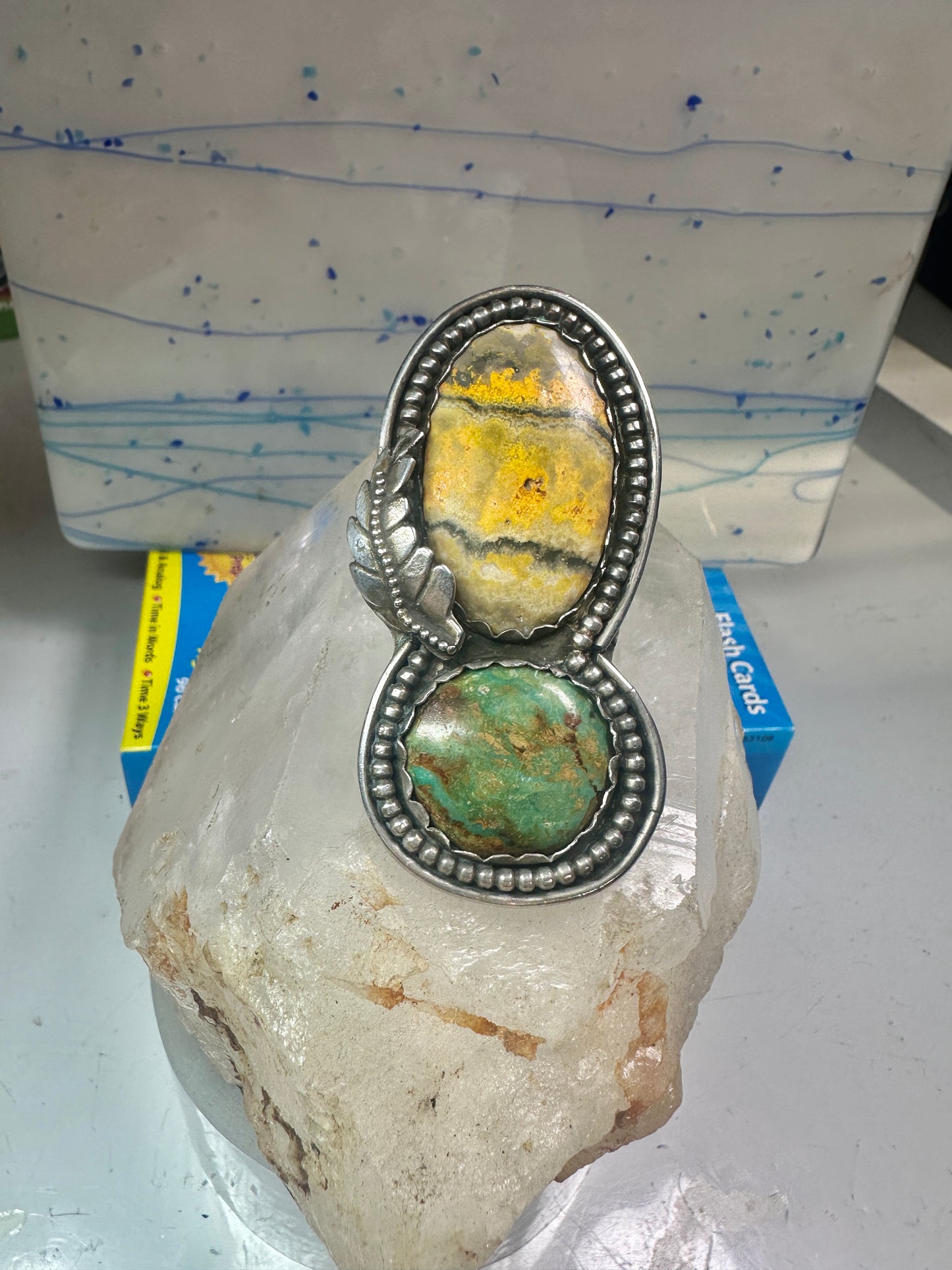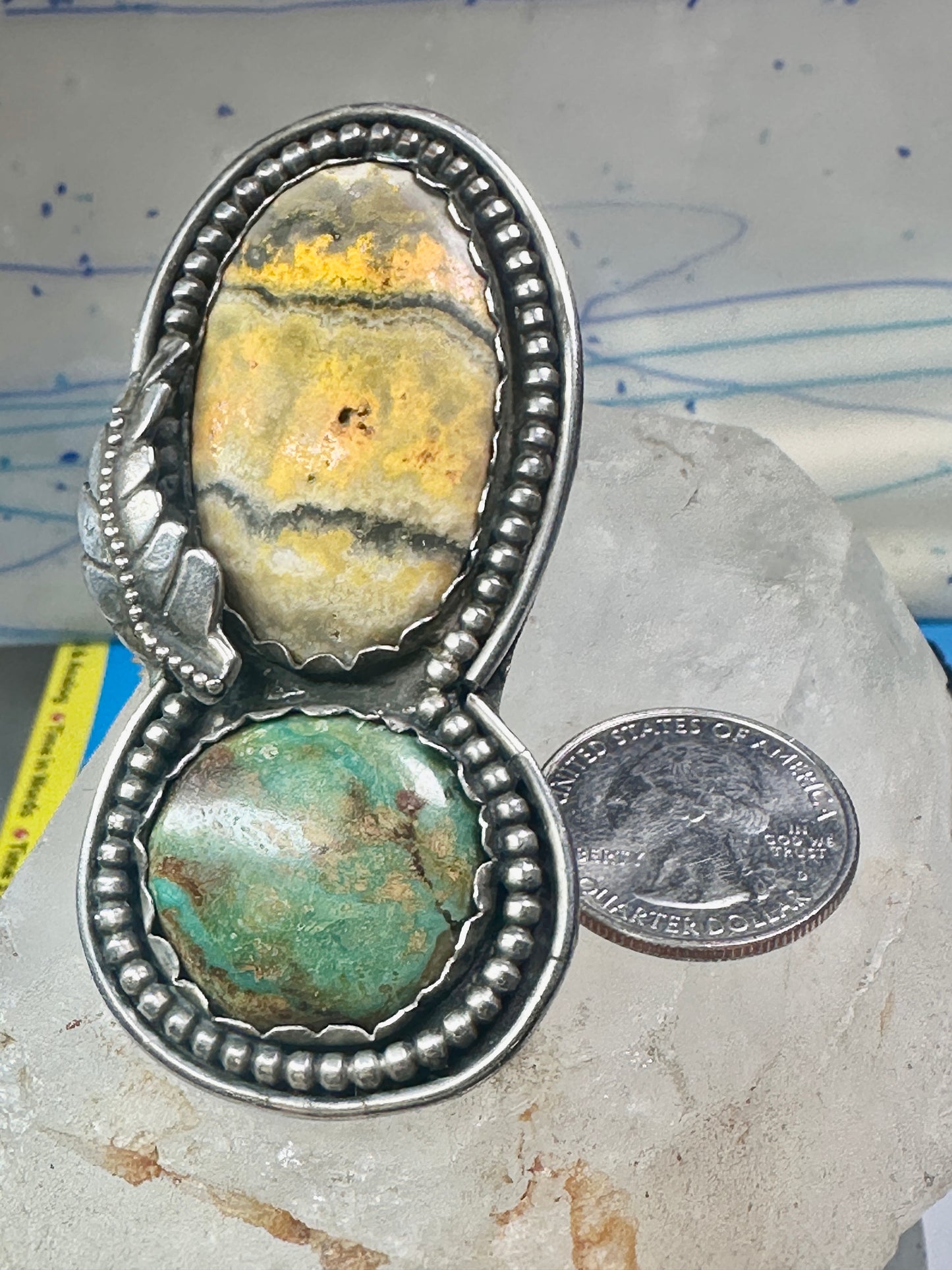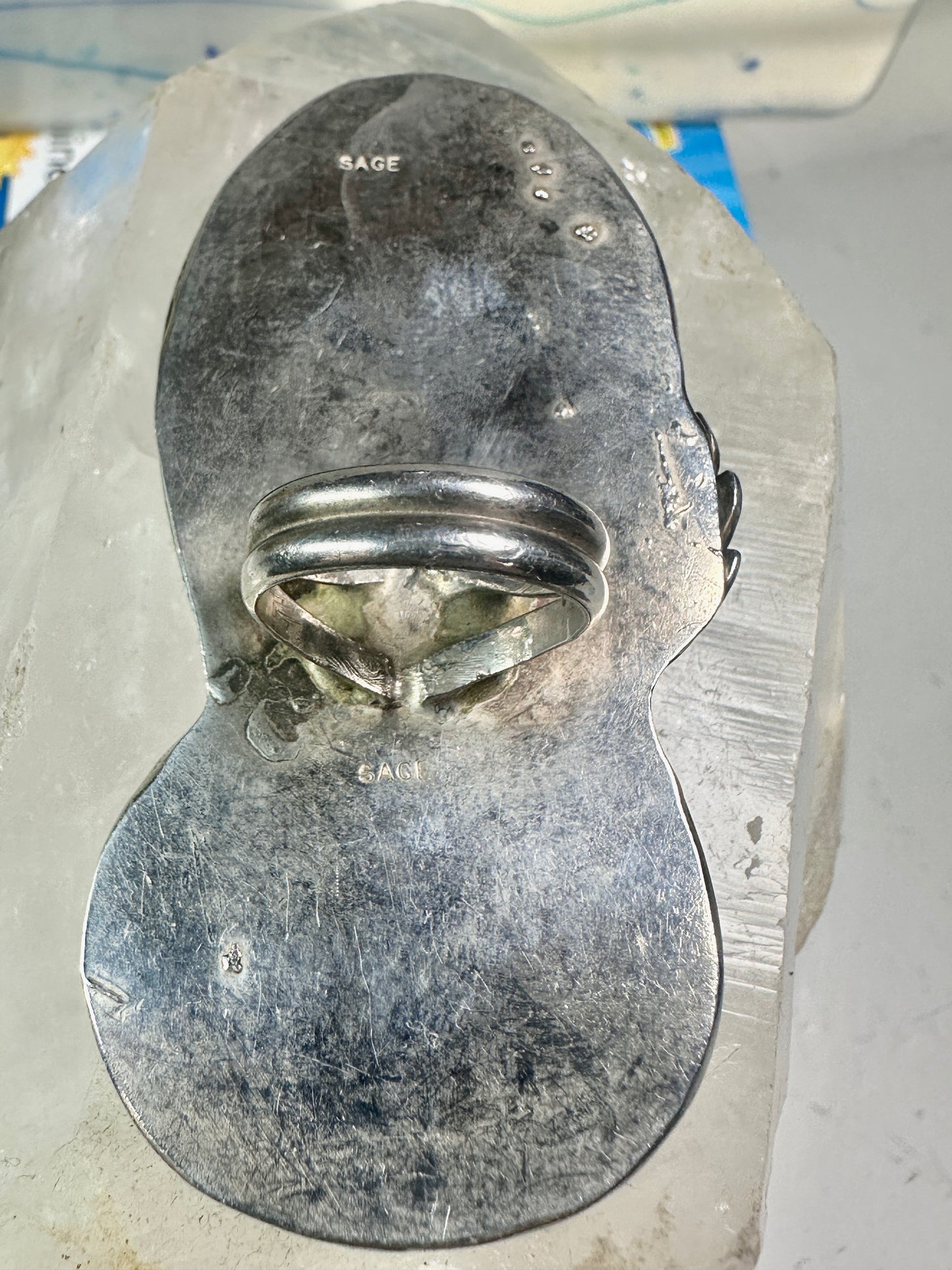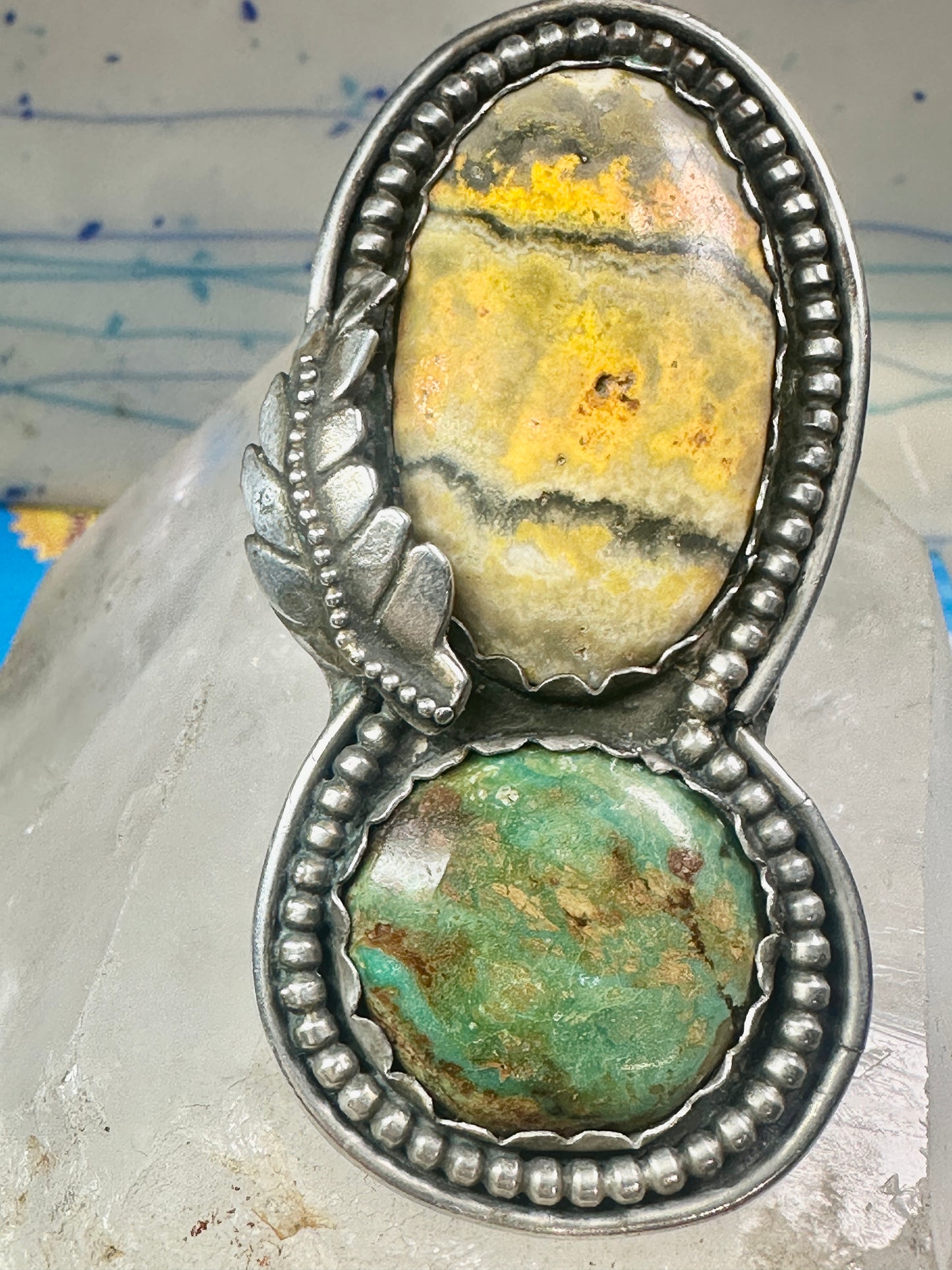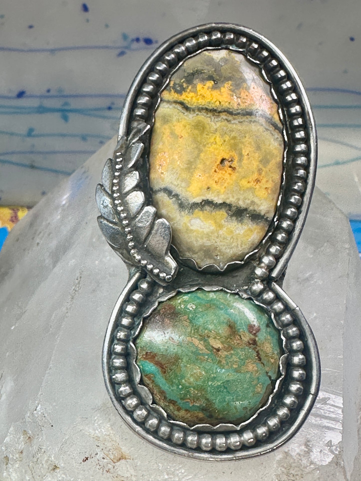 Huge Bumble bee jasper ring signed Sage size 5.50 Navajo sterling silver women