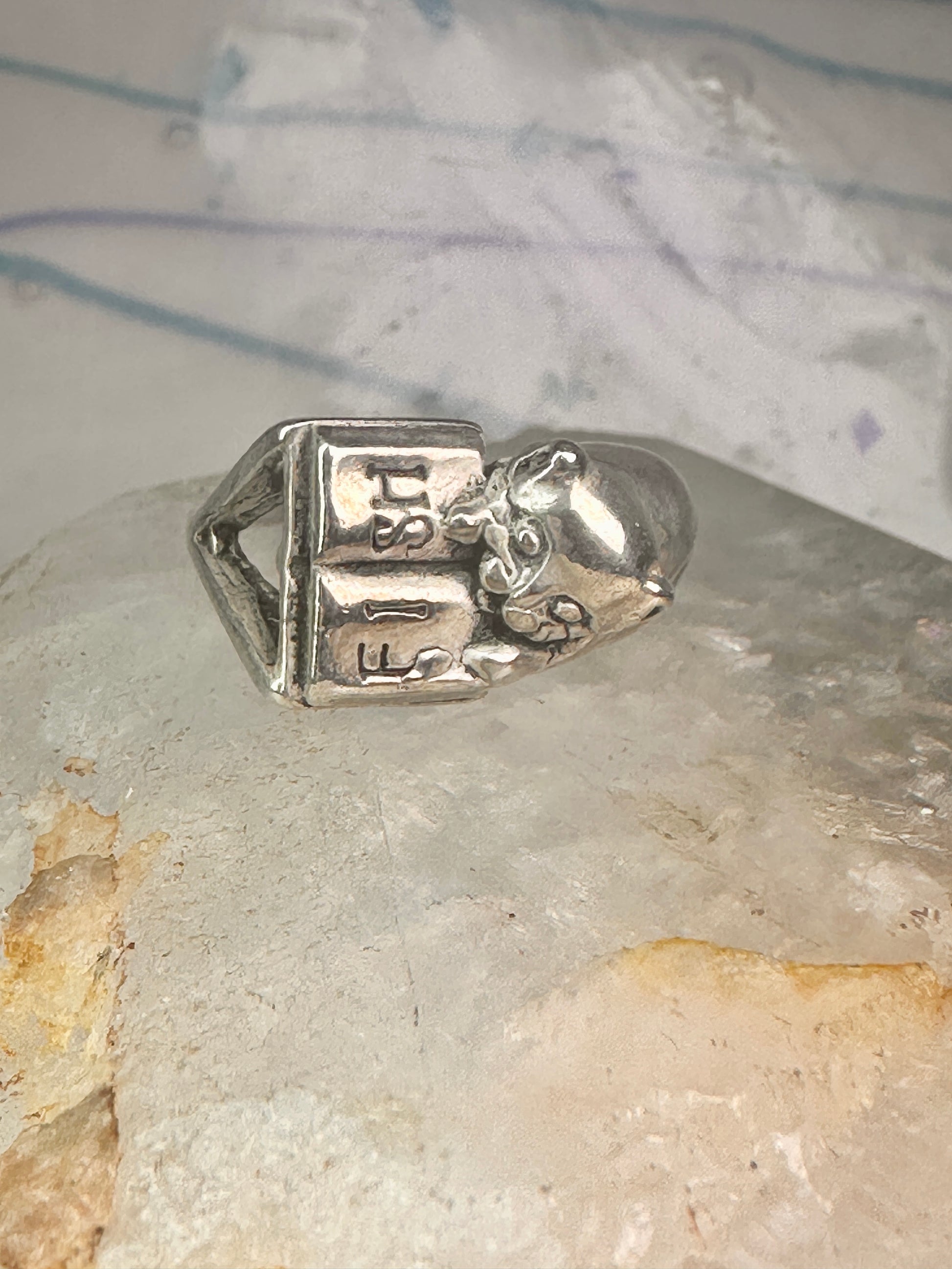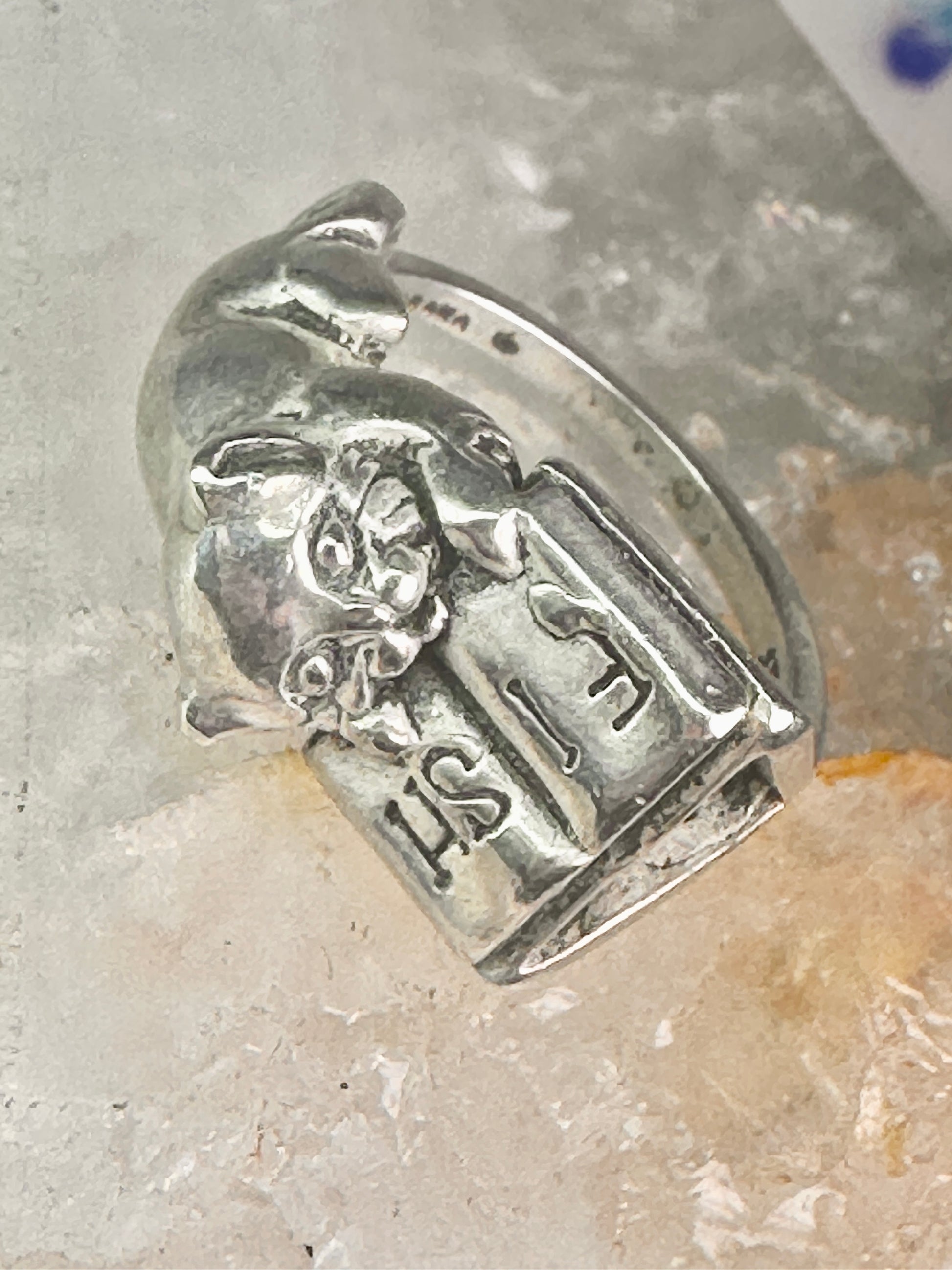 Cat ring reading Fish Book pinky band sterling silver size 4.75 sterling silver
