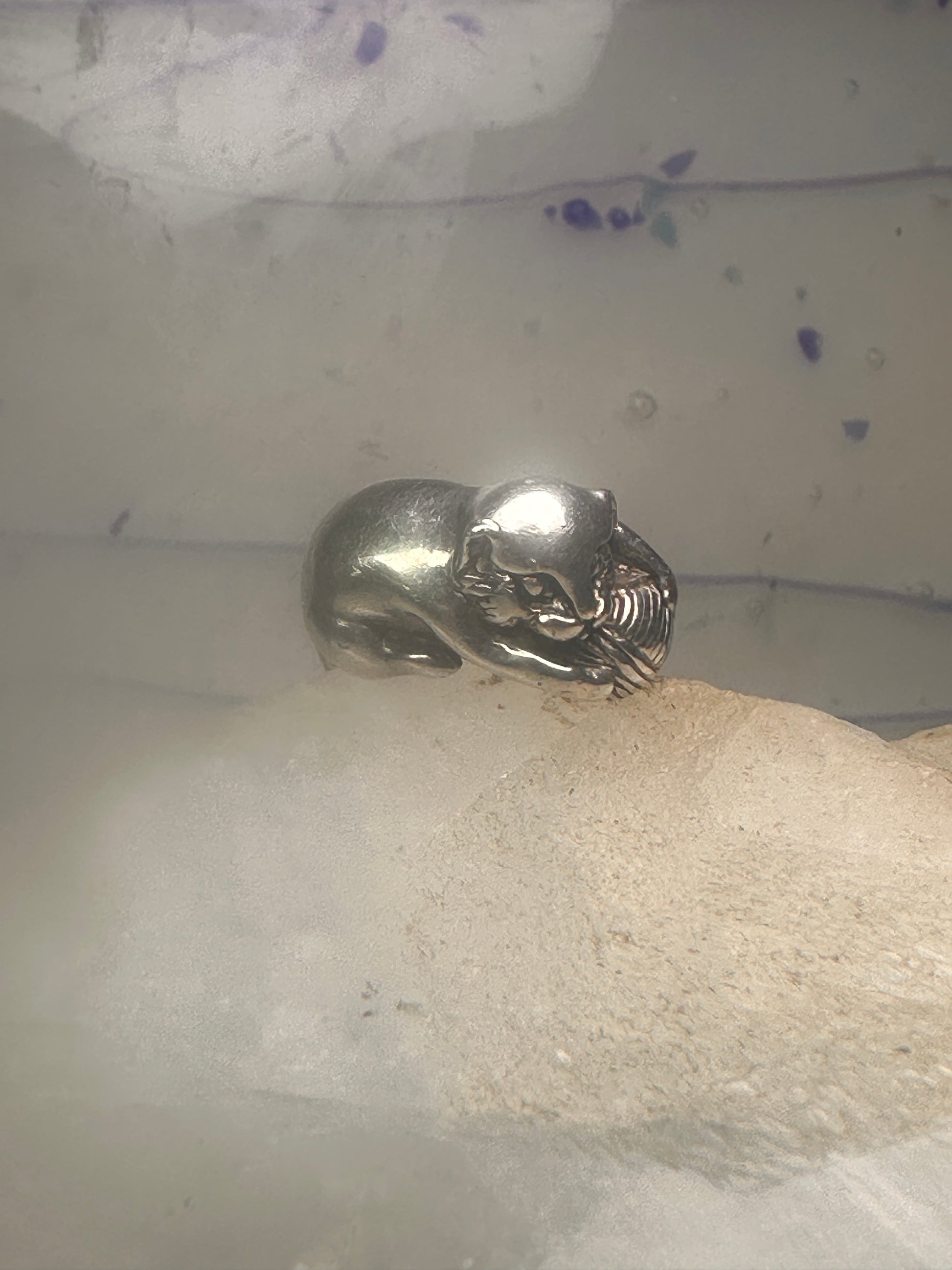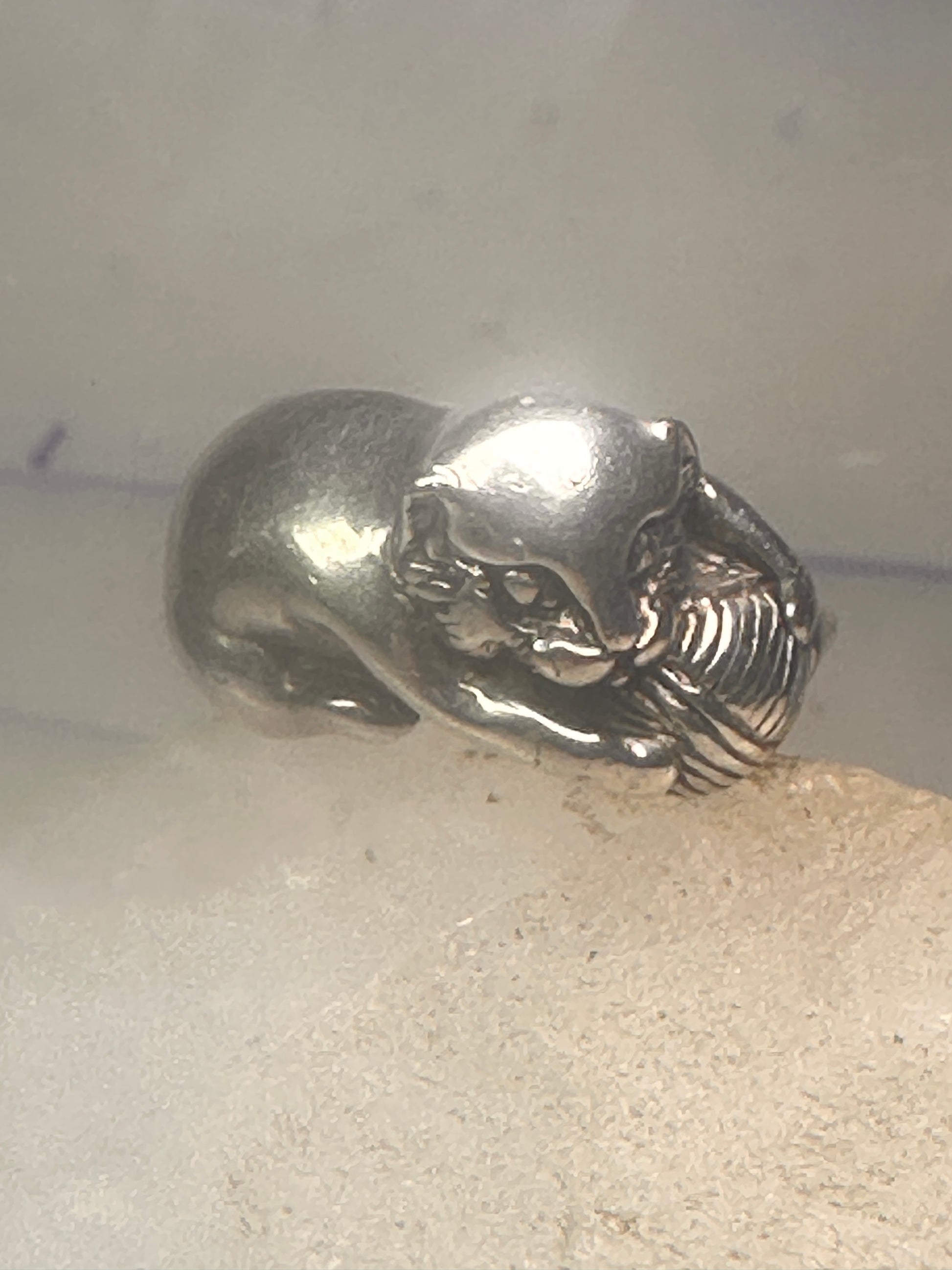 Cat ring playing with yarn ball Kabana size 5 sterling silver girls women pinky