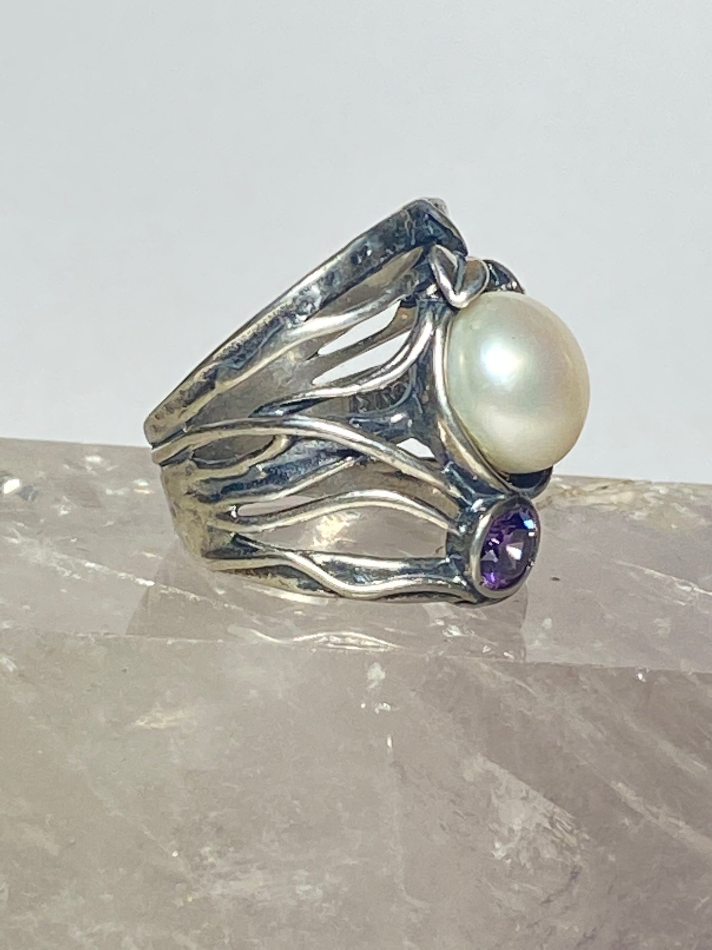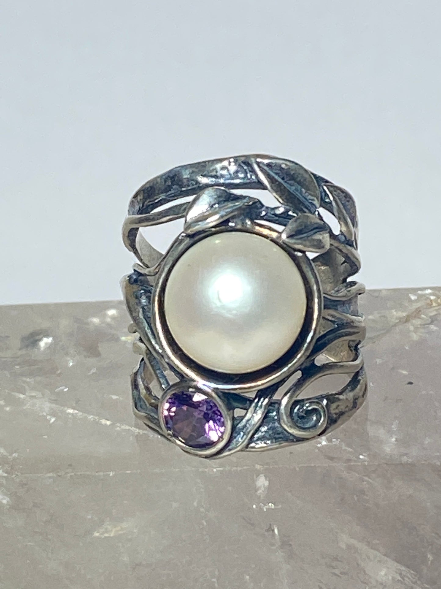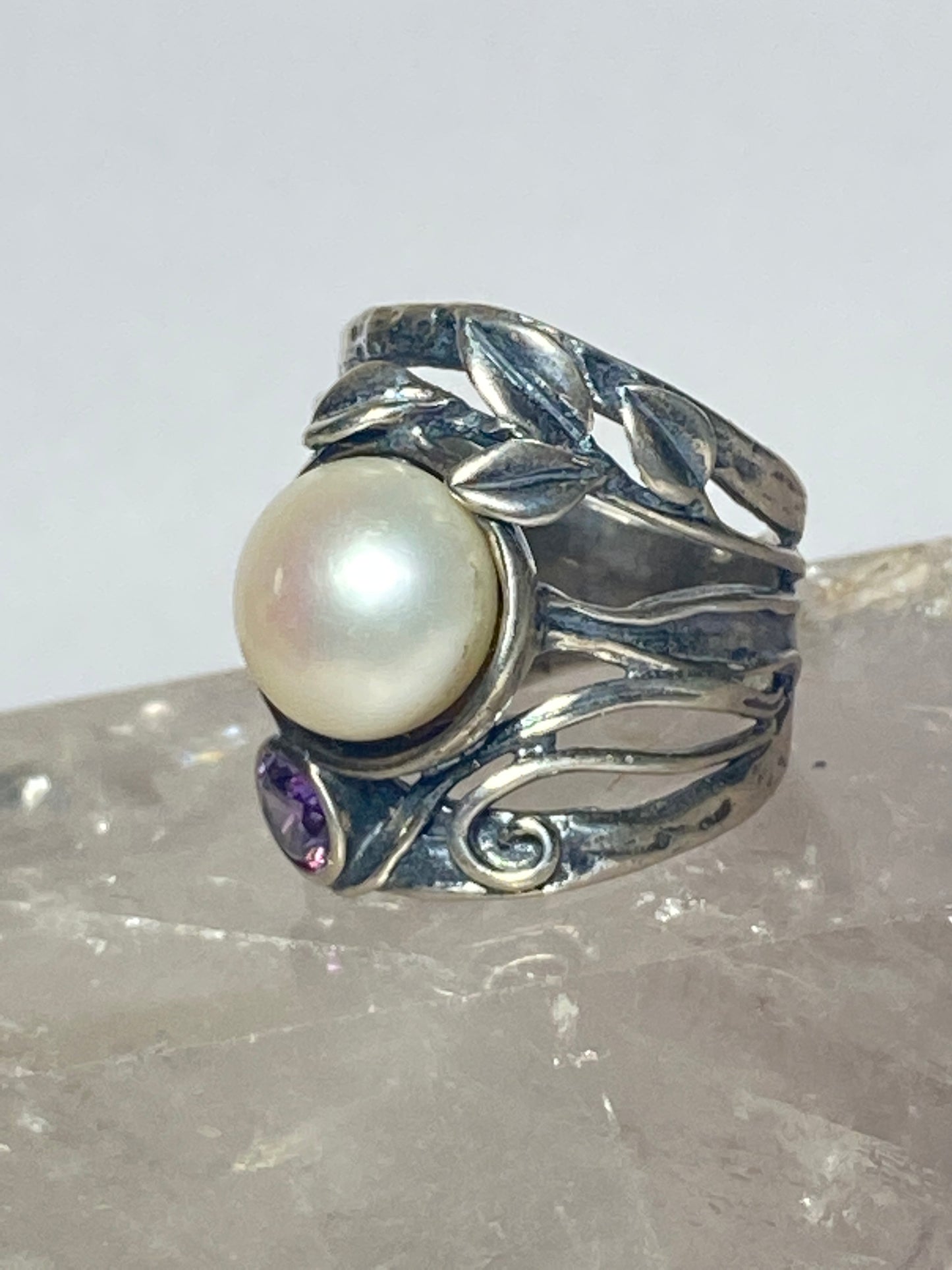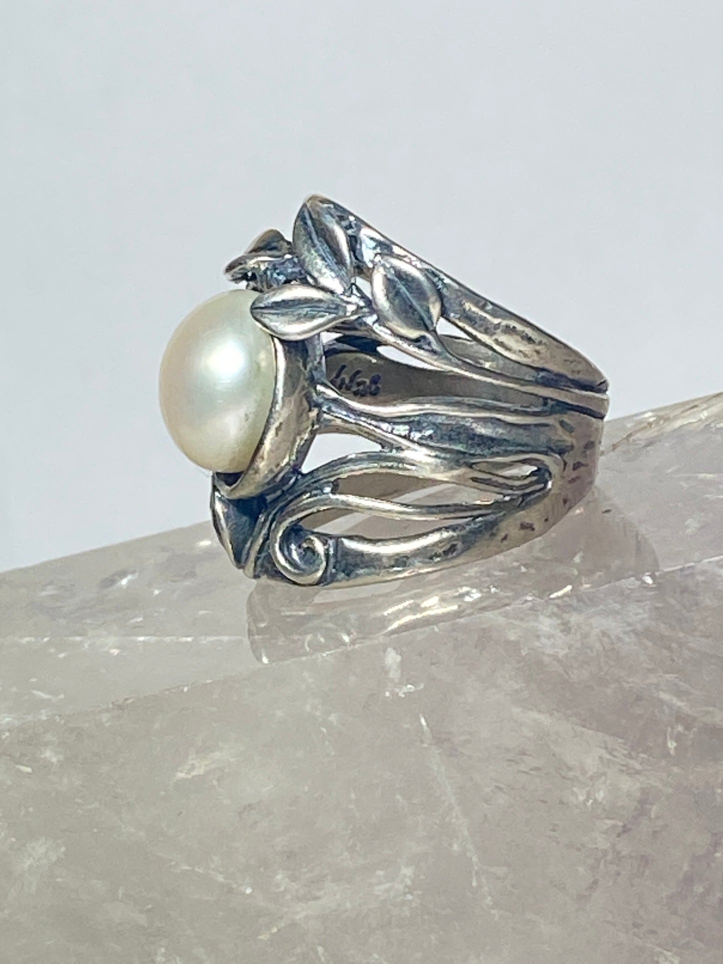 Cigar band size 6.50 floral ring pearl sterling silver Didae women