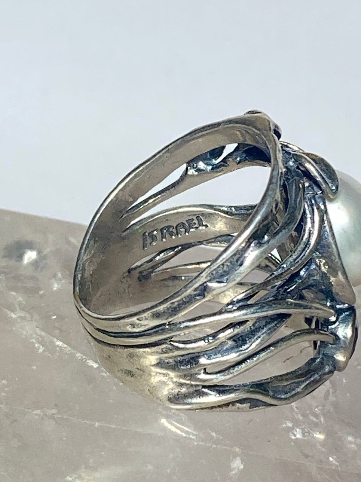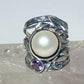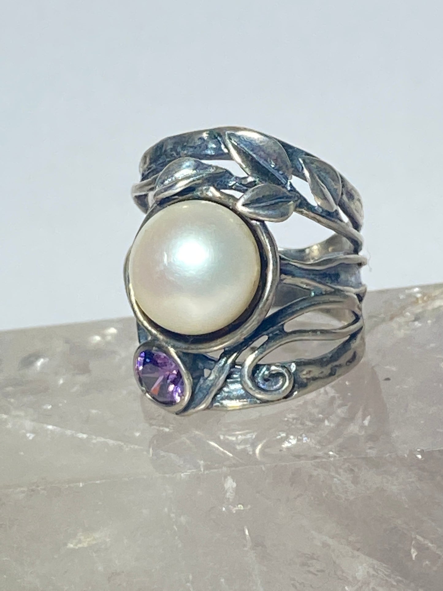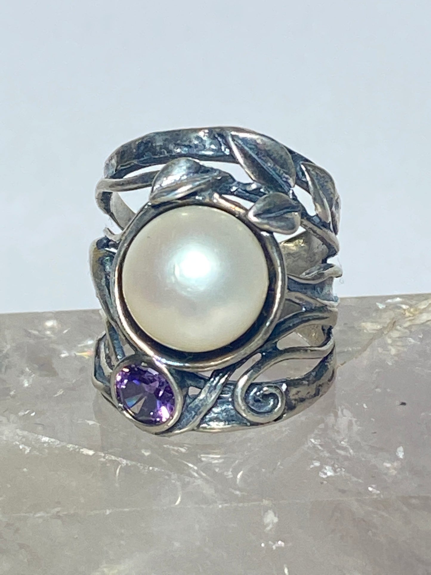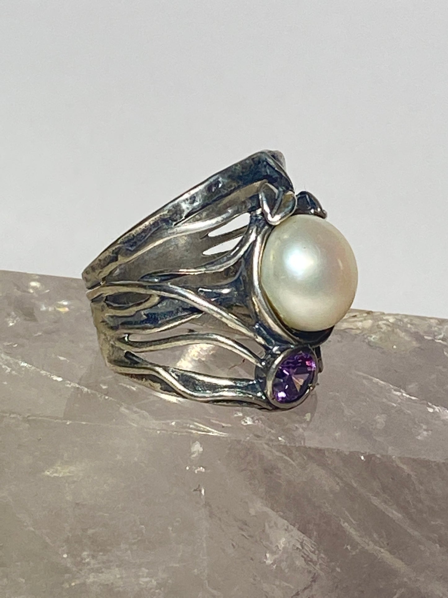 Cigar band size 6.50 floral ring pearl sterling silver Didae women