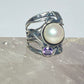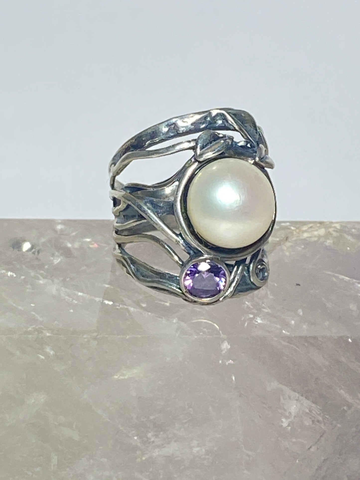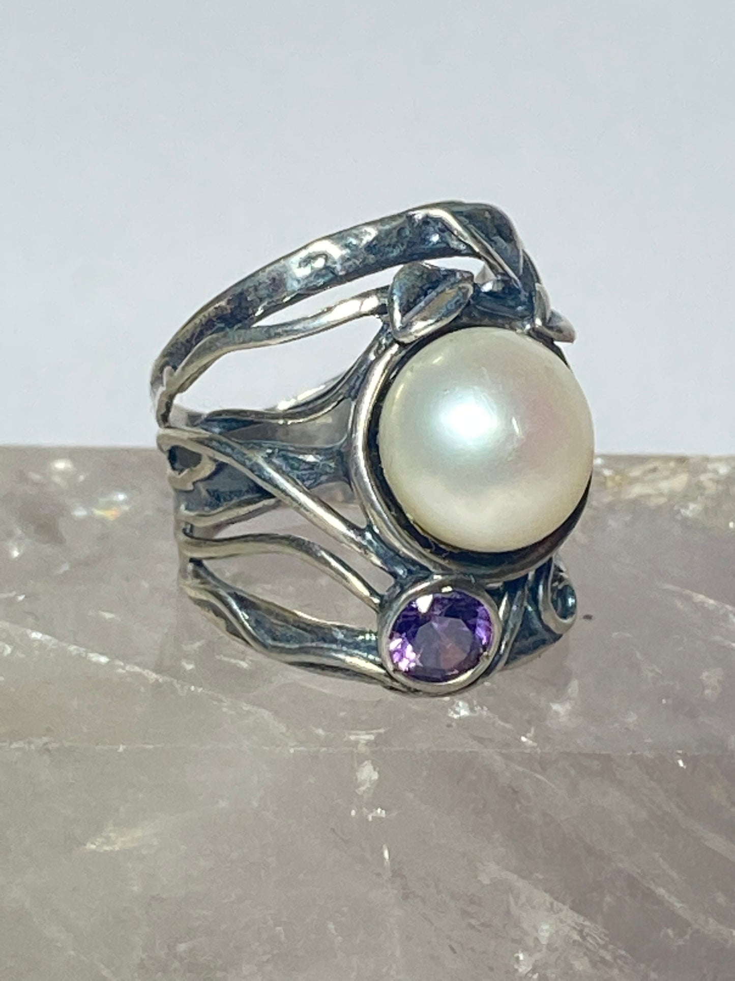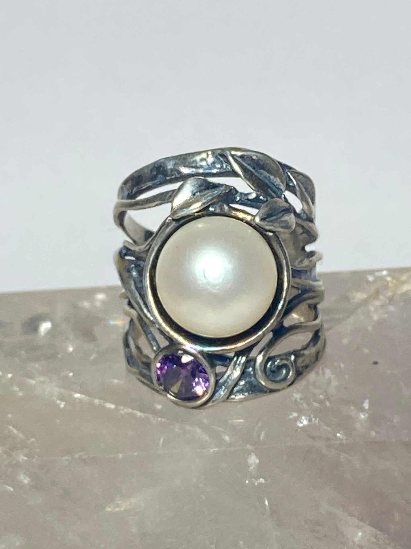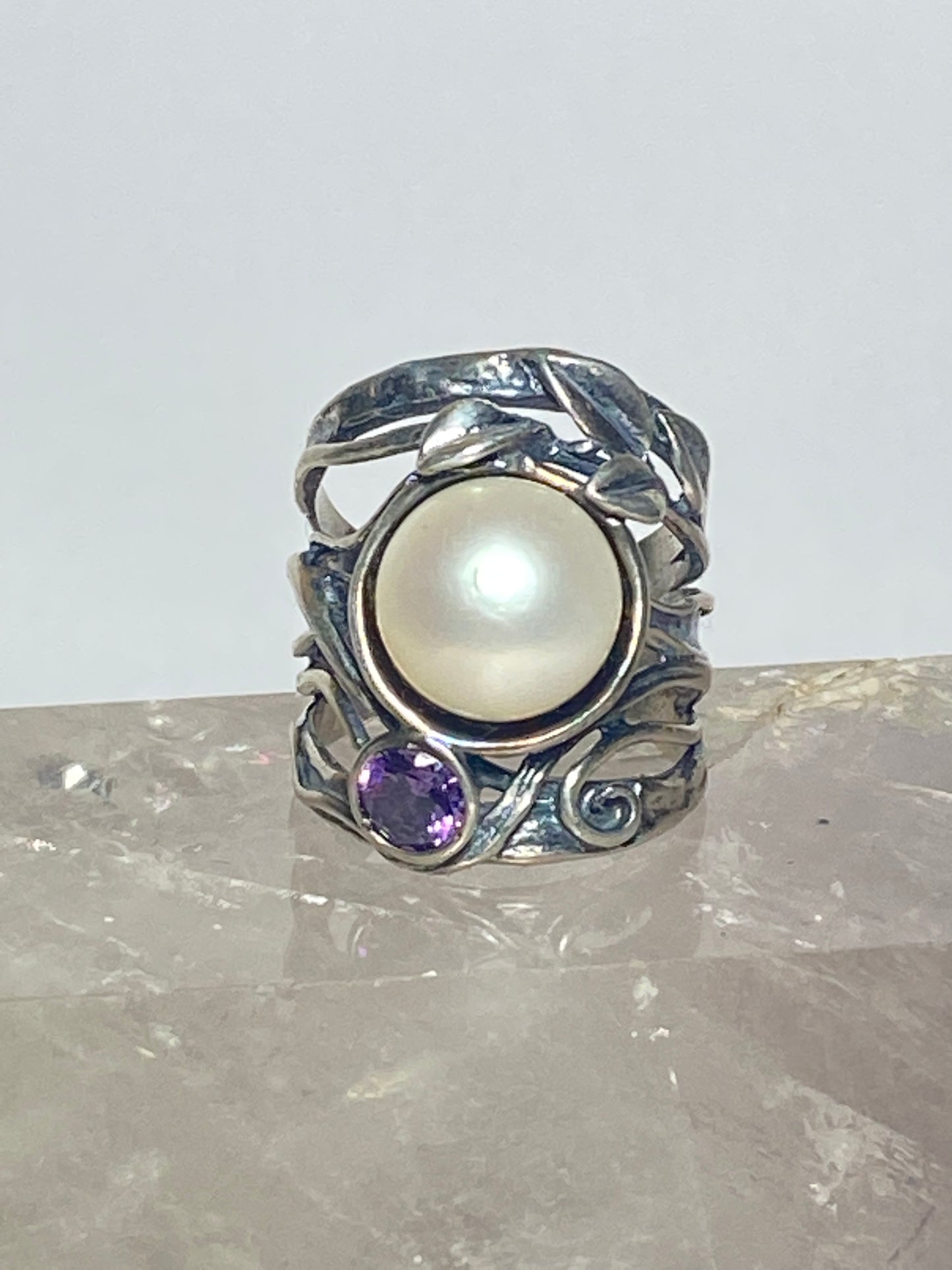 Cigar band size 6.50 floral ring pearl sterling silver Didae women