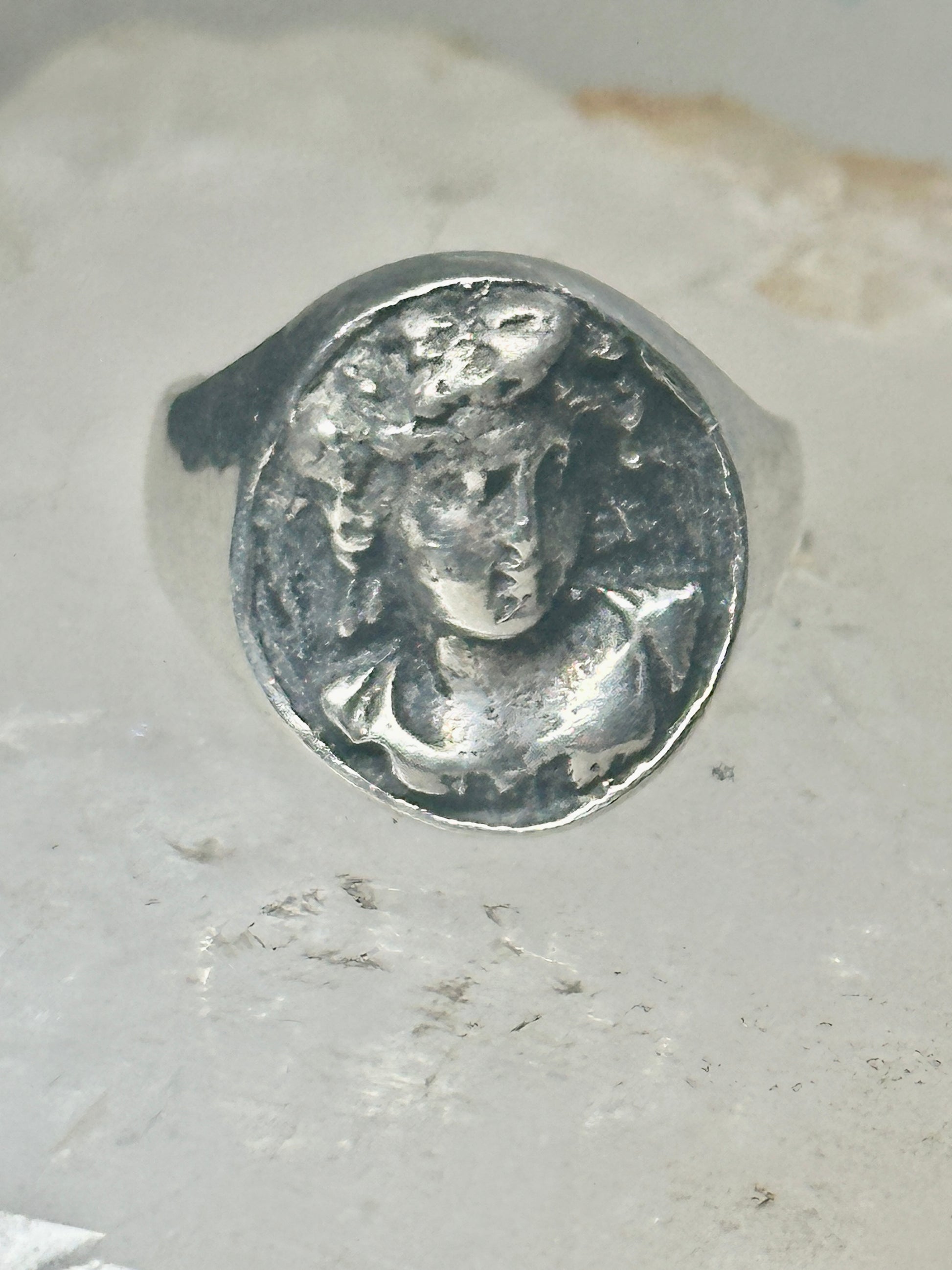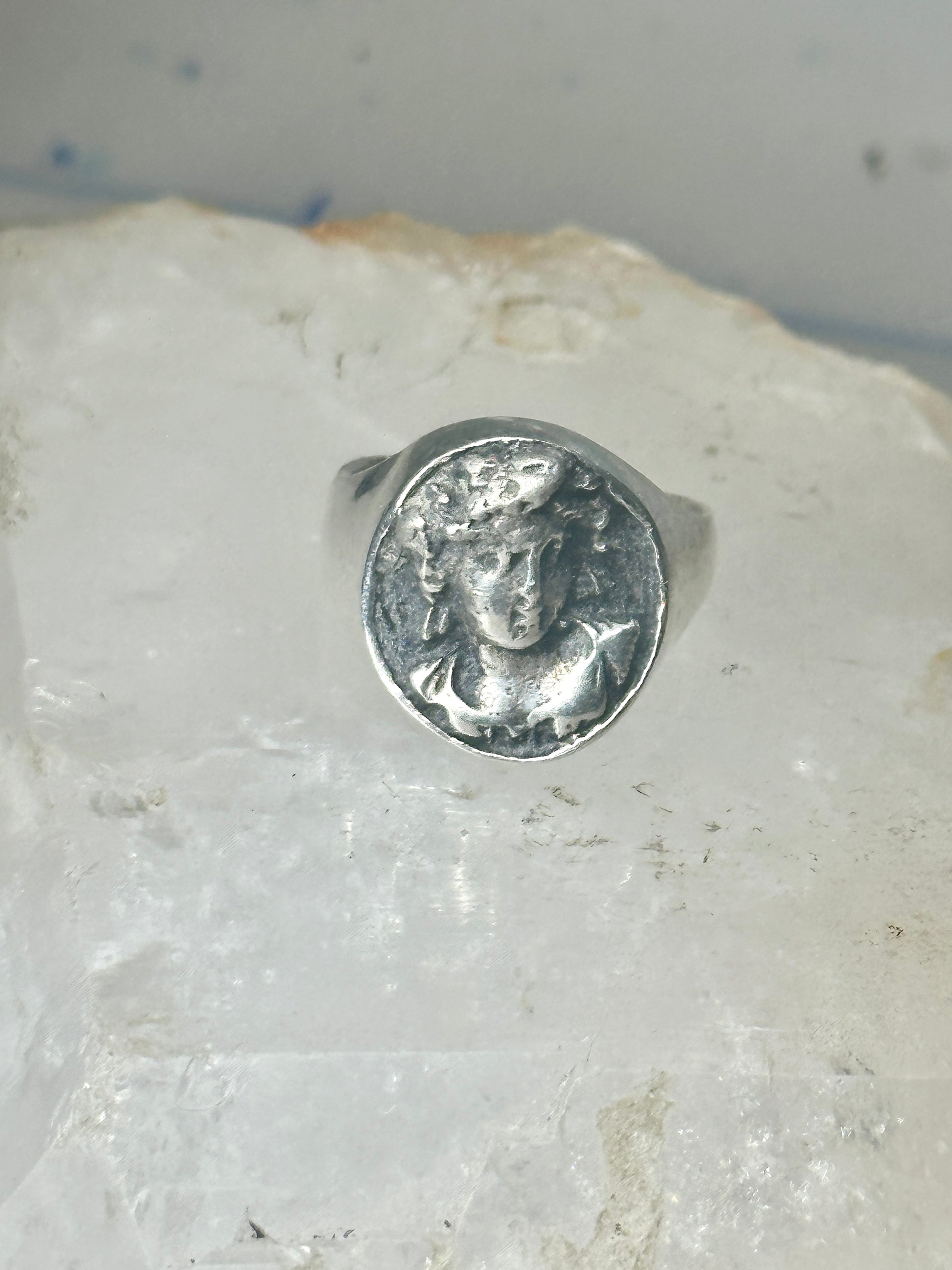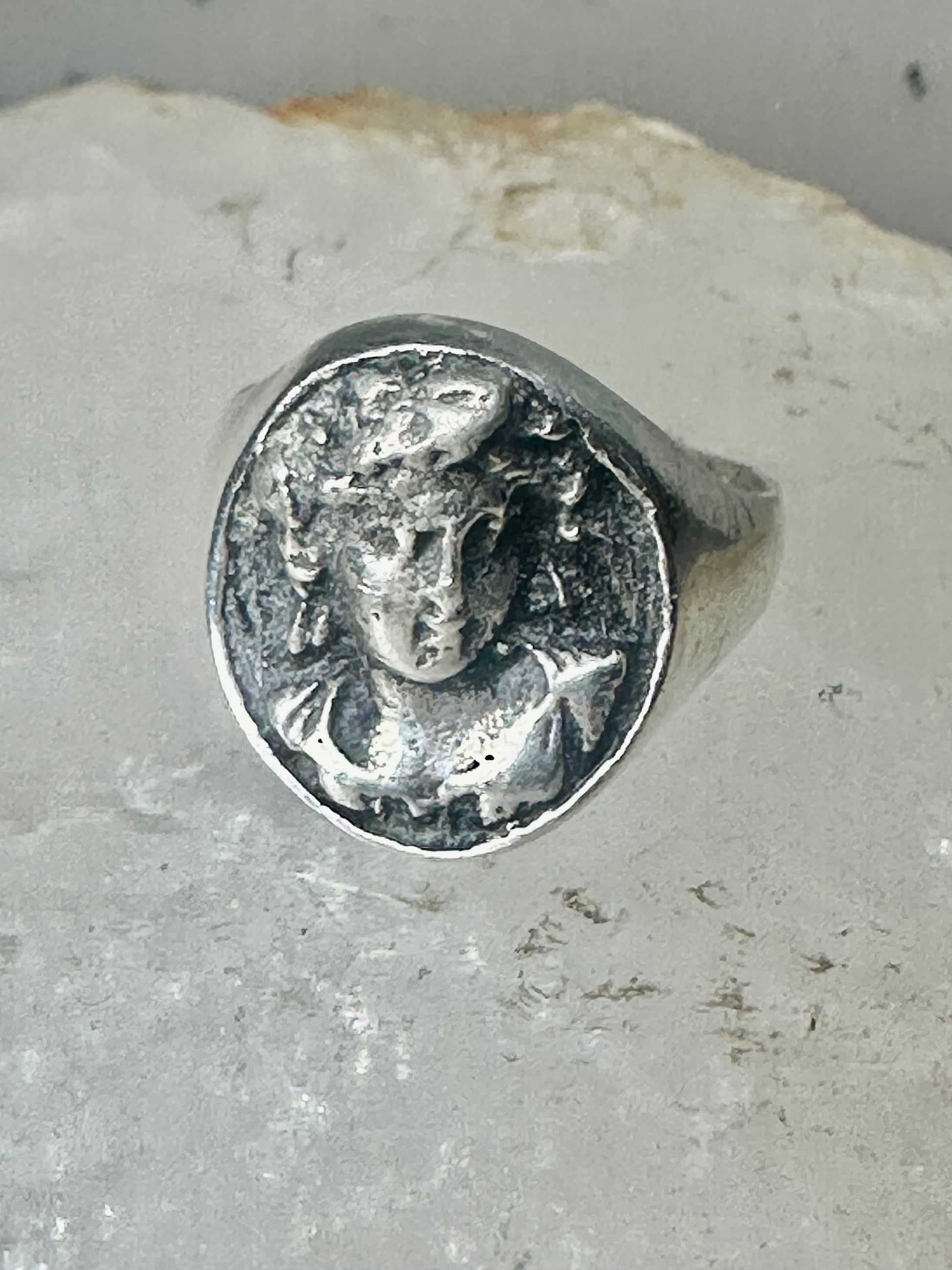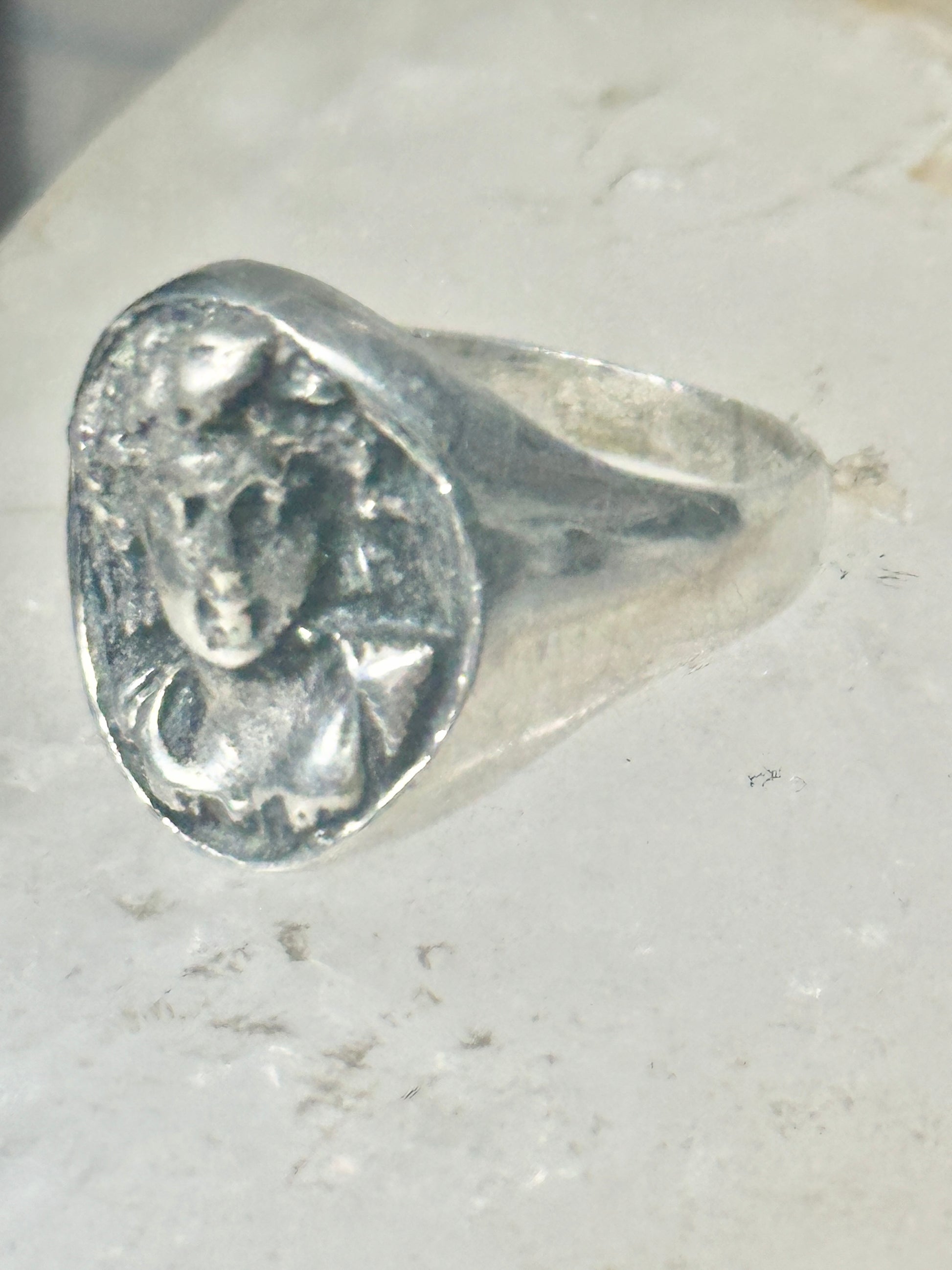 Classical face ring Art Deco figurative band size 9 sterling silver women