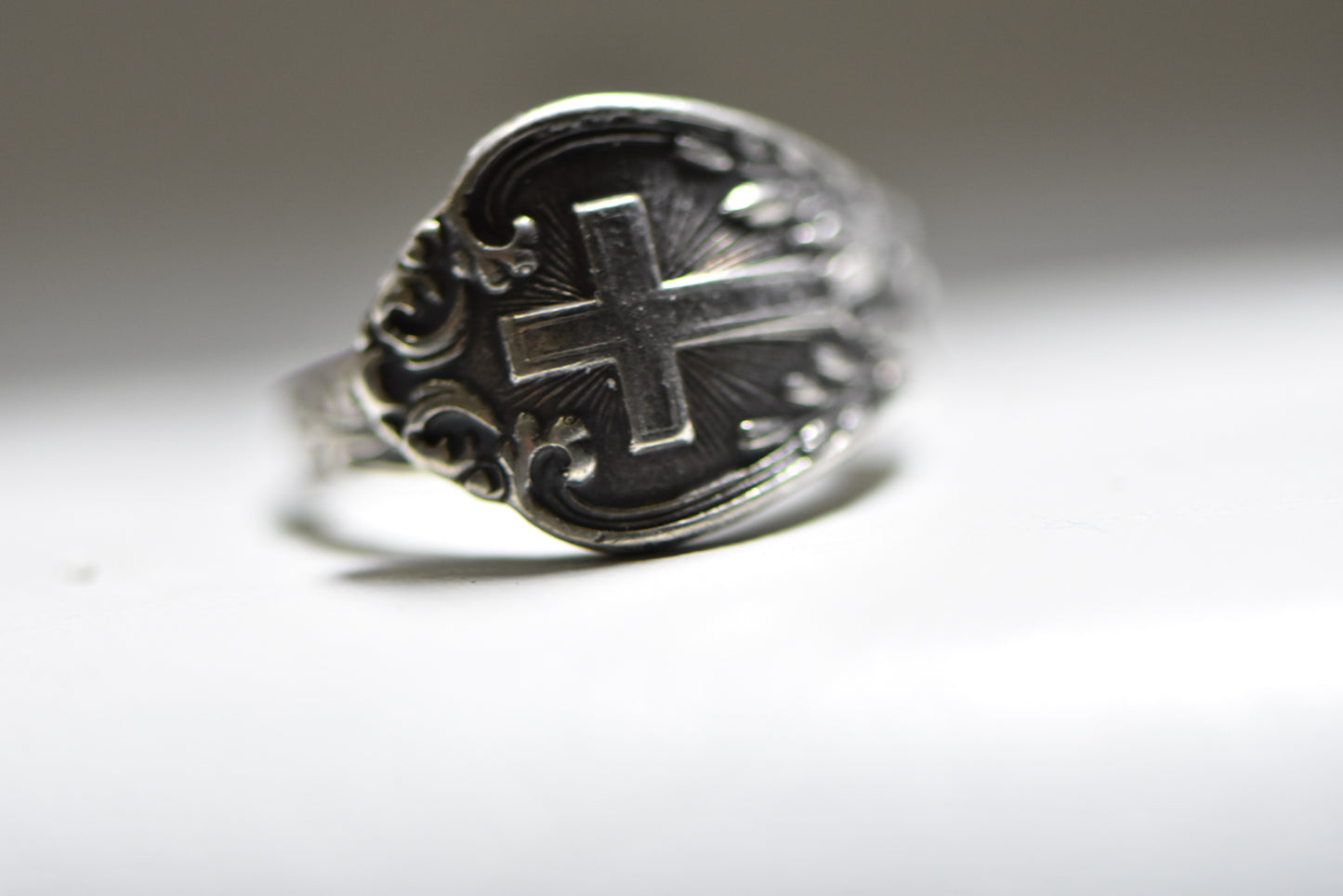 Cross Spoon Ring Lily Band Sterling Silver Girls Women Size 7