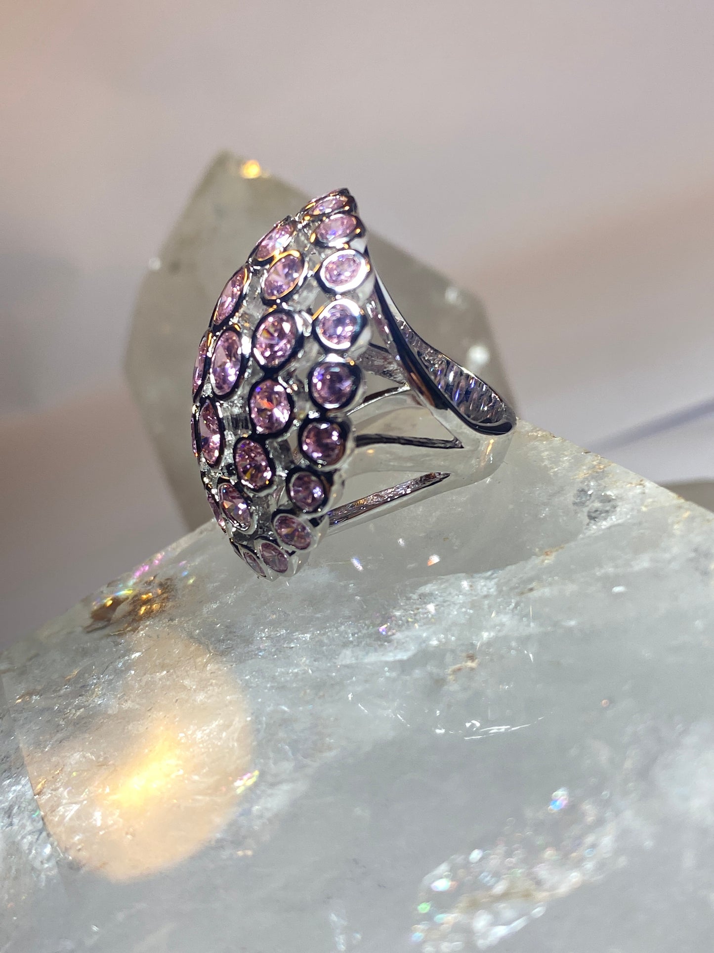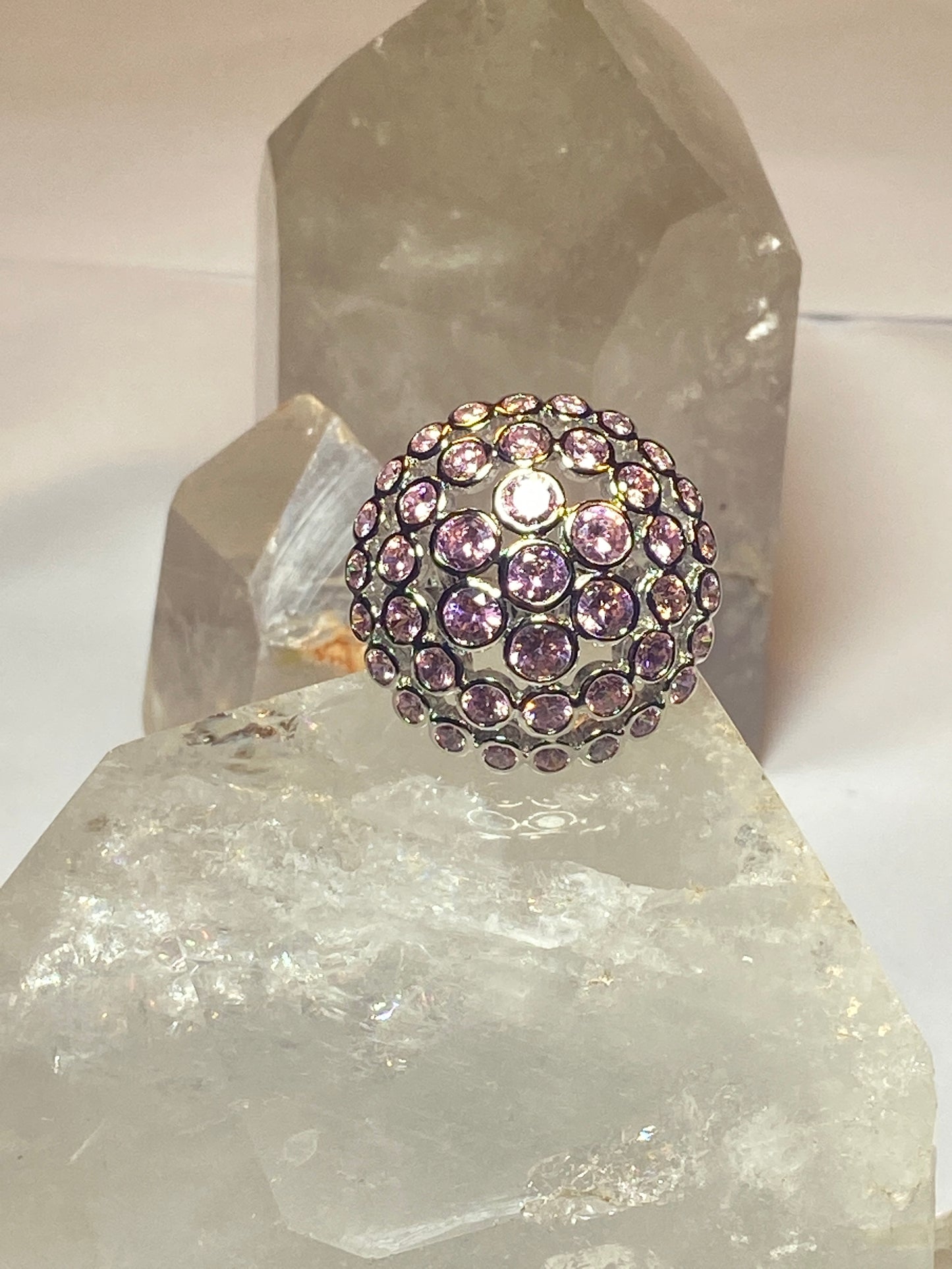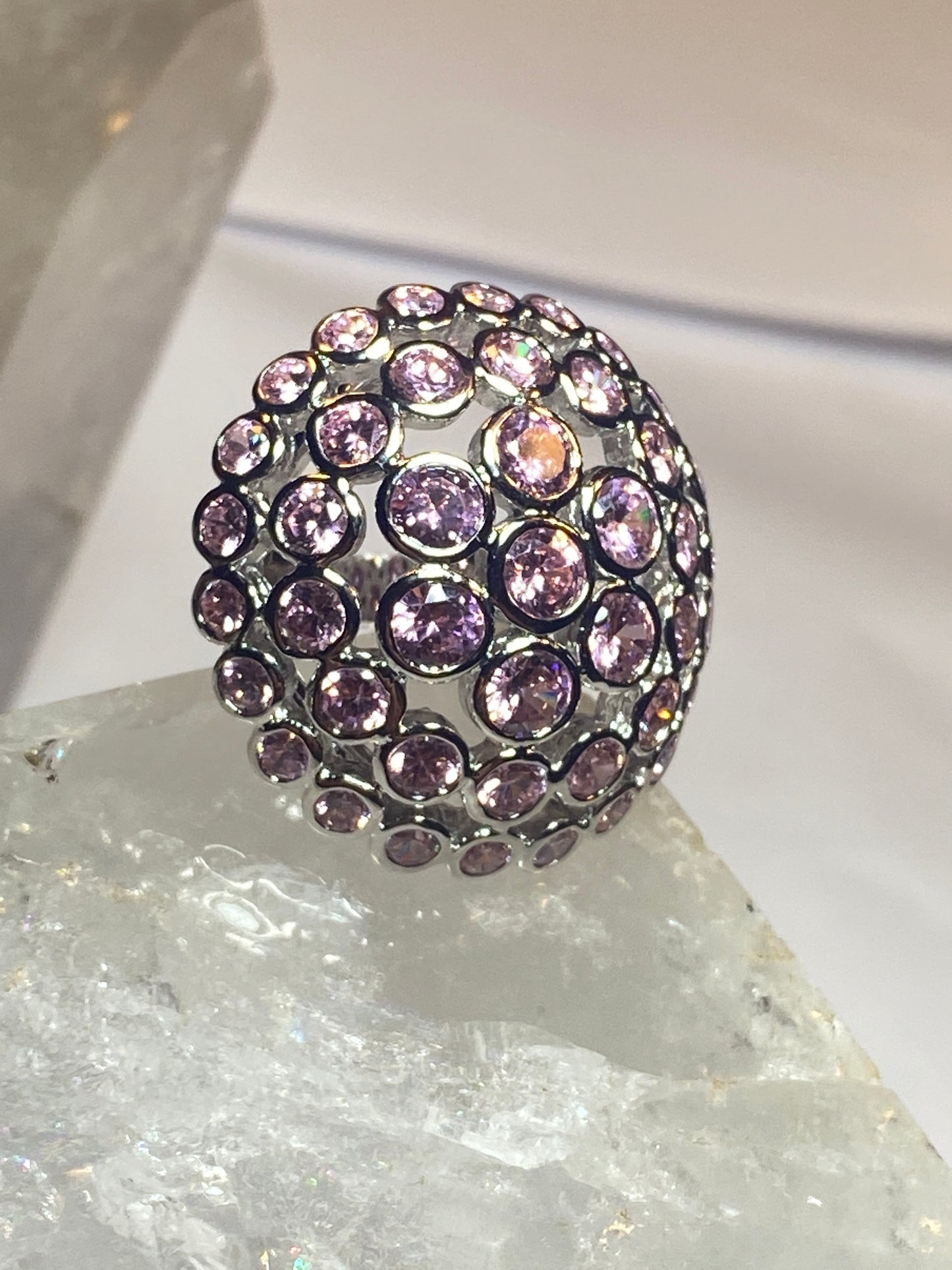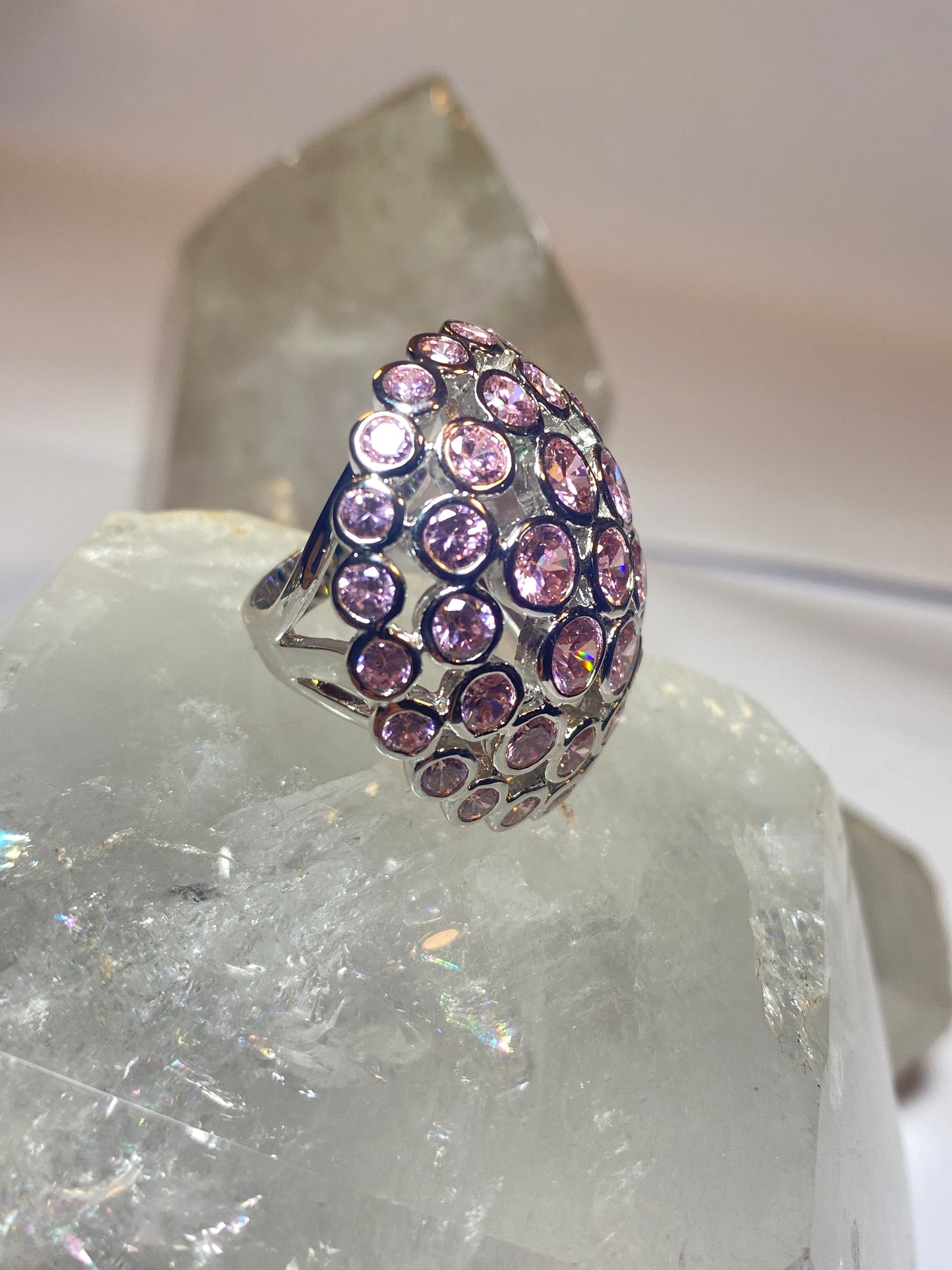 Dome ring size 6 pink ice cocktail sterling silver women girls