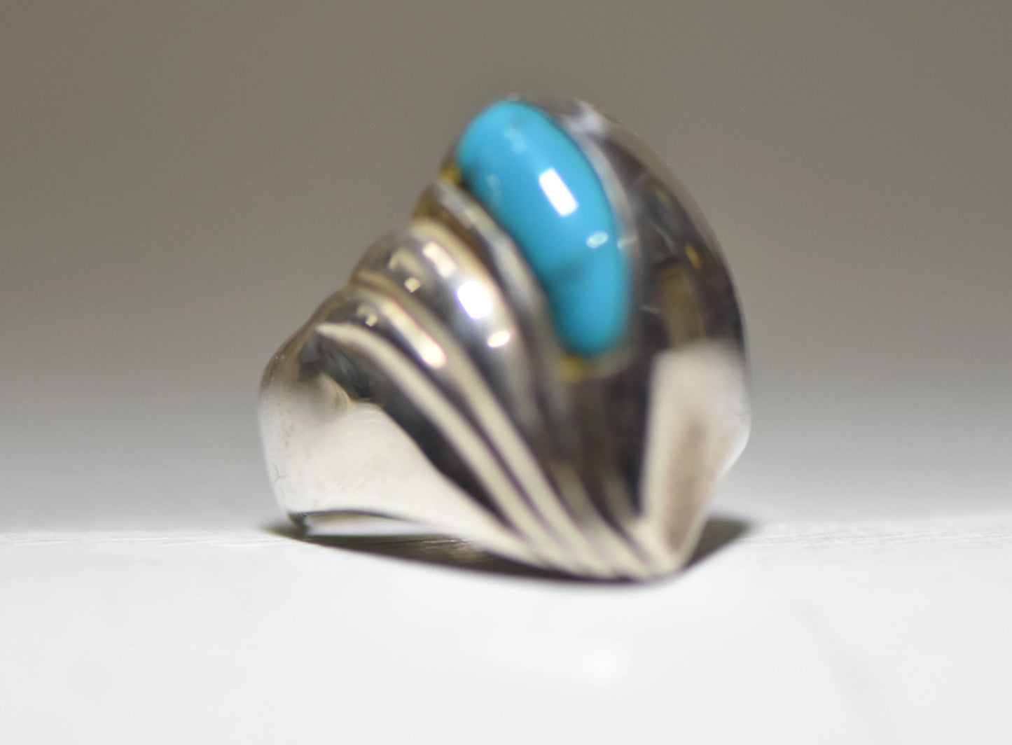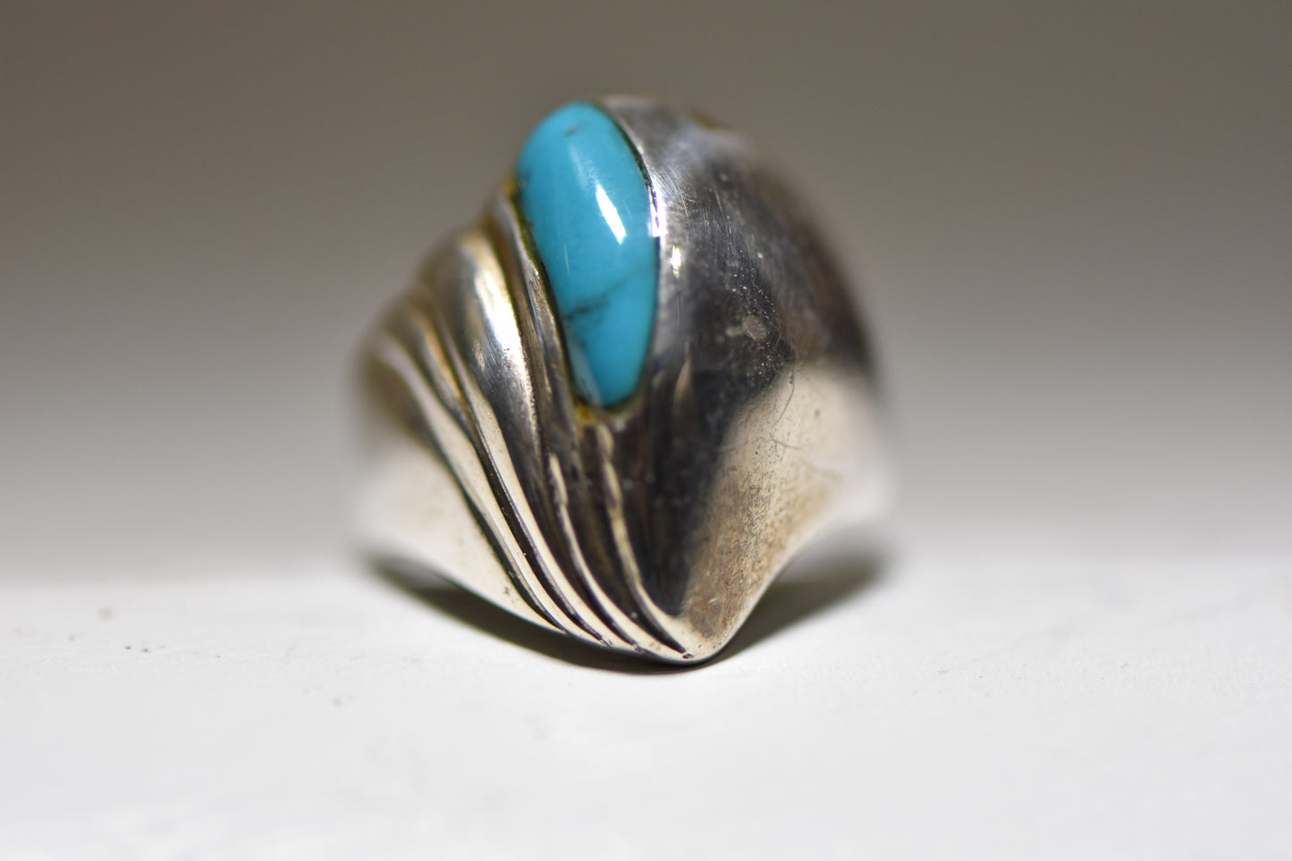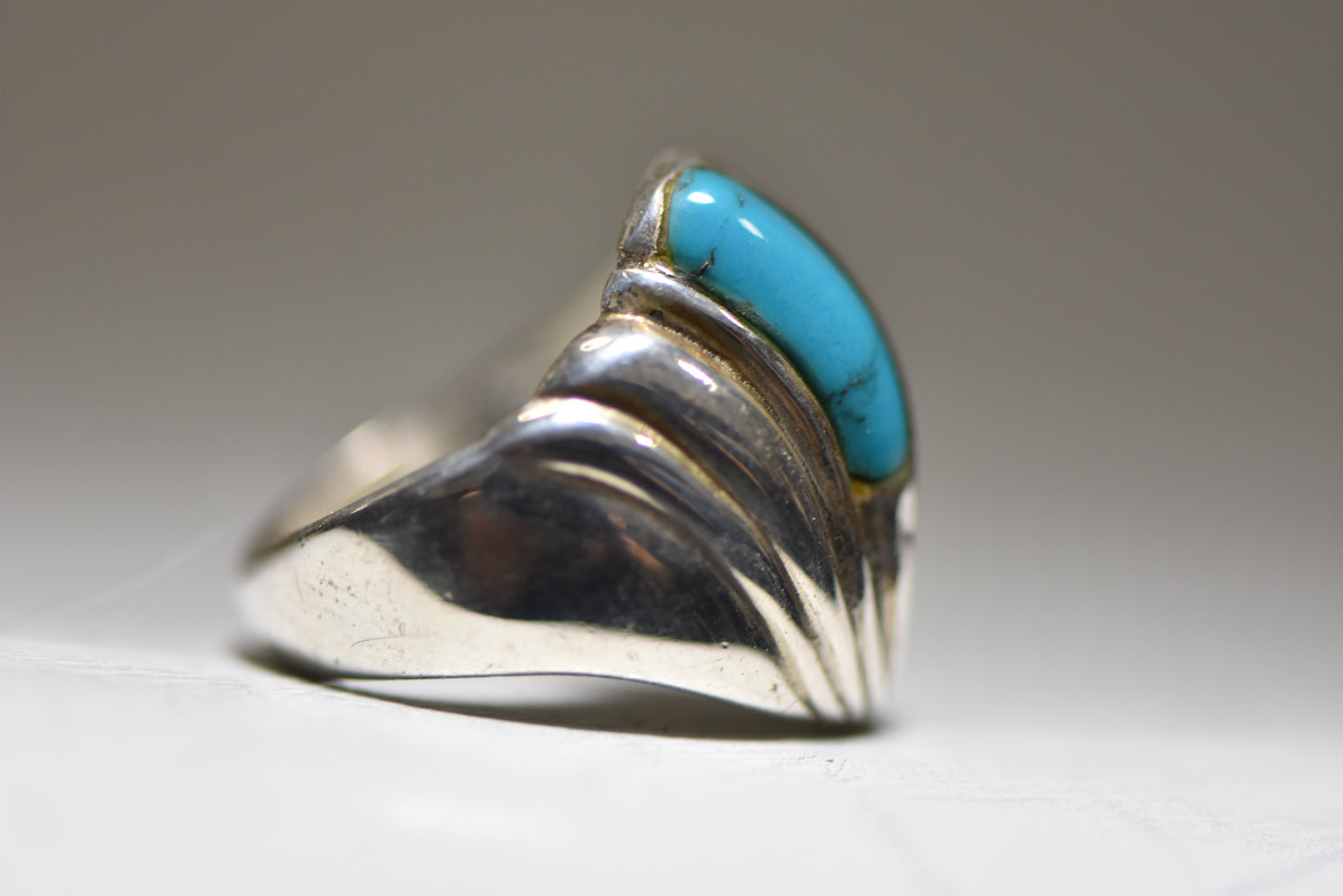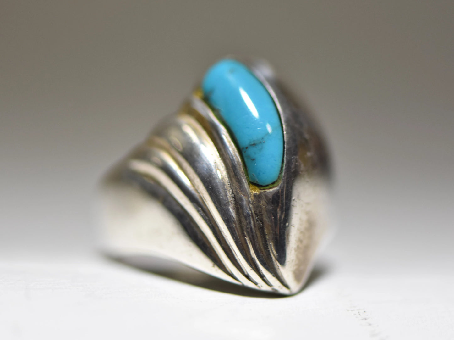 Dome ring turquoise swirl cigar band sterling silver vintage women