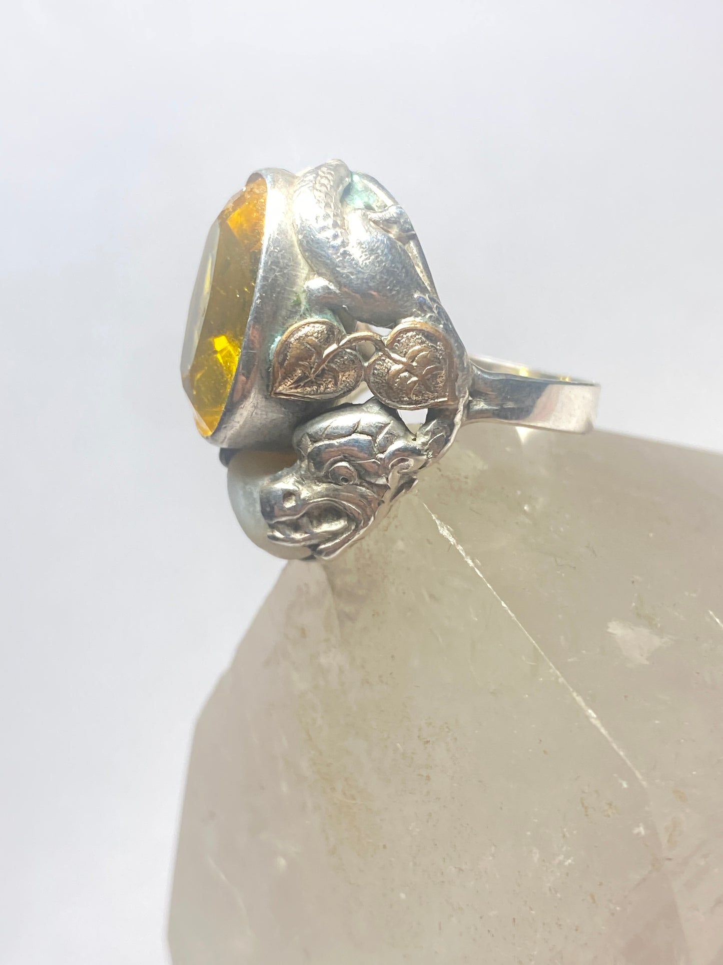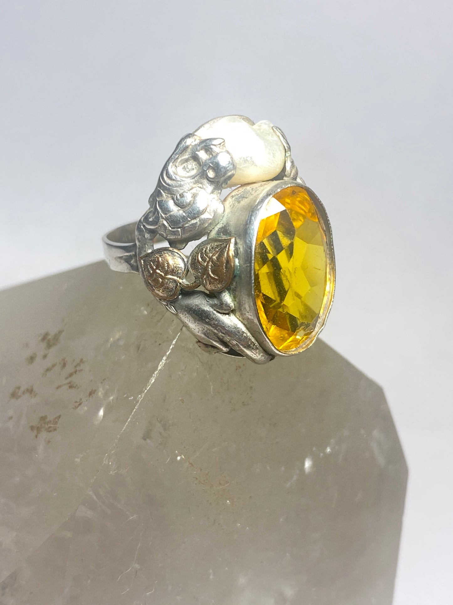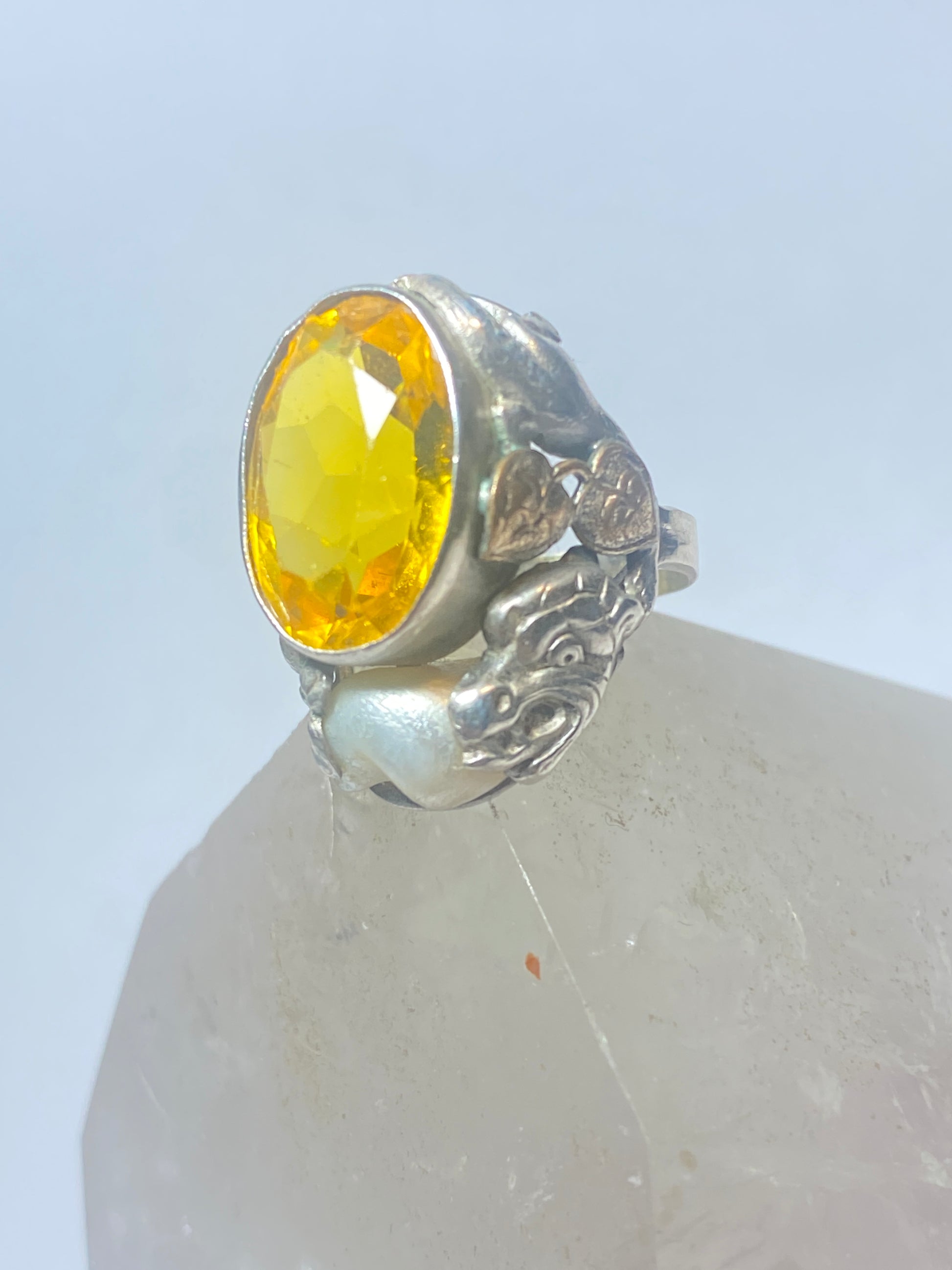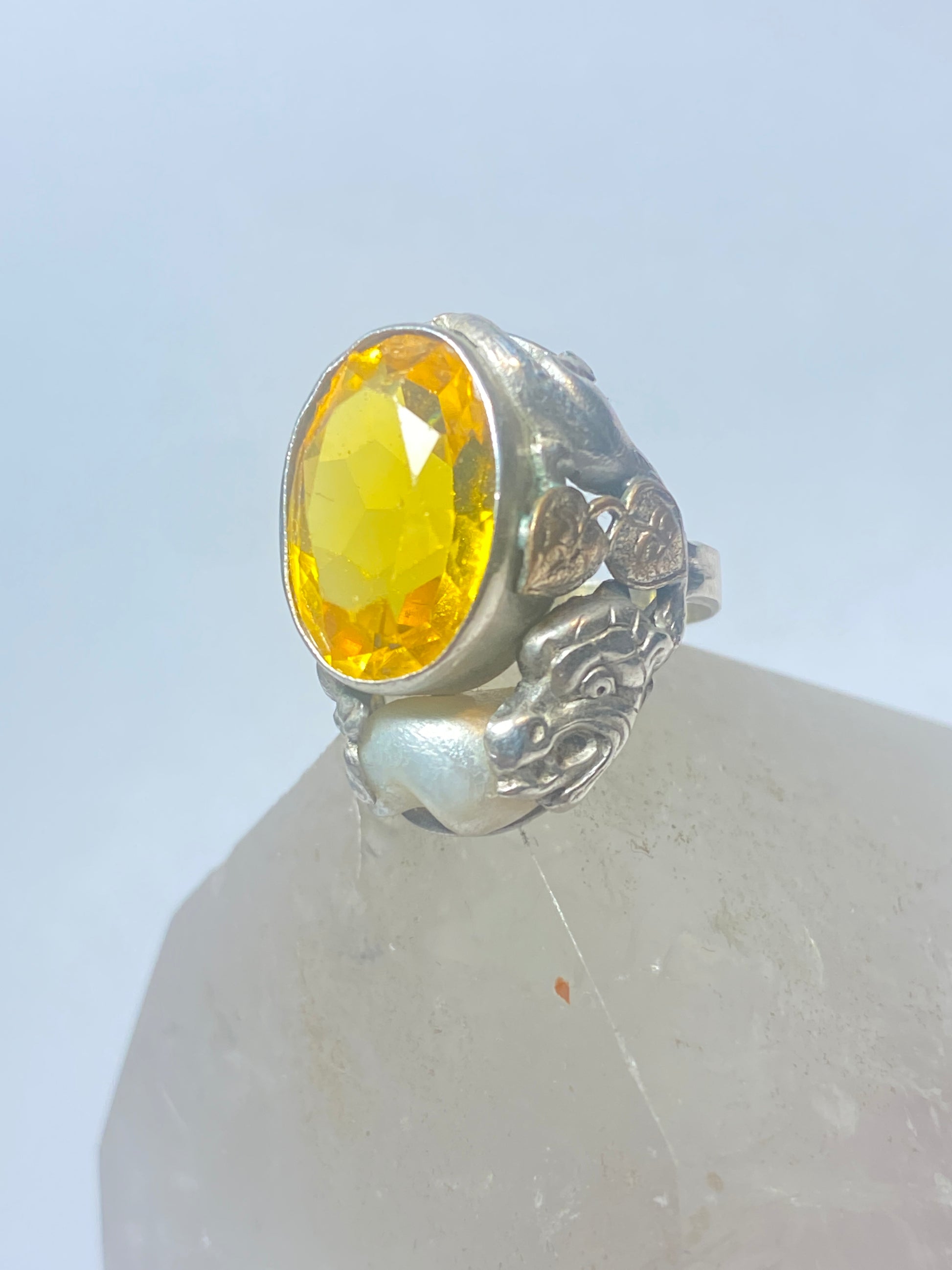 Dragon ring leaves floral Art Deco arts & Crafts pearl pinky sterling silver women girls