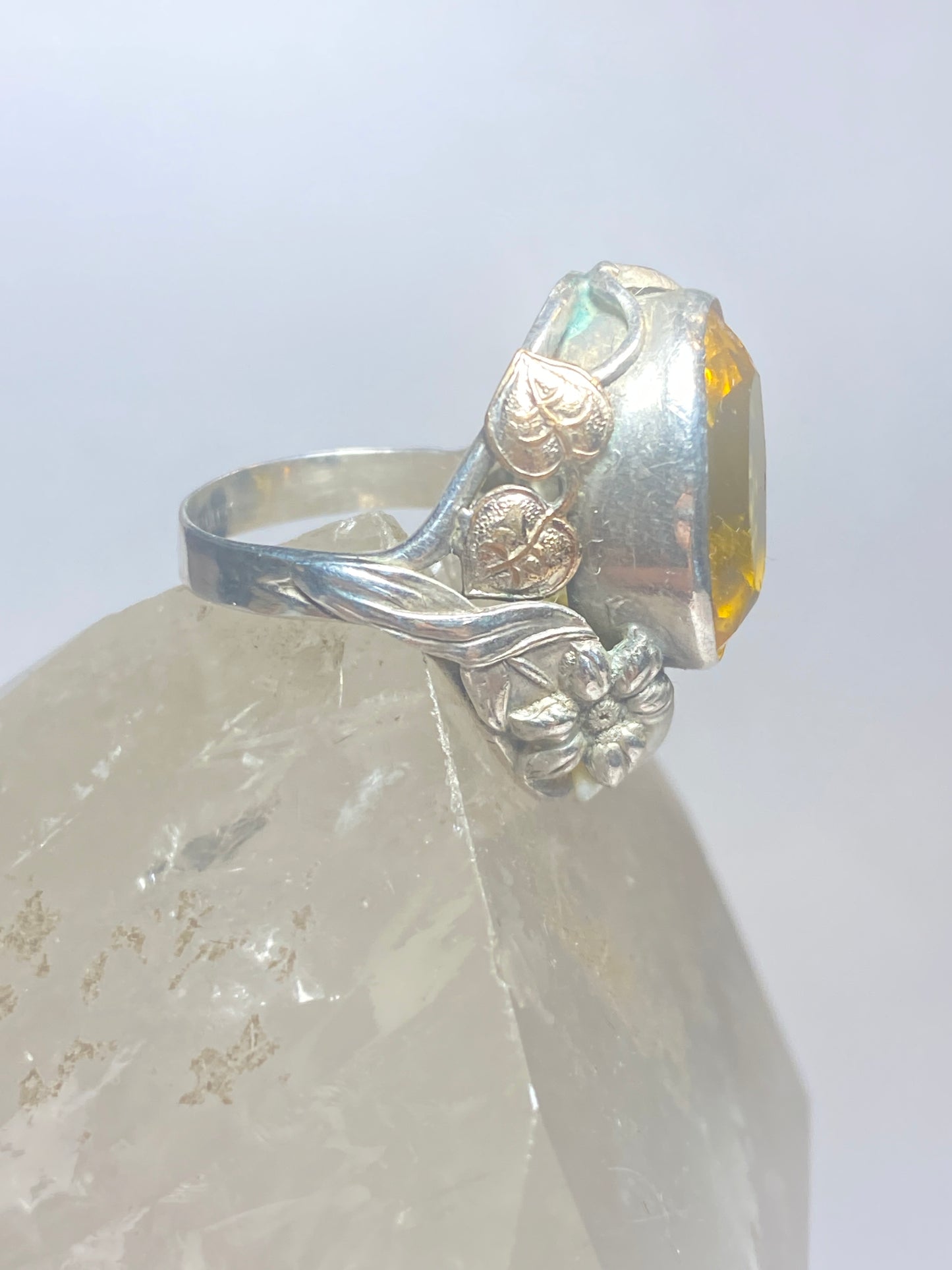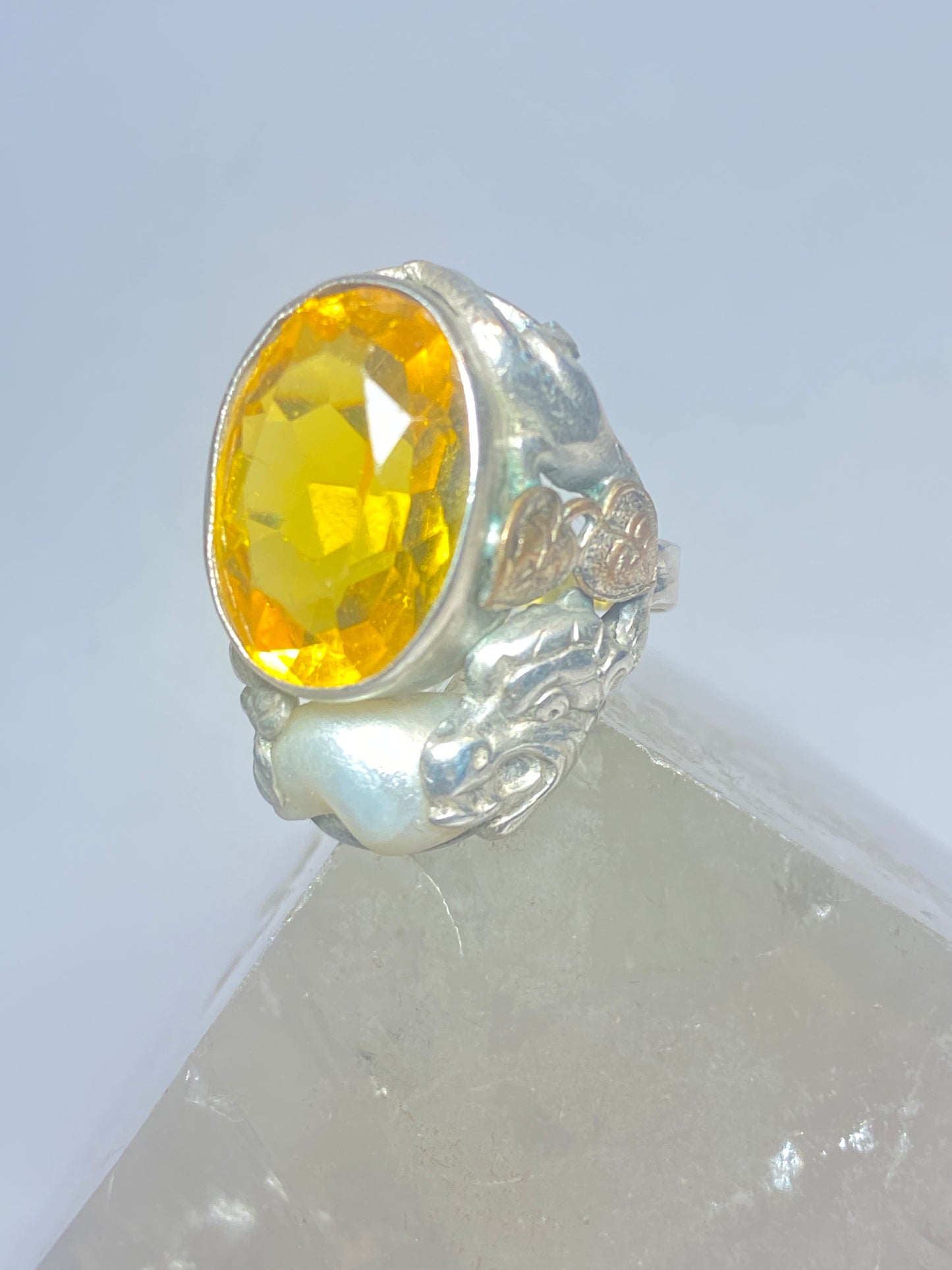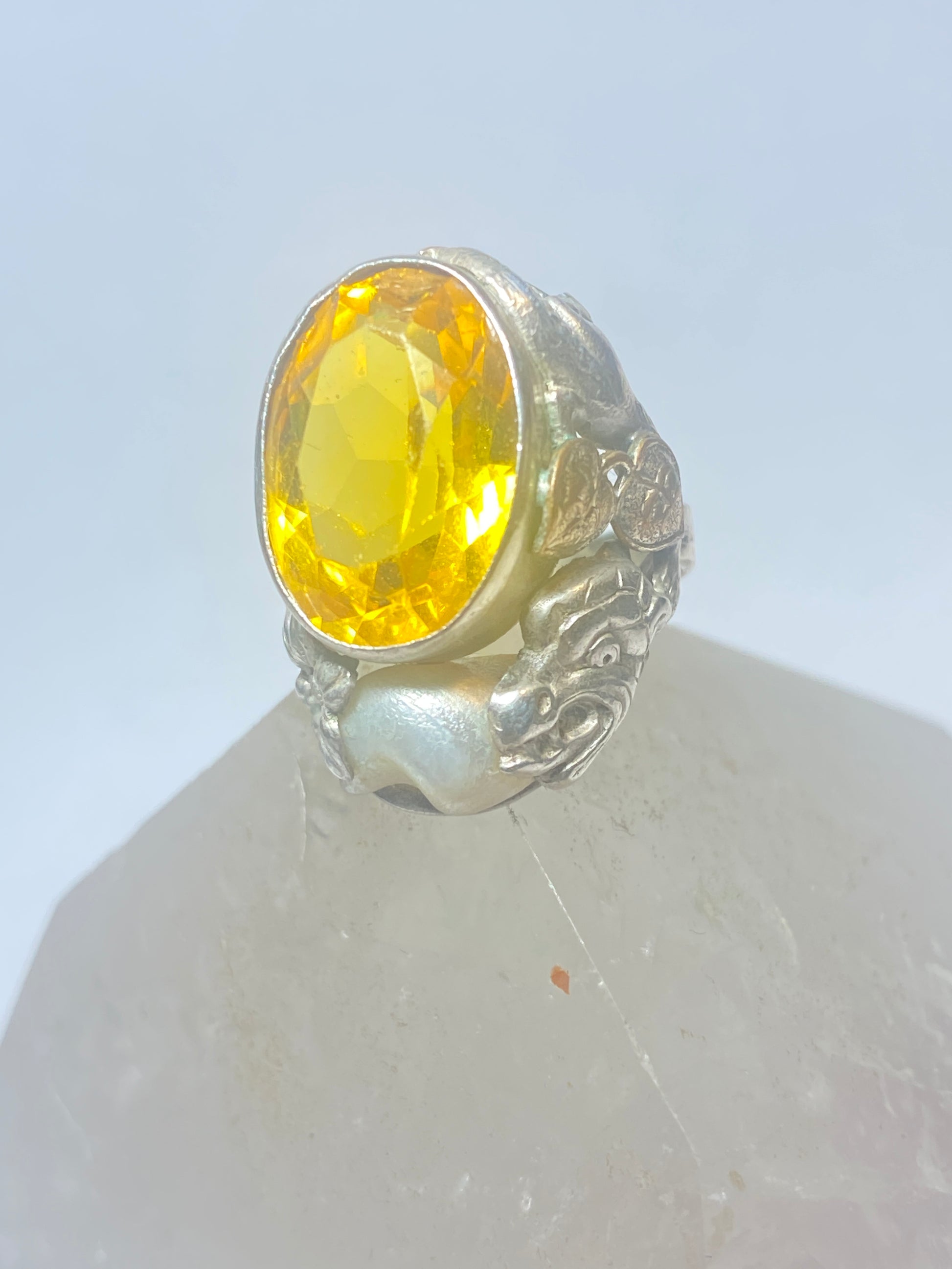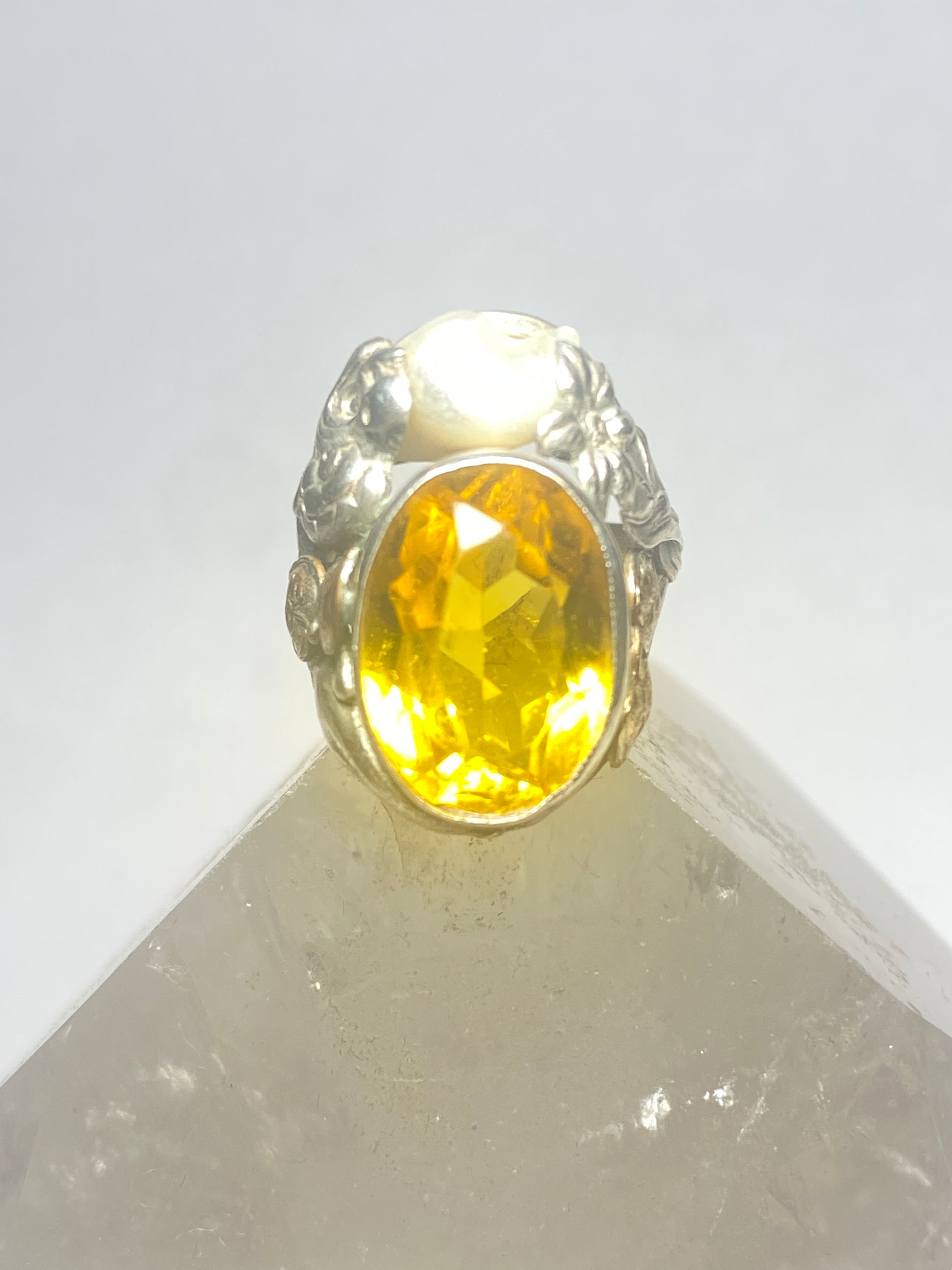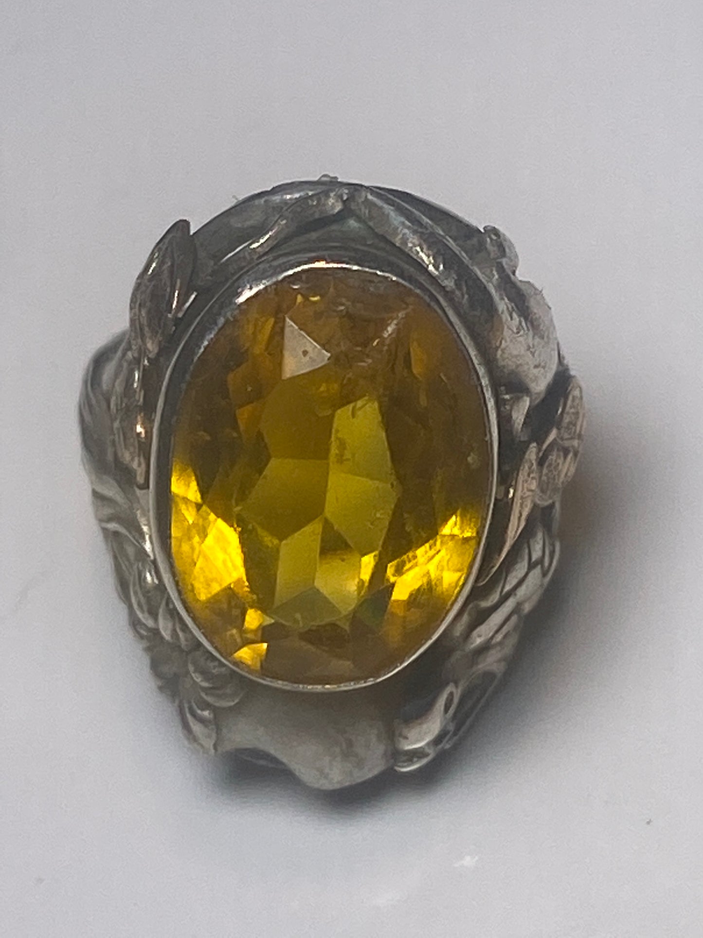 Dragon ring leaves floral Art Deco arts & Crafts pearl pinky sterling silver women girls