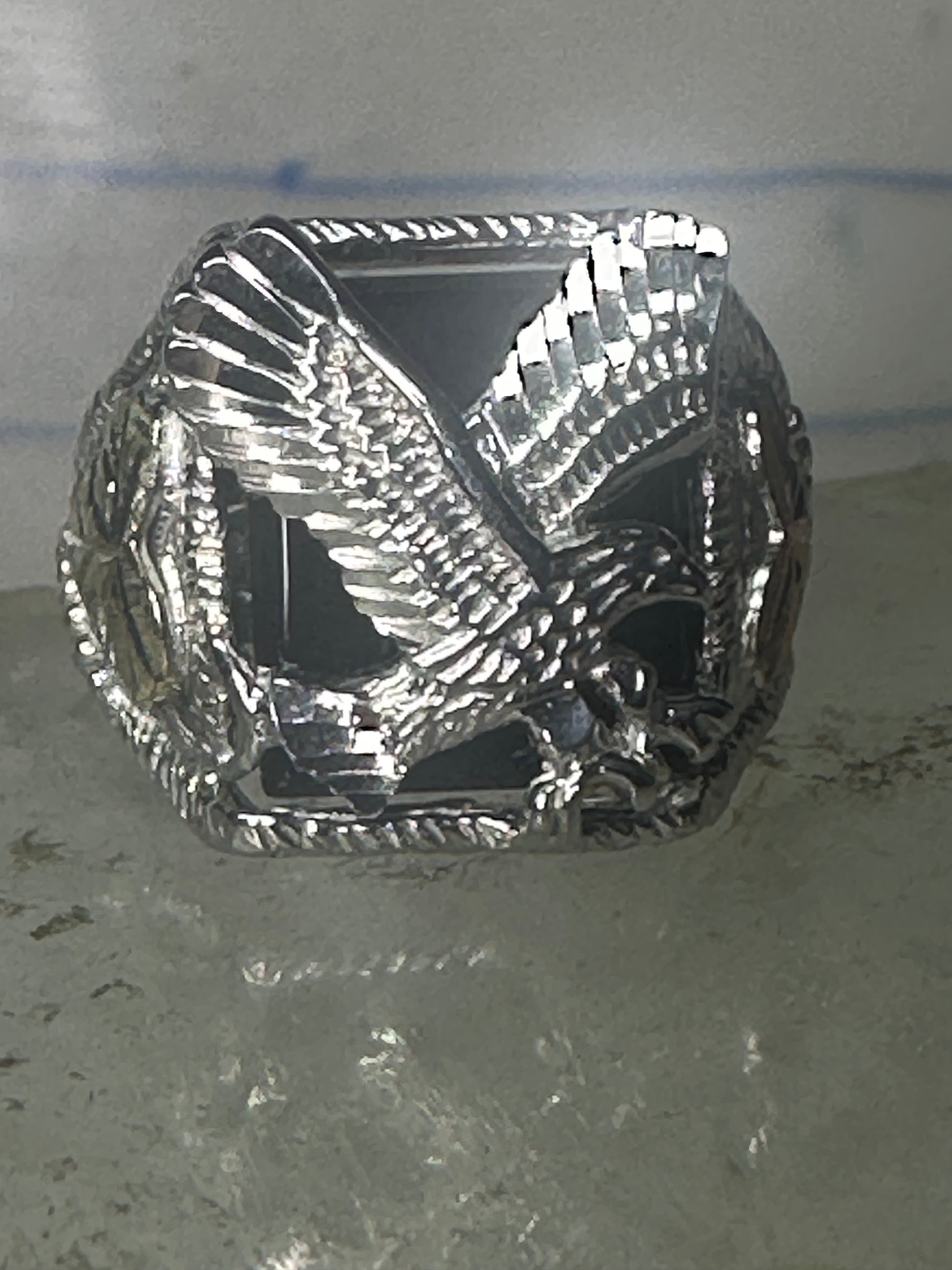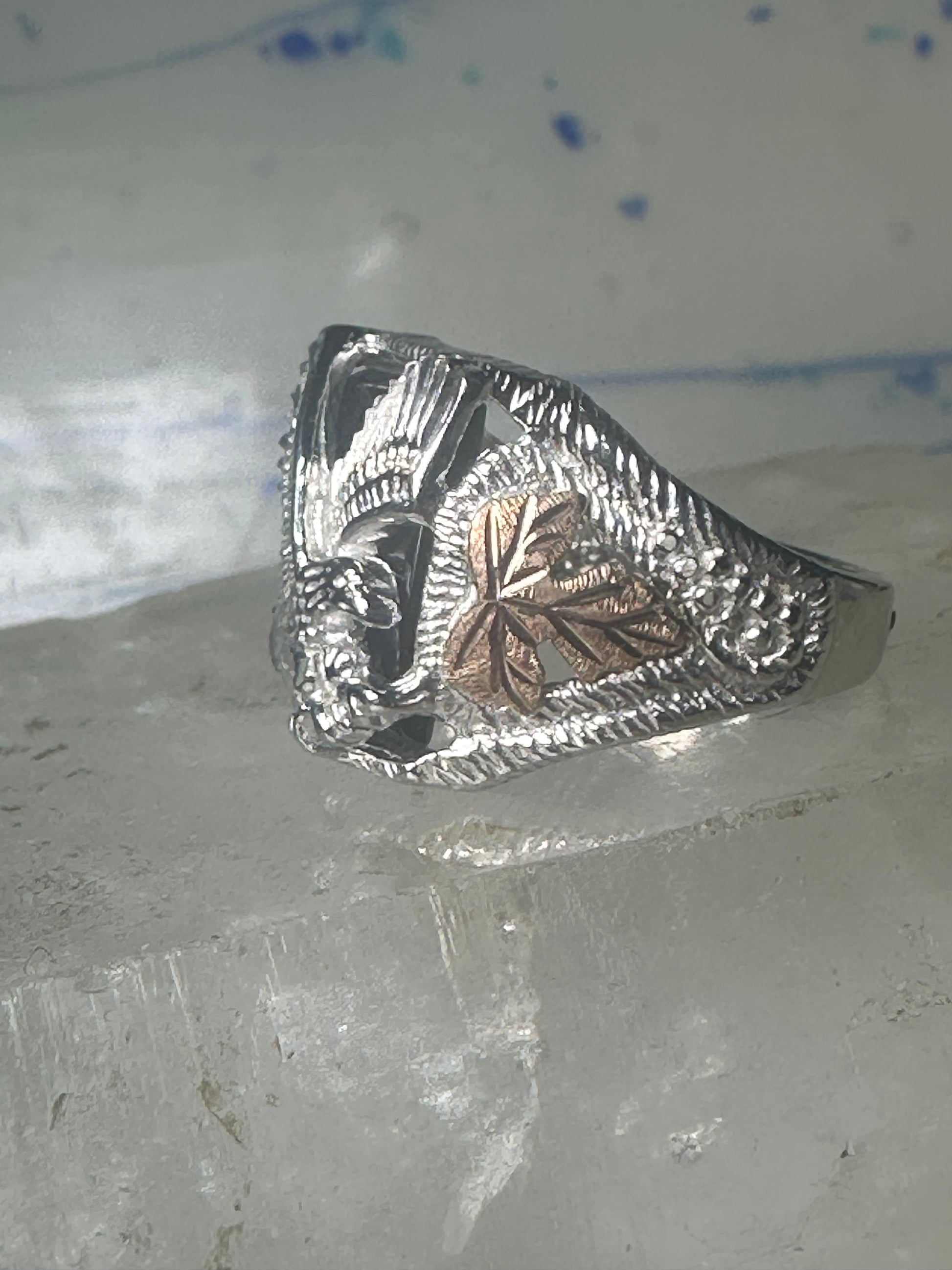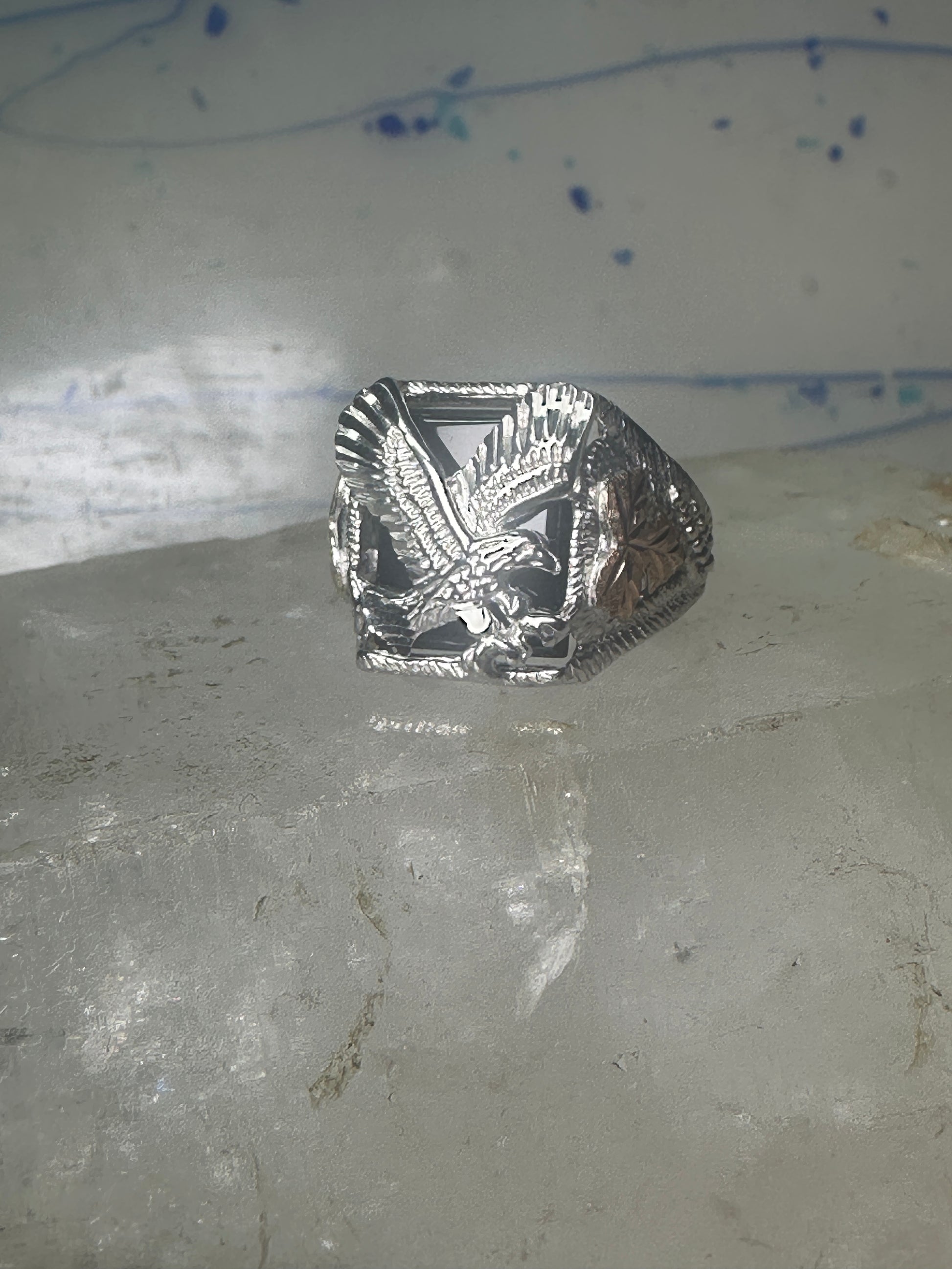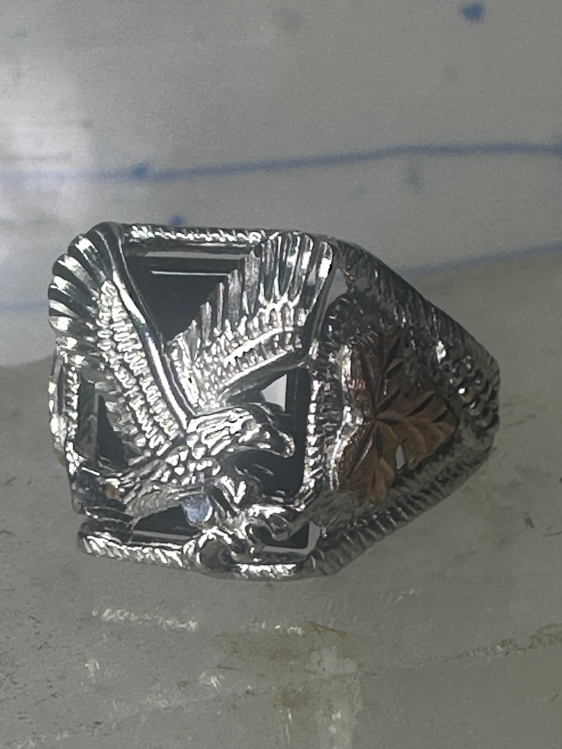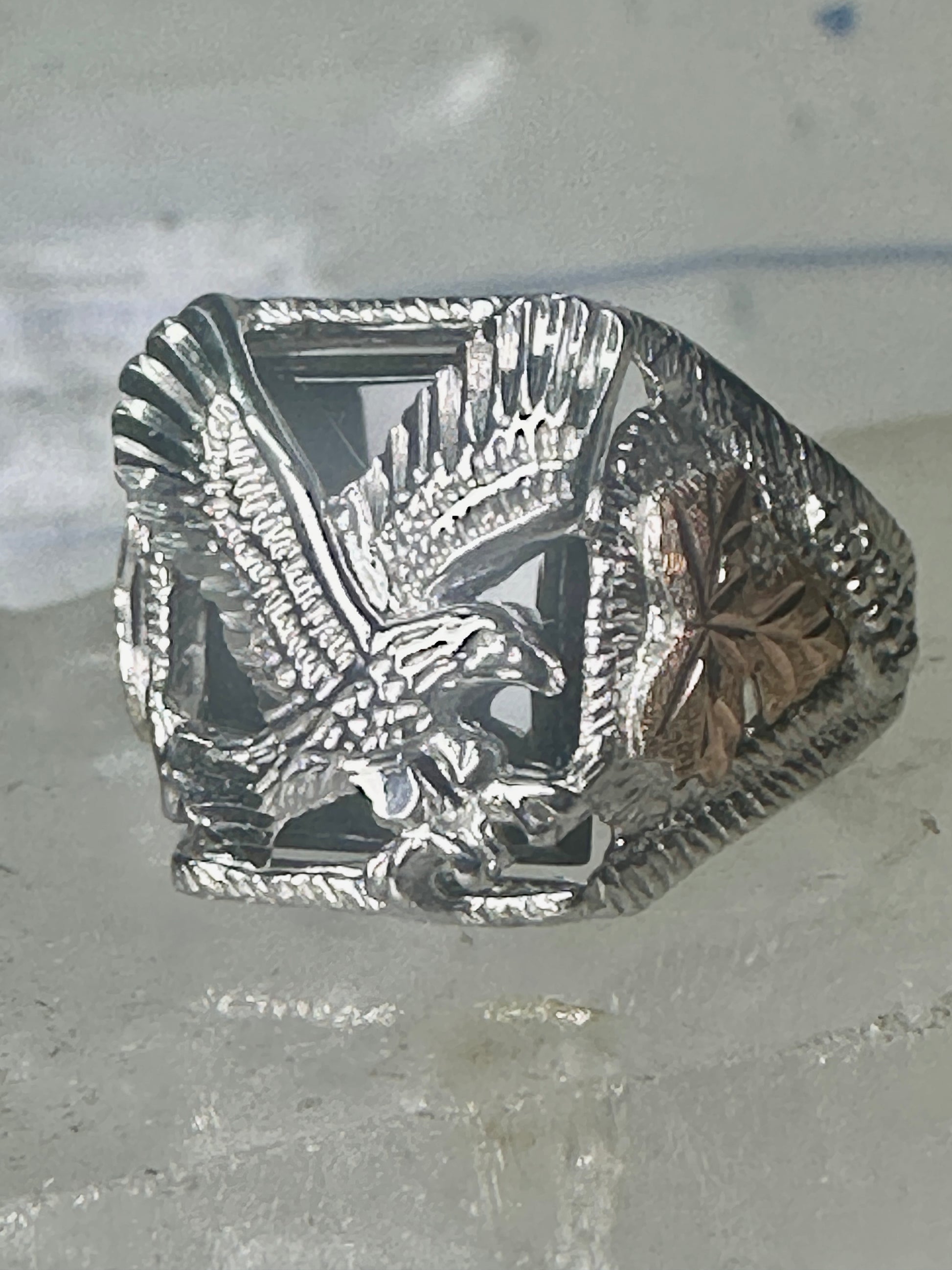 Eagle ring Black Hills Gold onyx band sterling silver women men