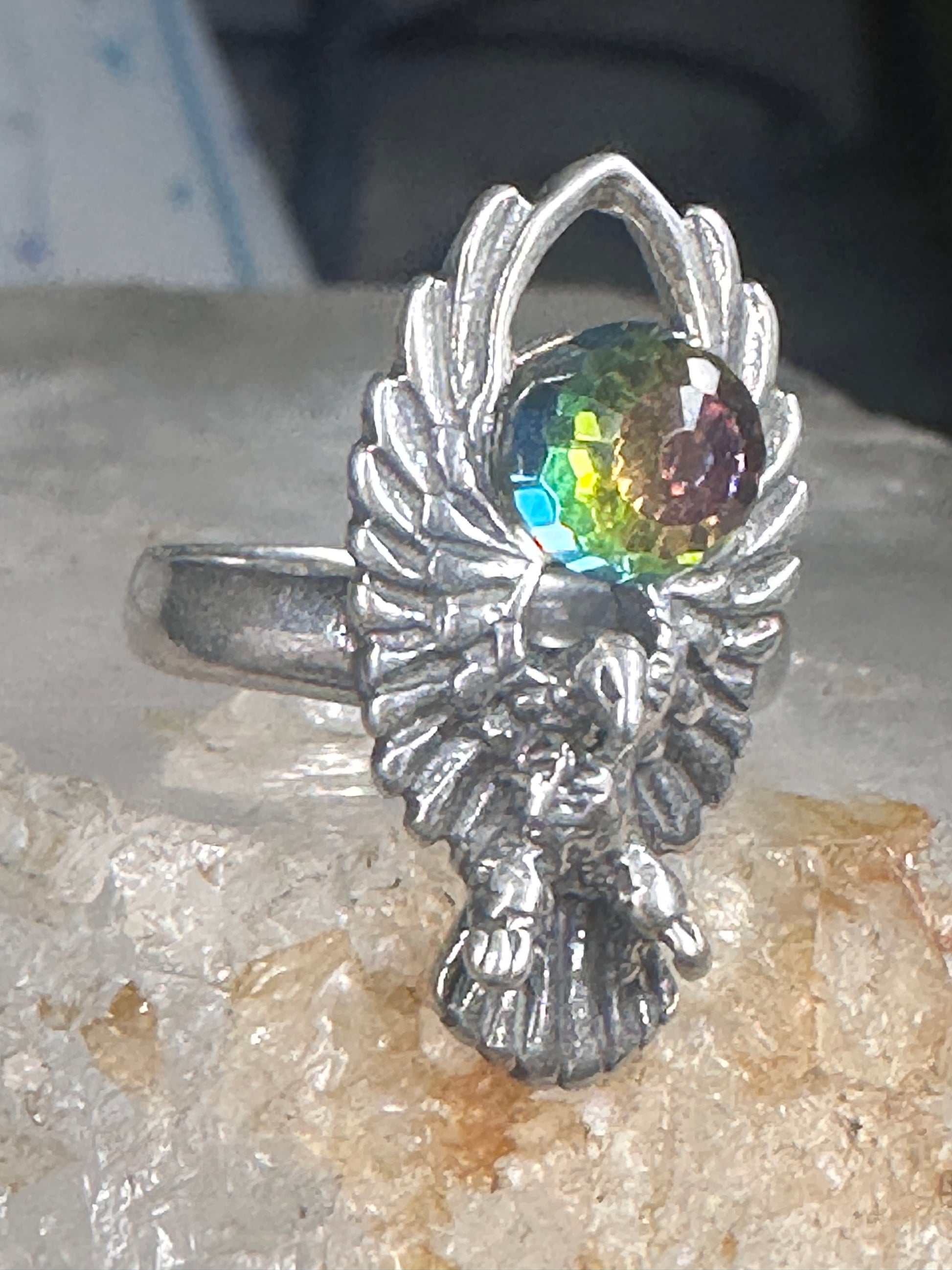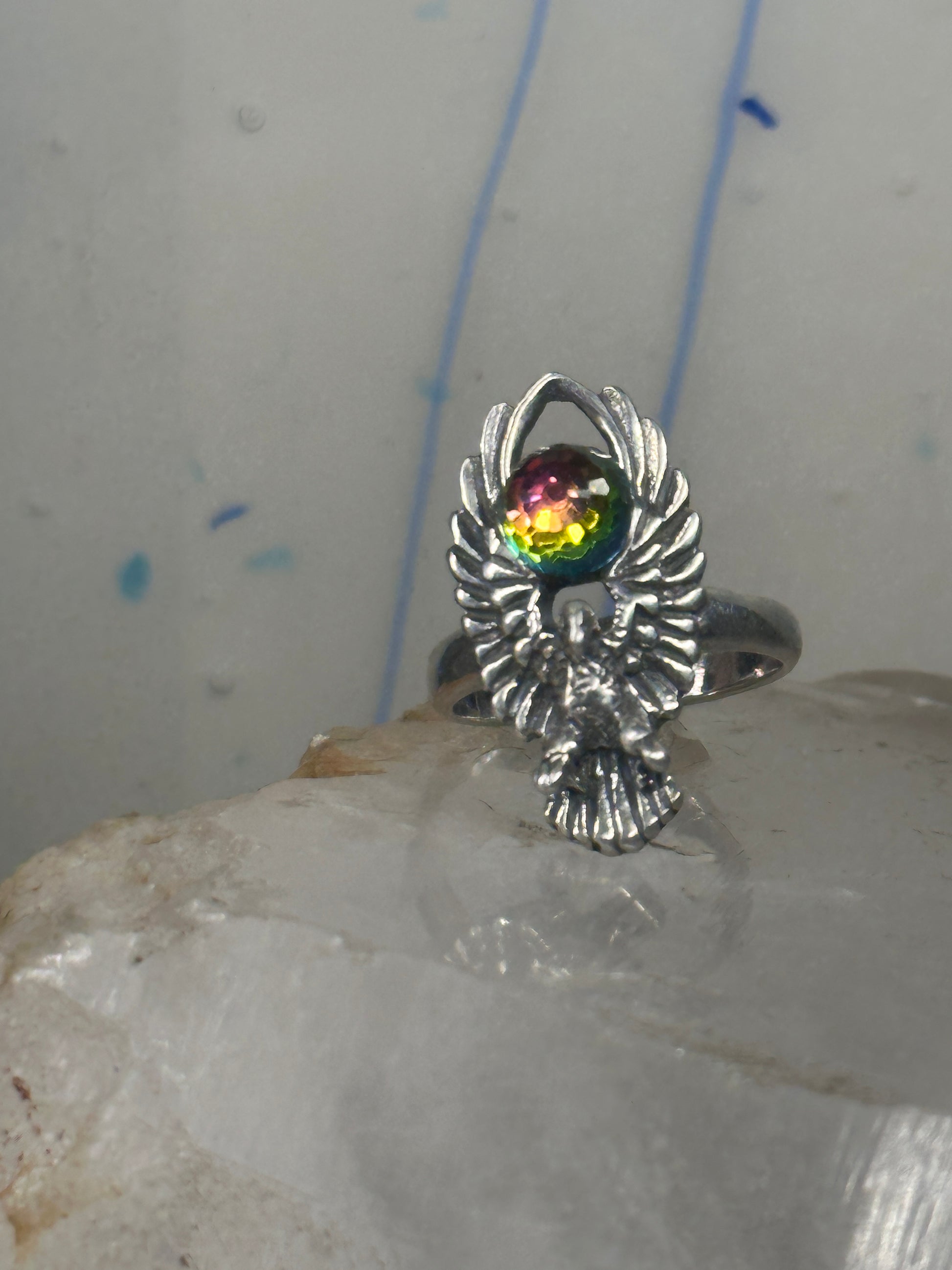 Eagle ring Rainbow Crystal prism orb by Shube size 4.50 pinky sterling silver band