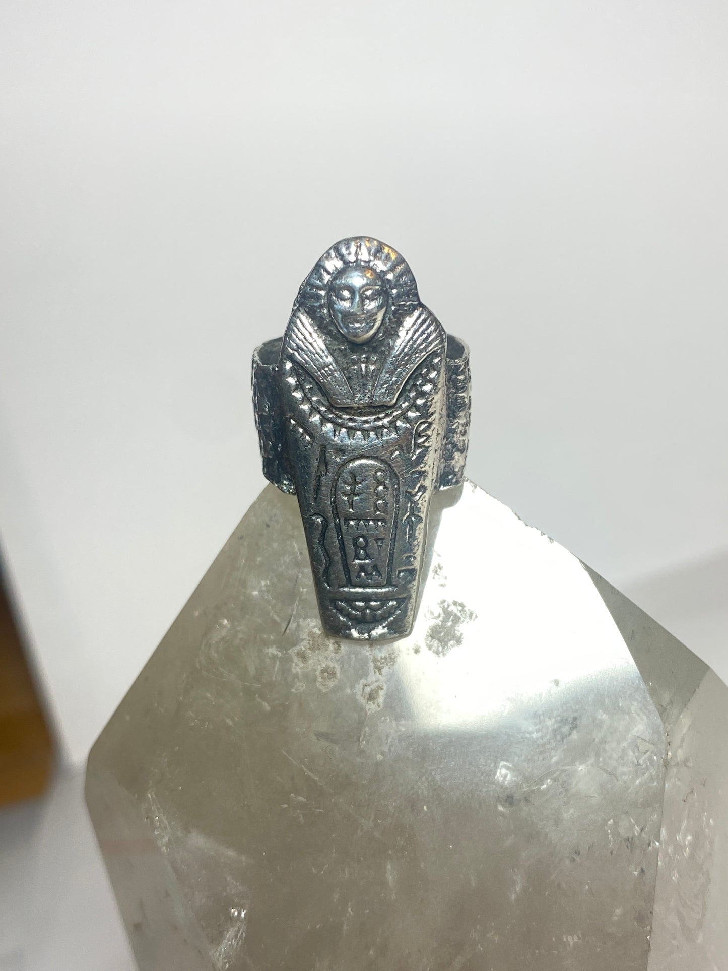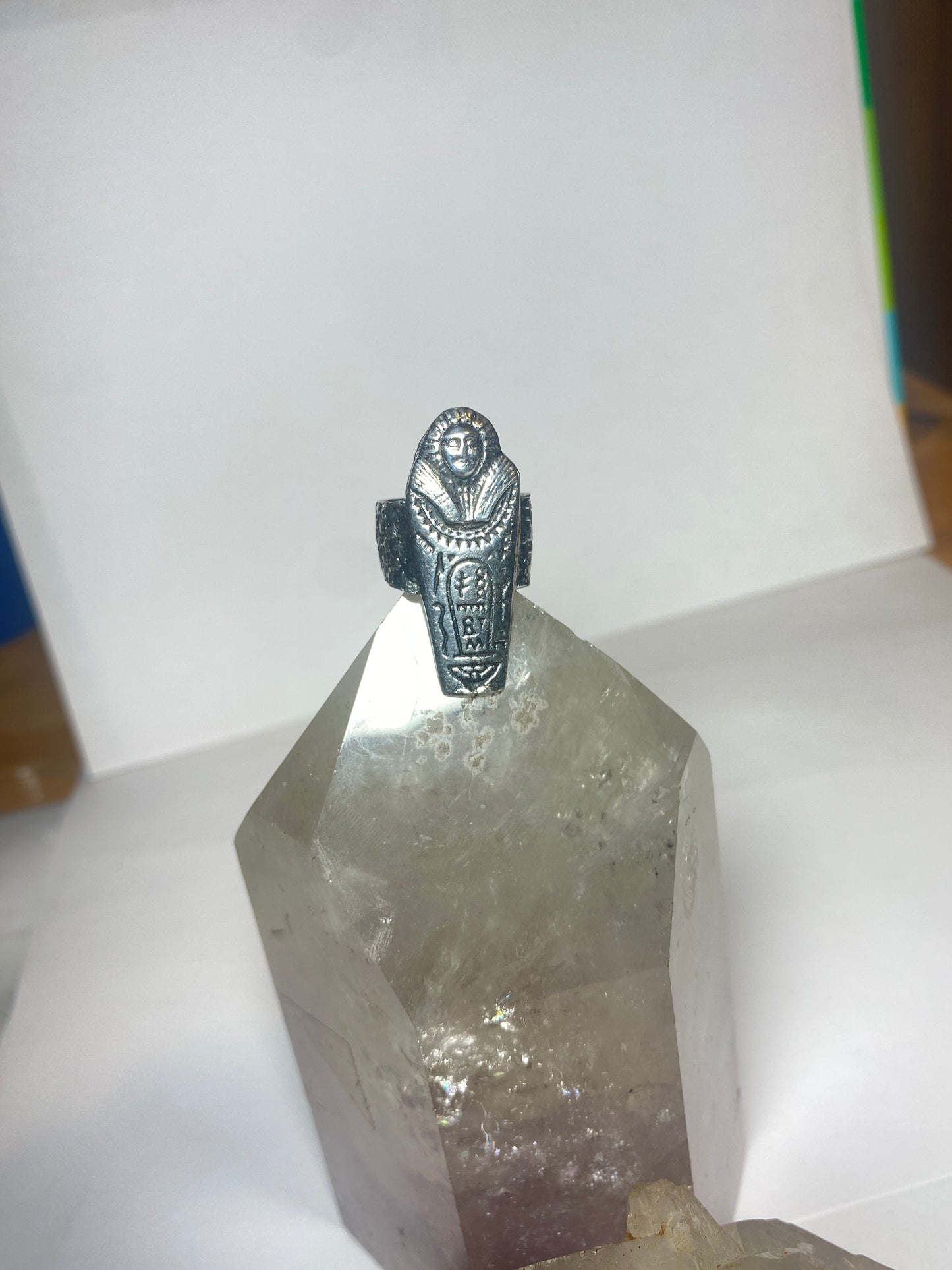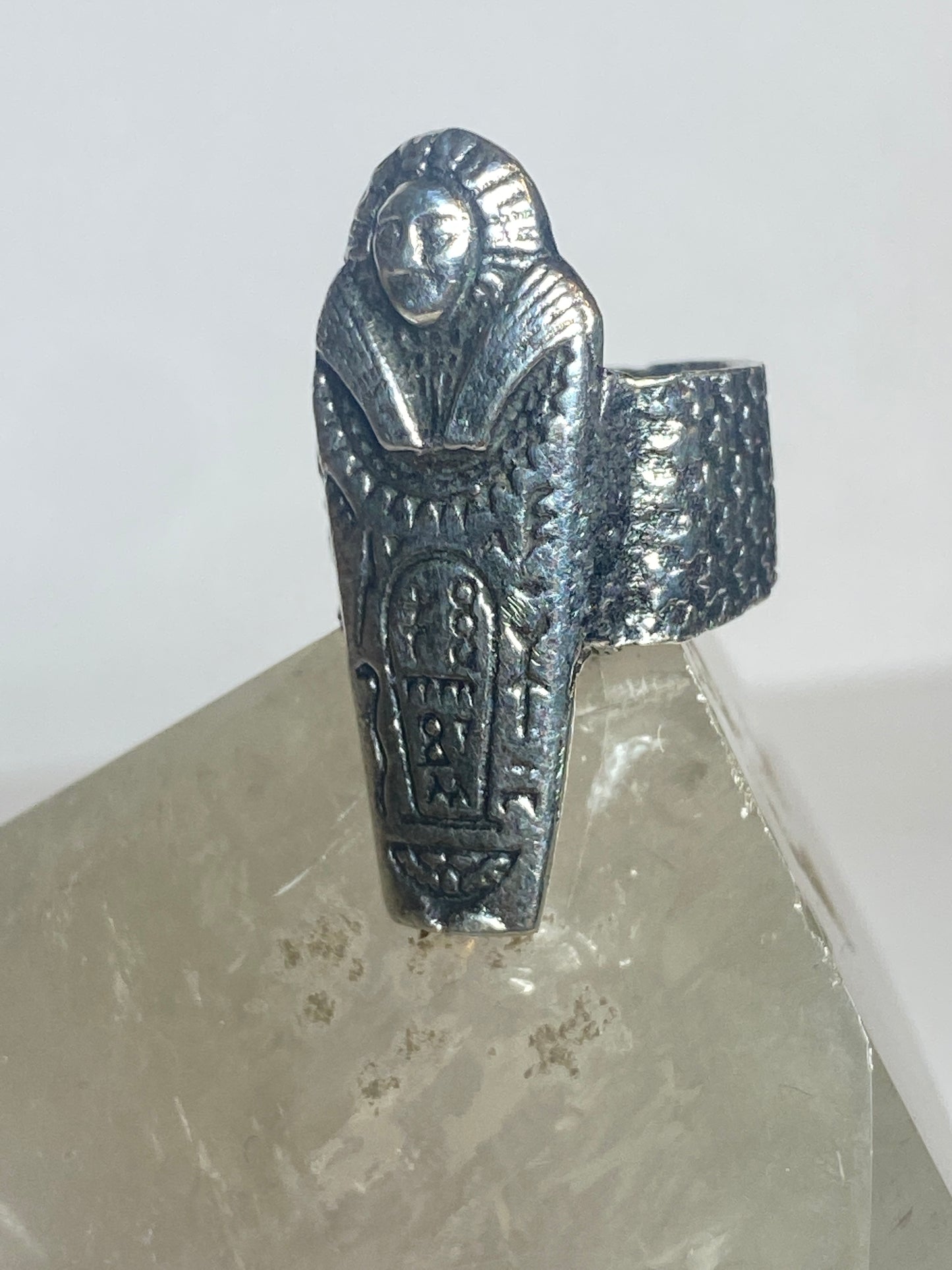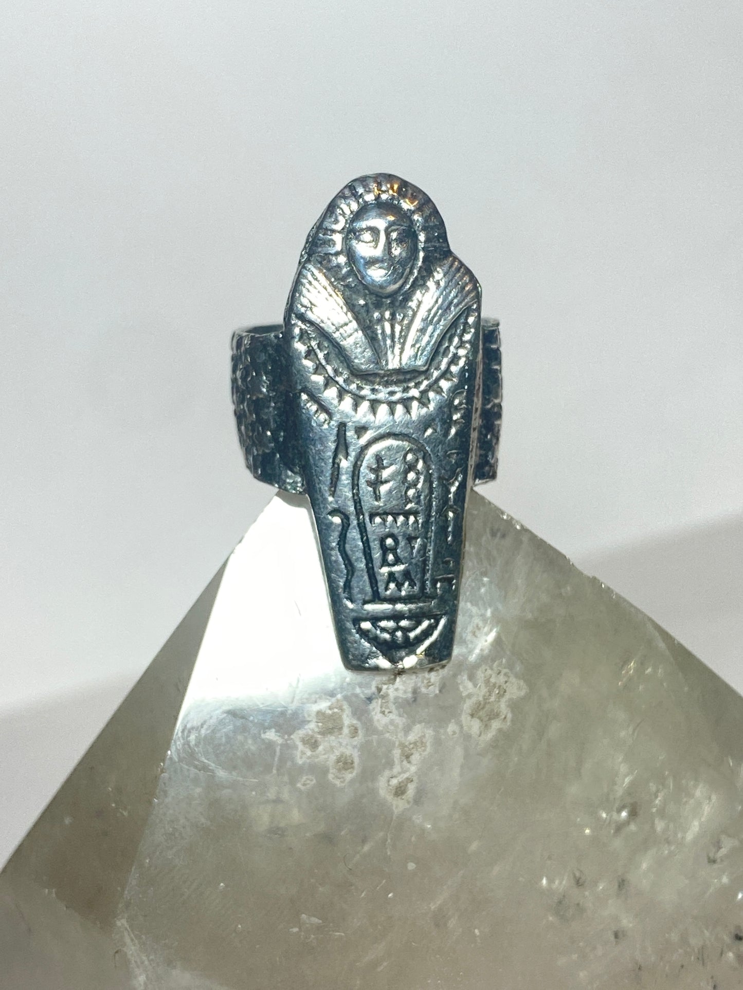 Egyptian ring mummy band pharaoh stars celestial sterling silver band women