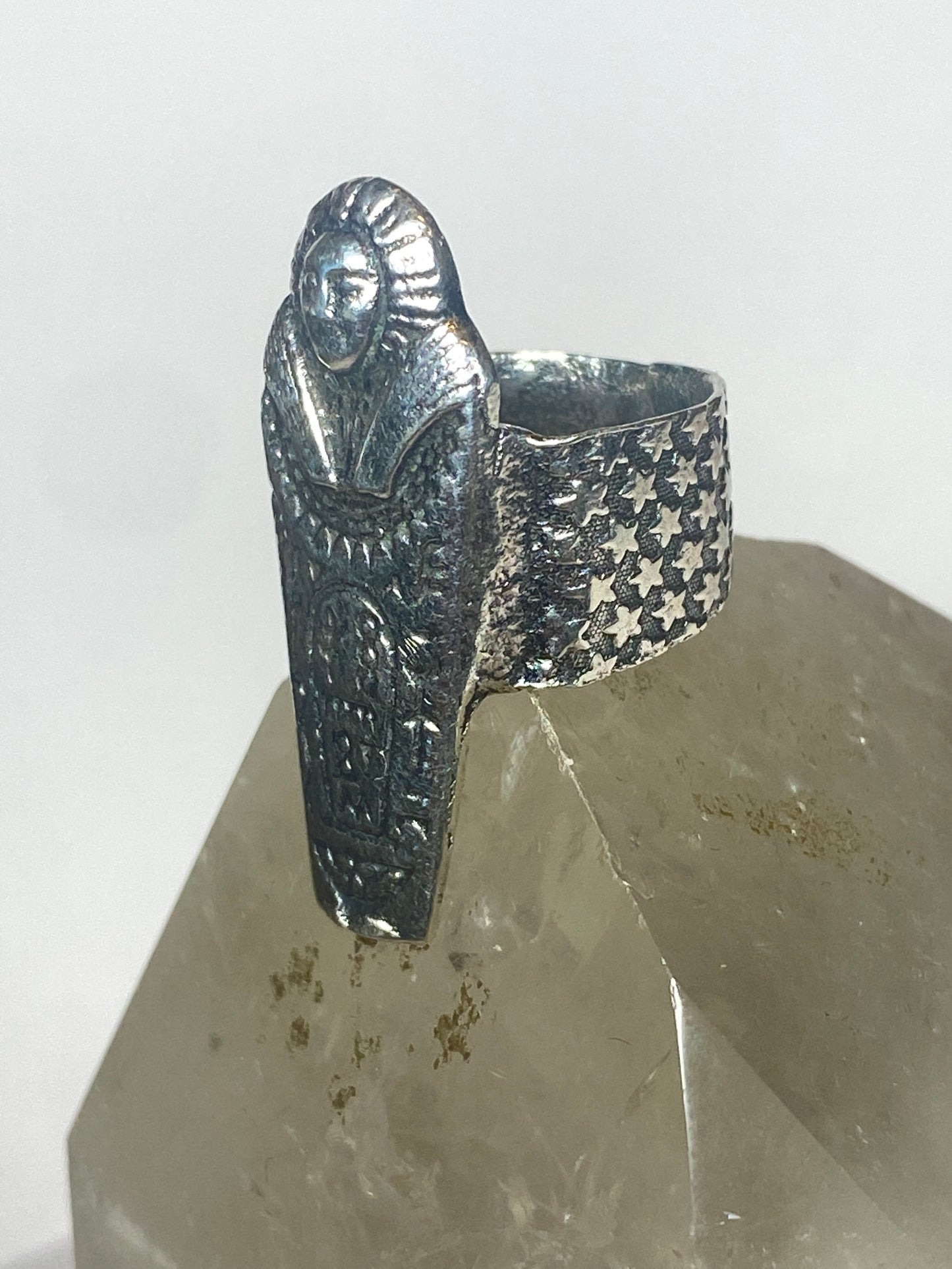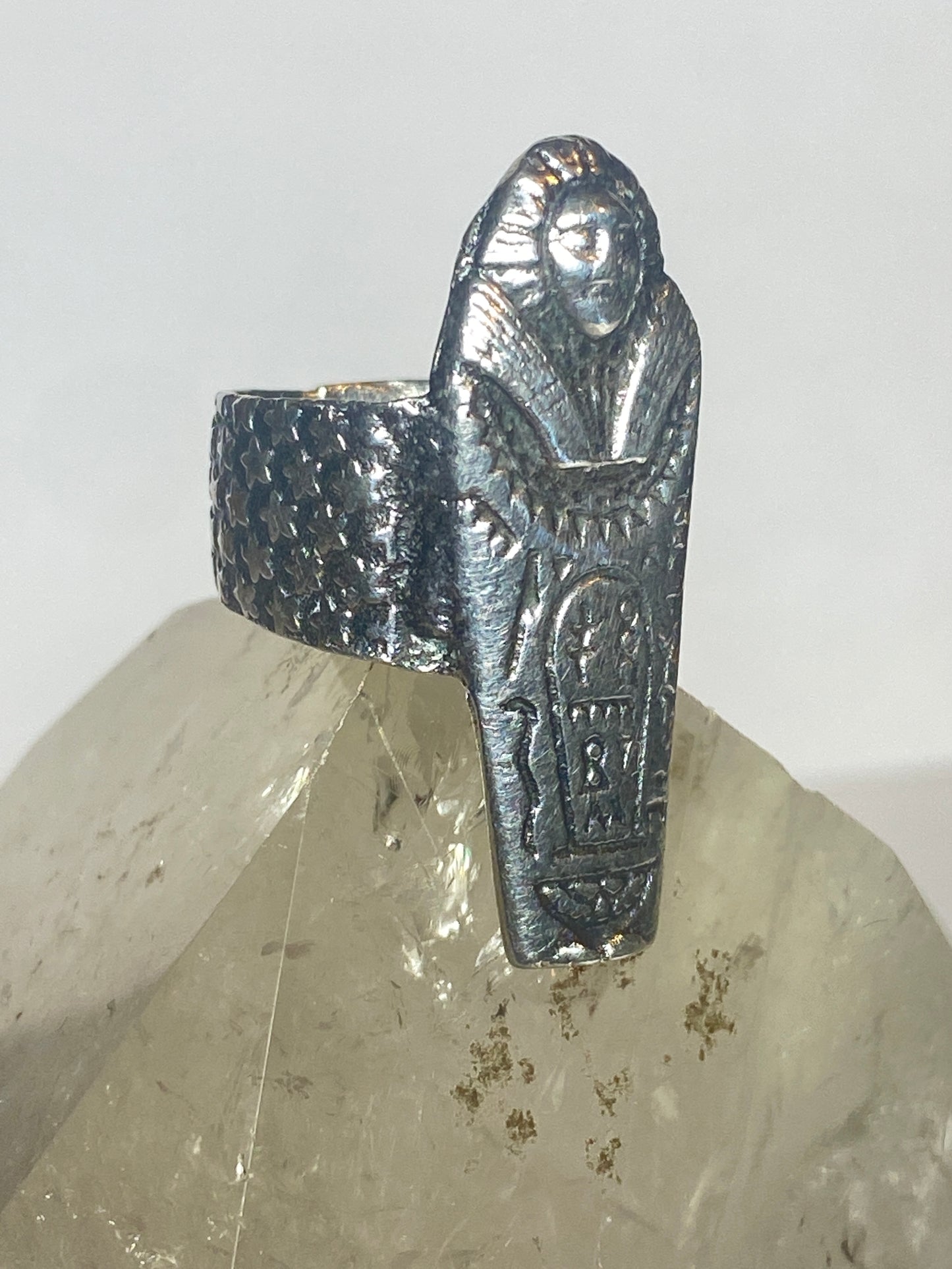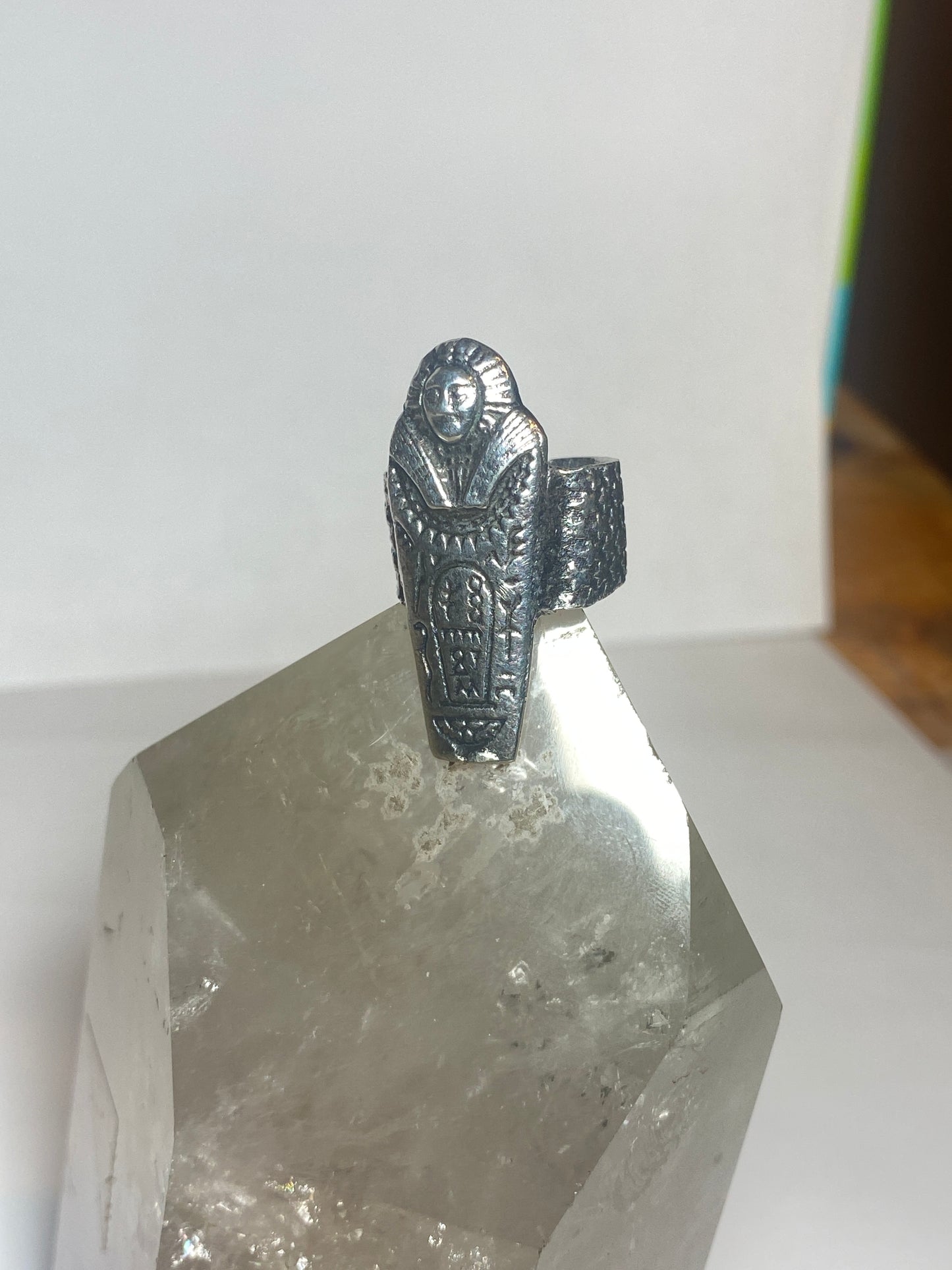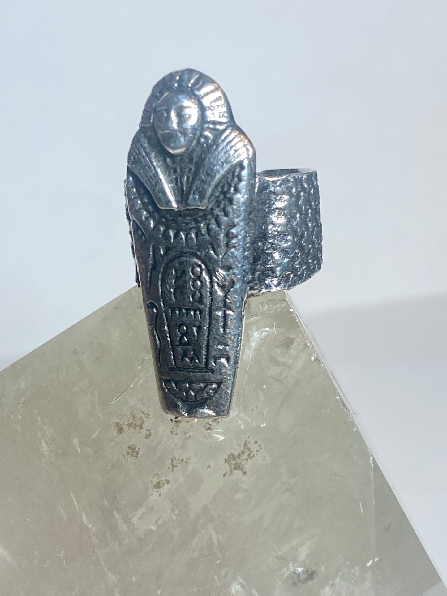 Egyptian ring mummy band pharaoh stars celestial sterling silver band women