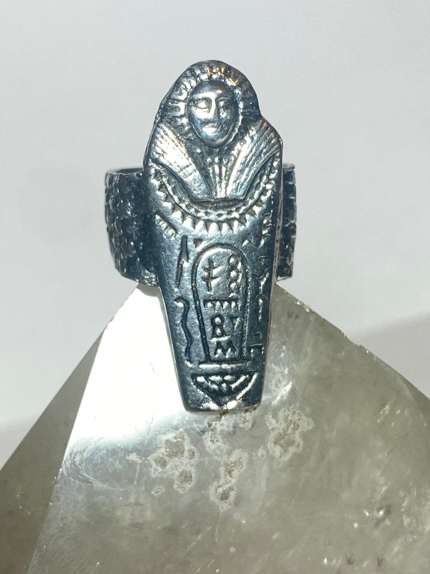 Egyptian ring mummy band stars hieroglyphics celestial sterling silver band women