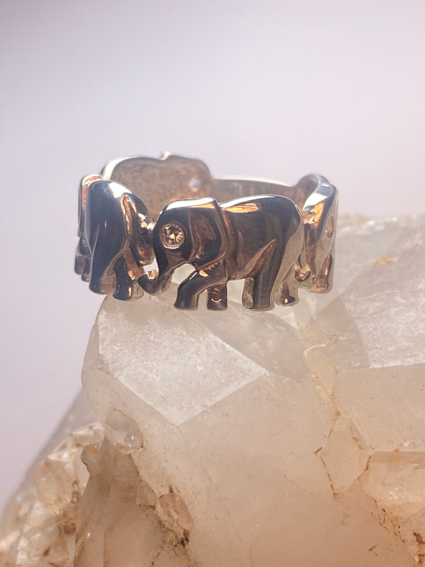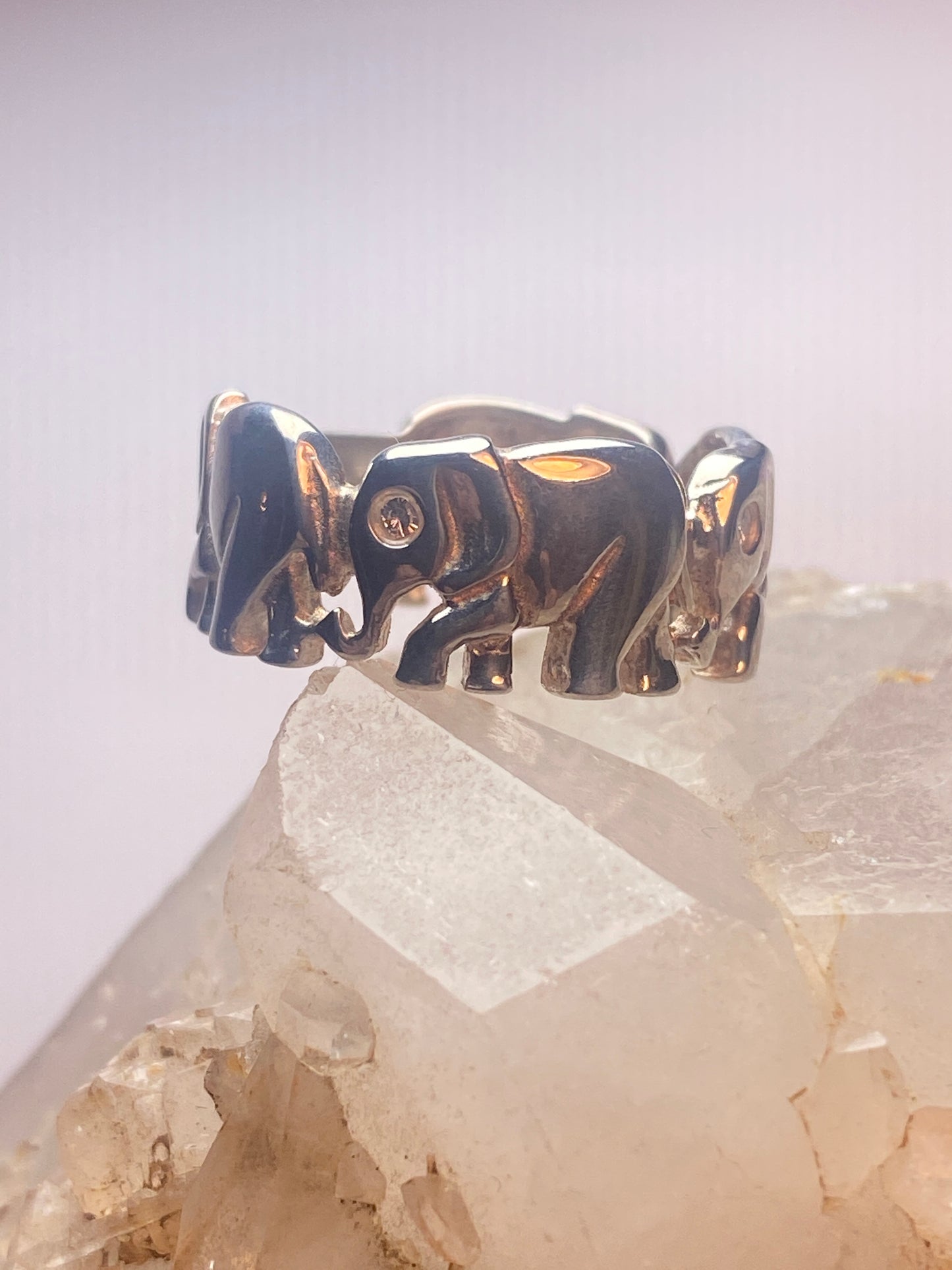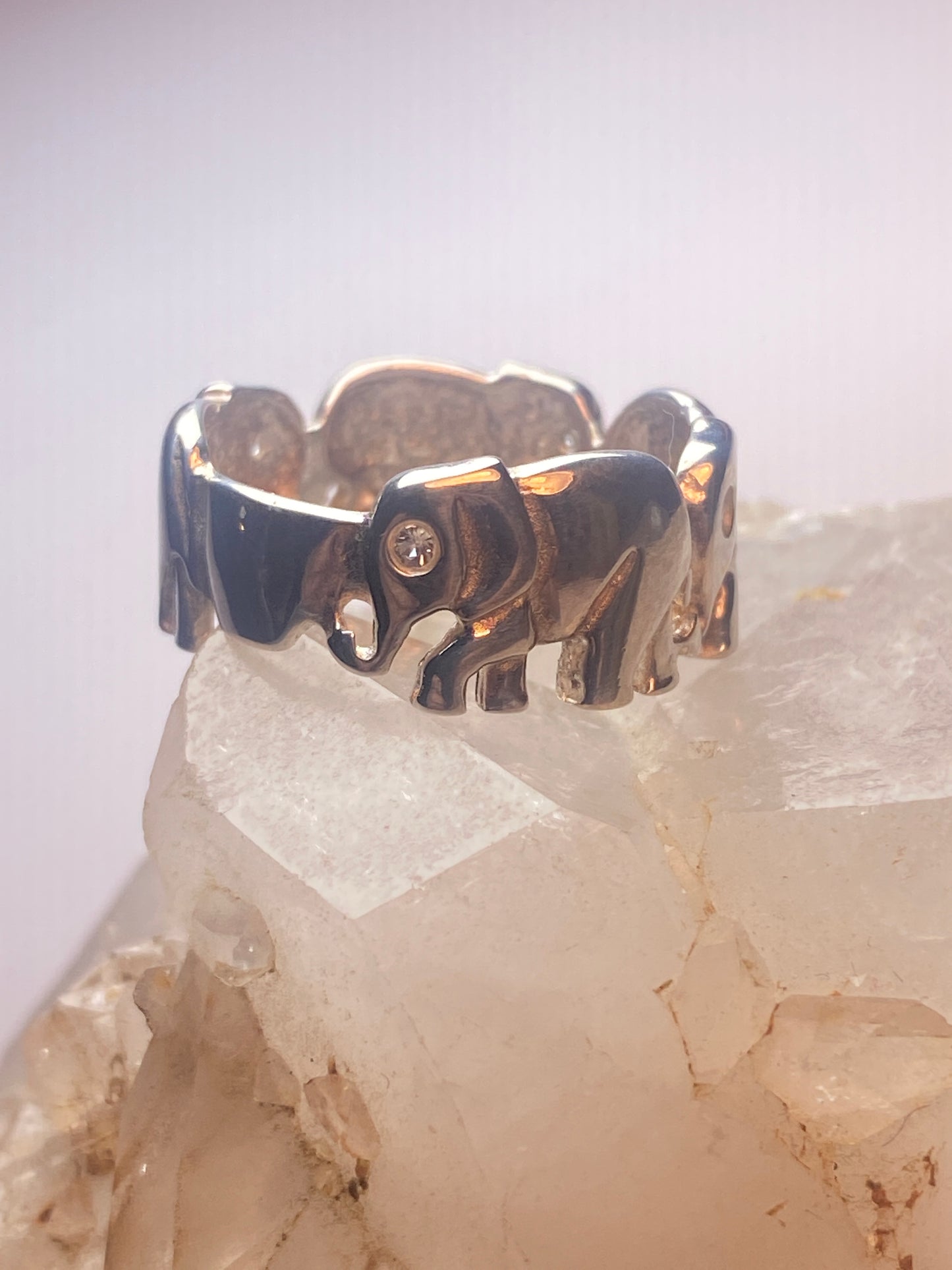 Elephant ring size 5.50 elephants band pinky crystal eyes sterling silver women girls