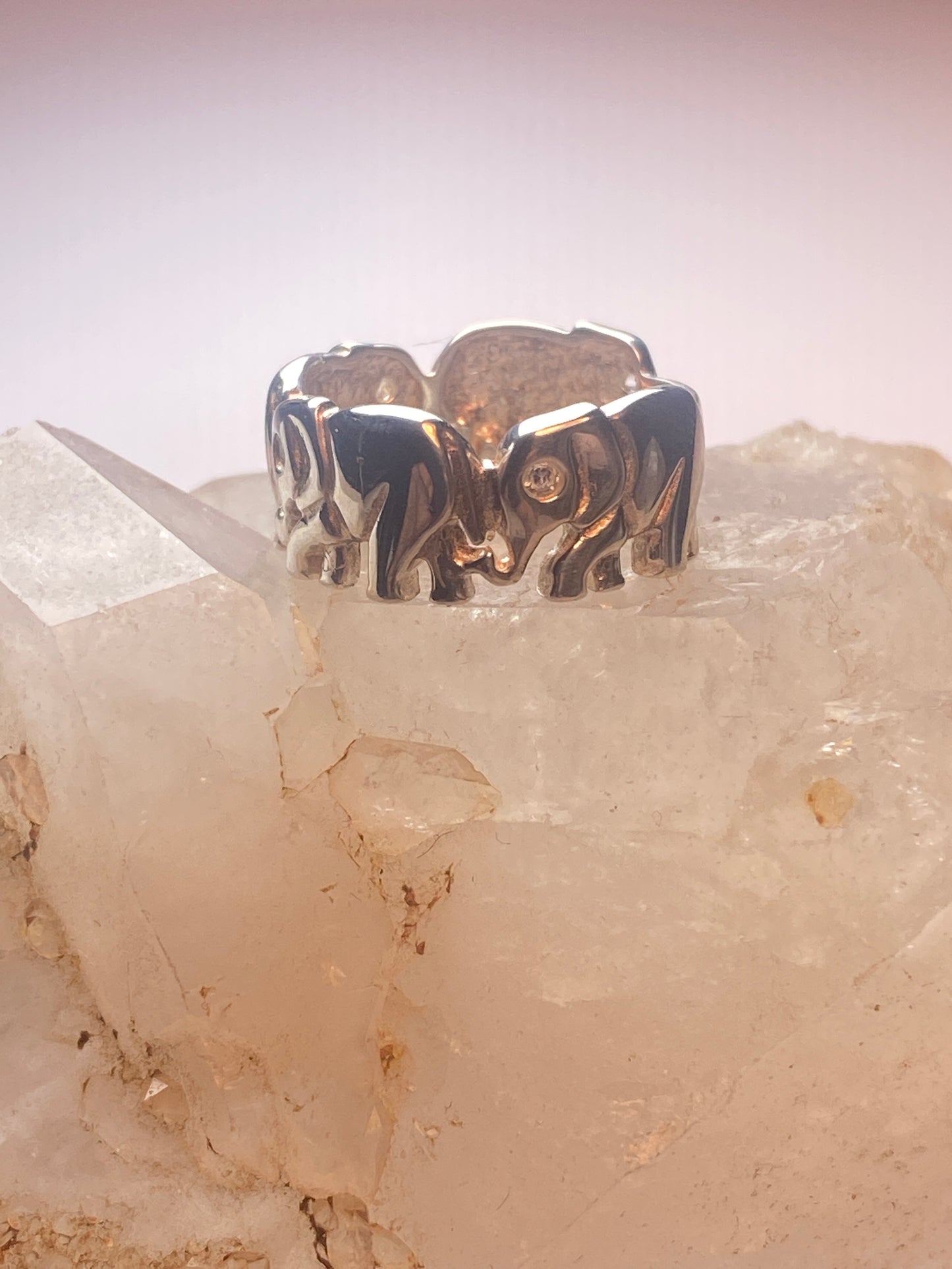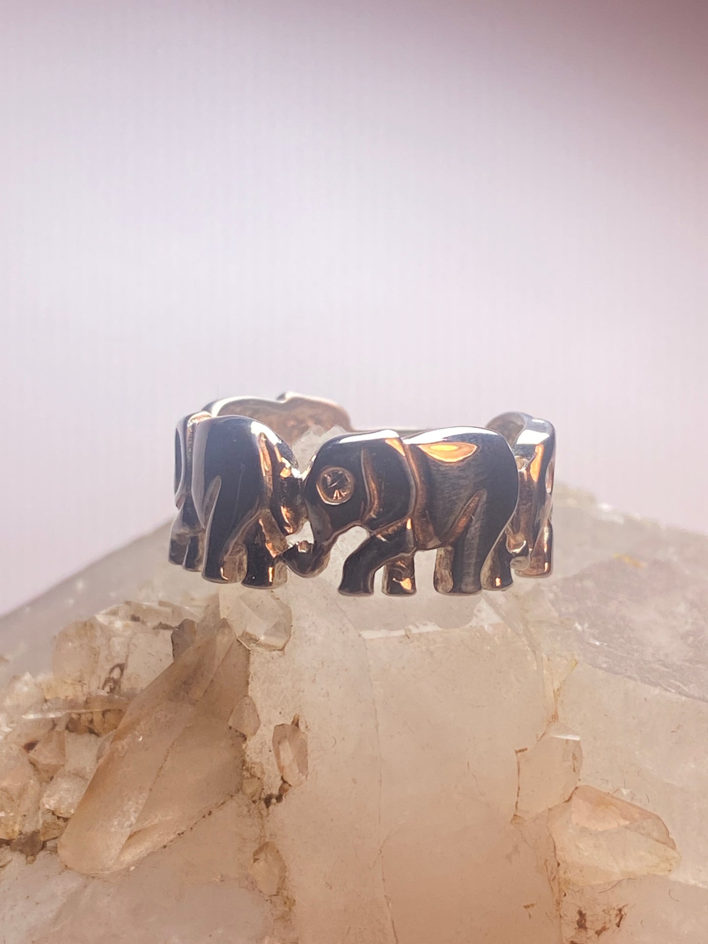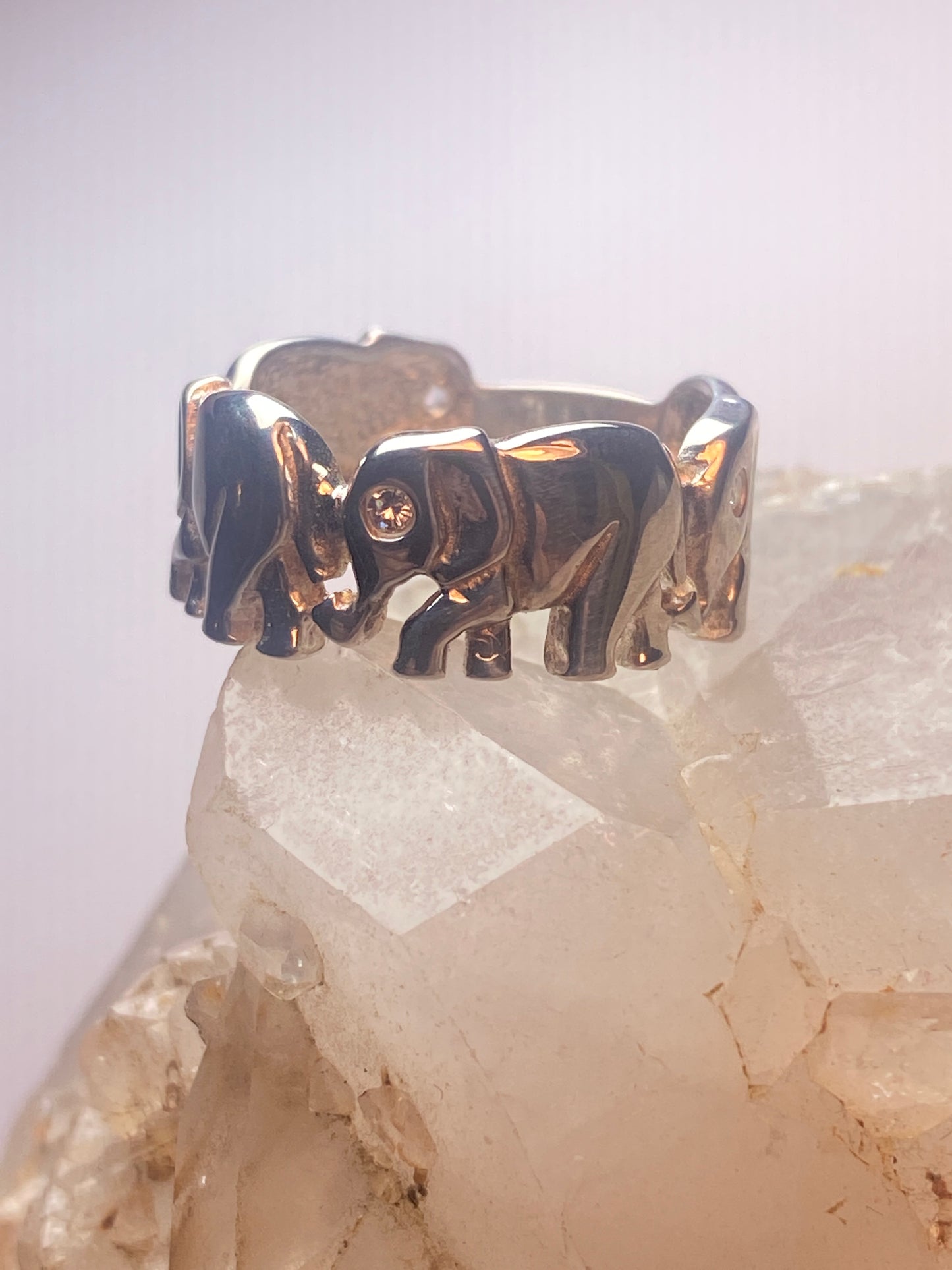 Elephant ring size 5.50 elephants band pinky crystal eyes sterling silver women girls