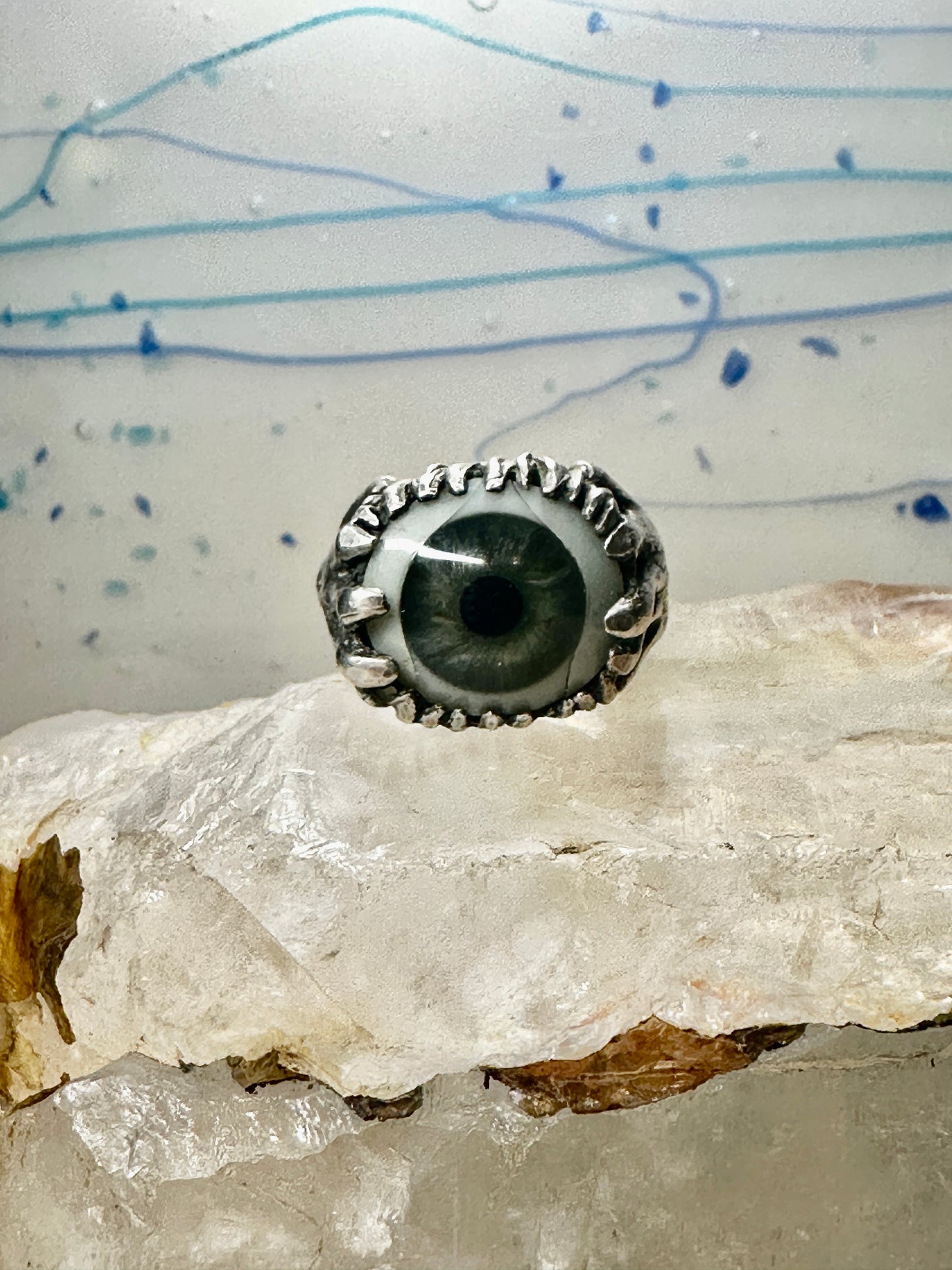 Eye ring hand holding eyes band size 5.50 sterling silver women