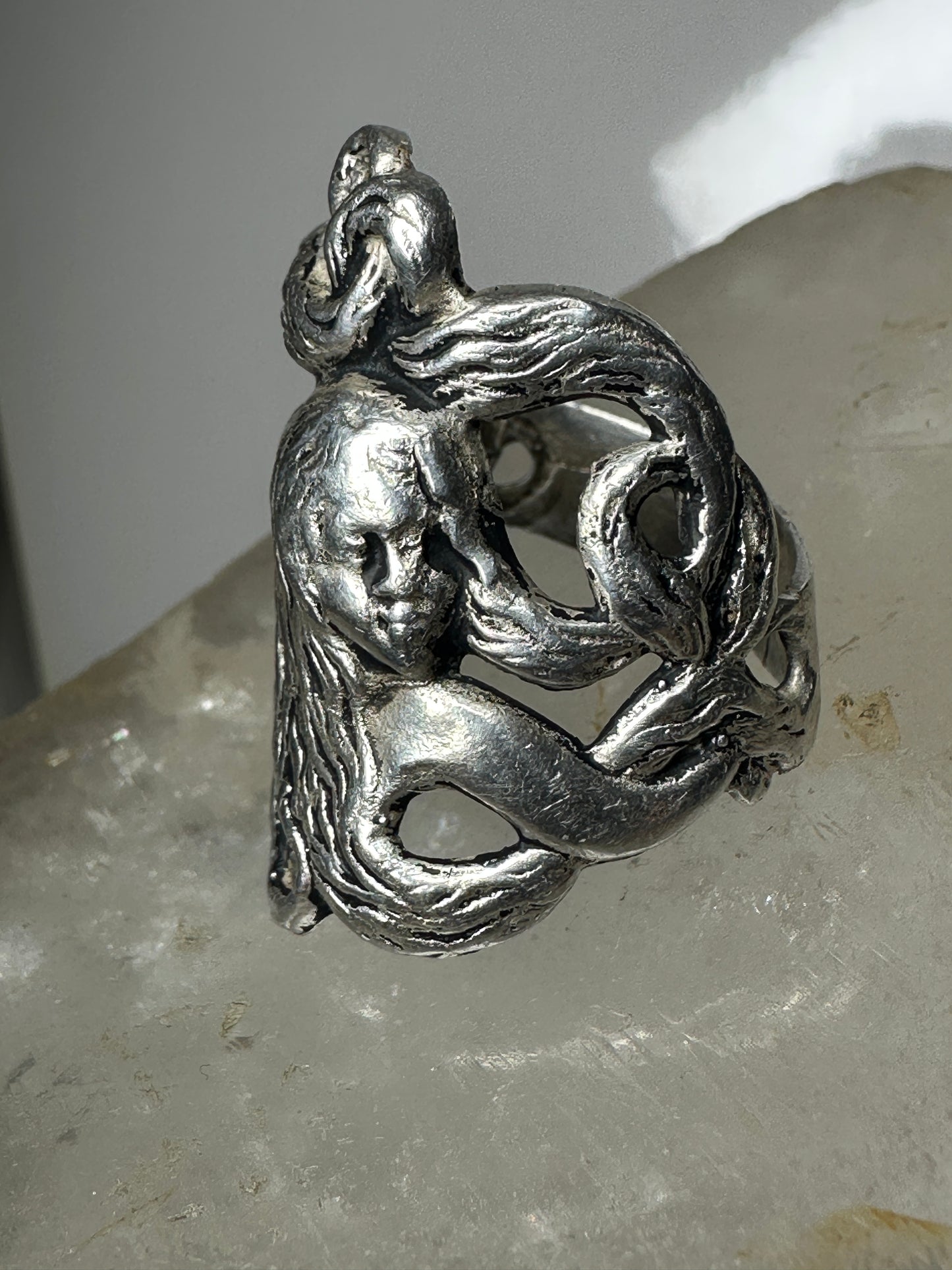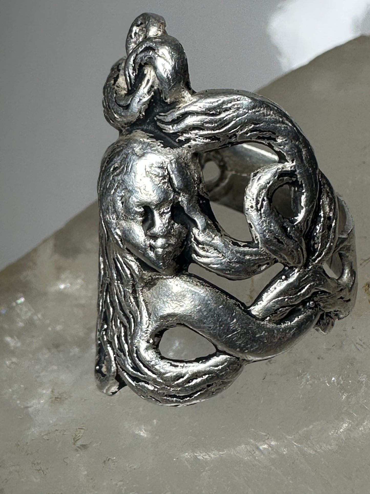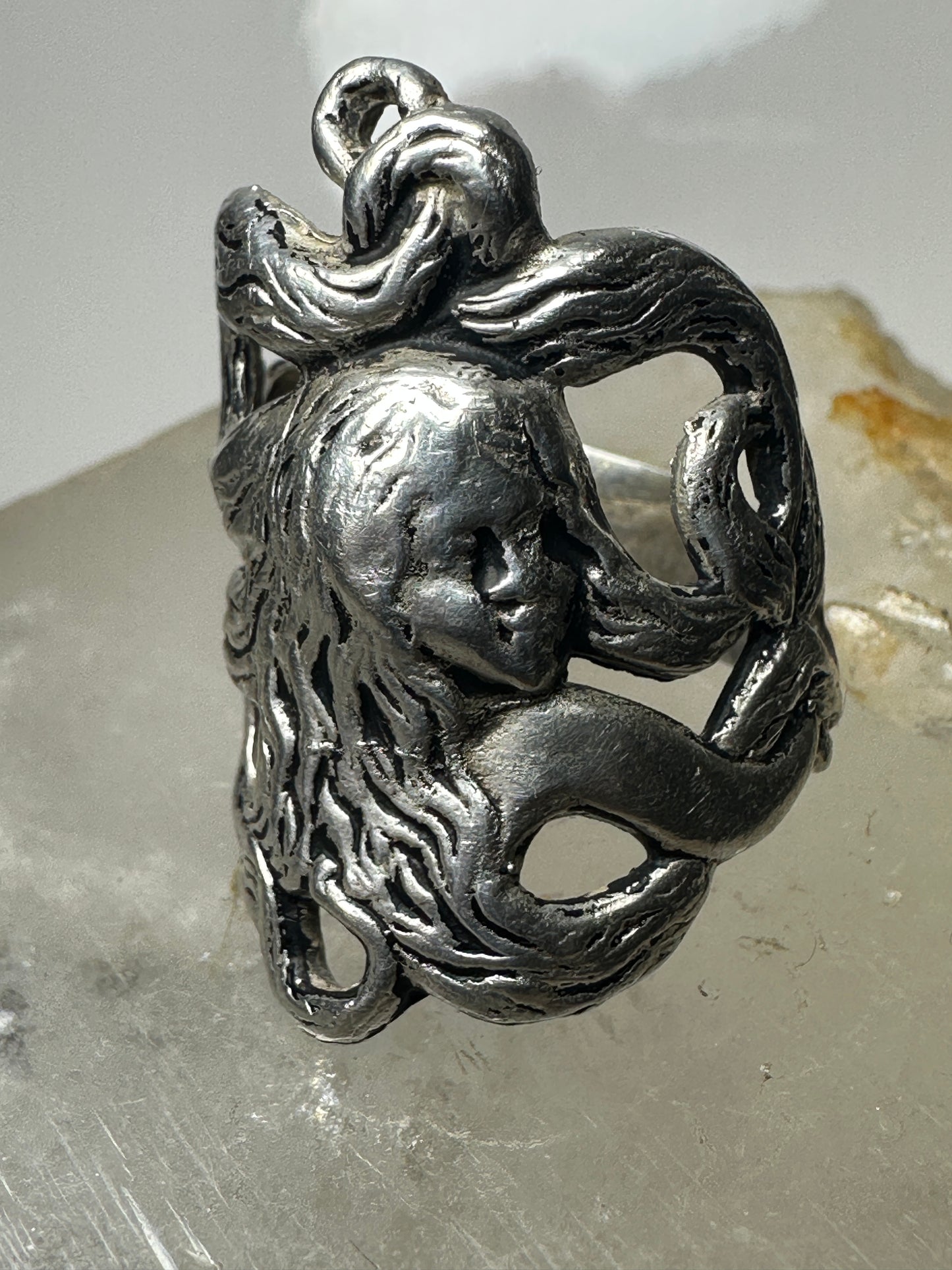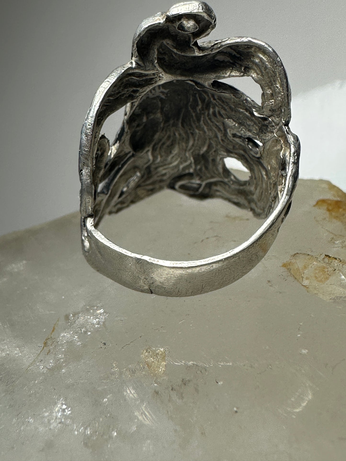 Face ring art deco band size 7.25 sterling silver women