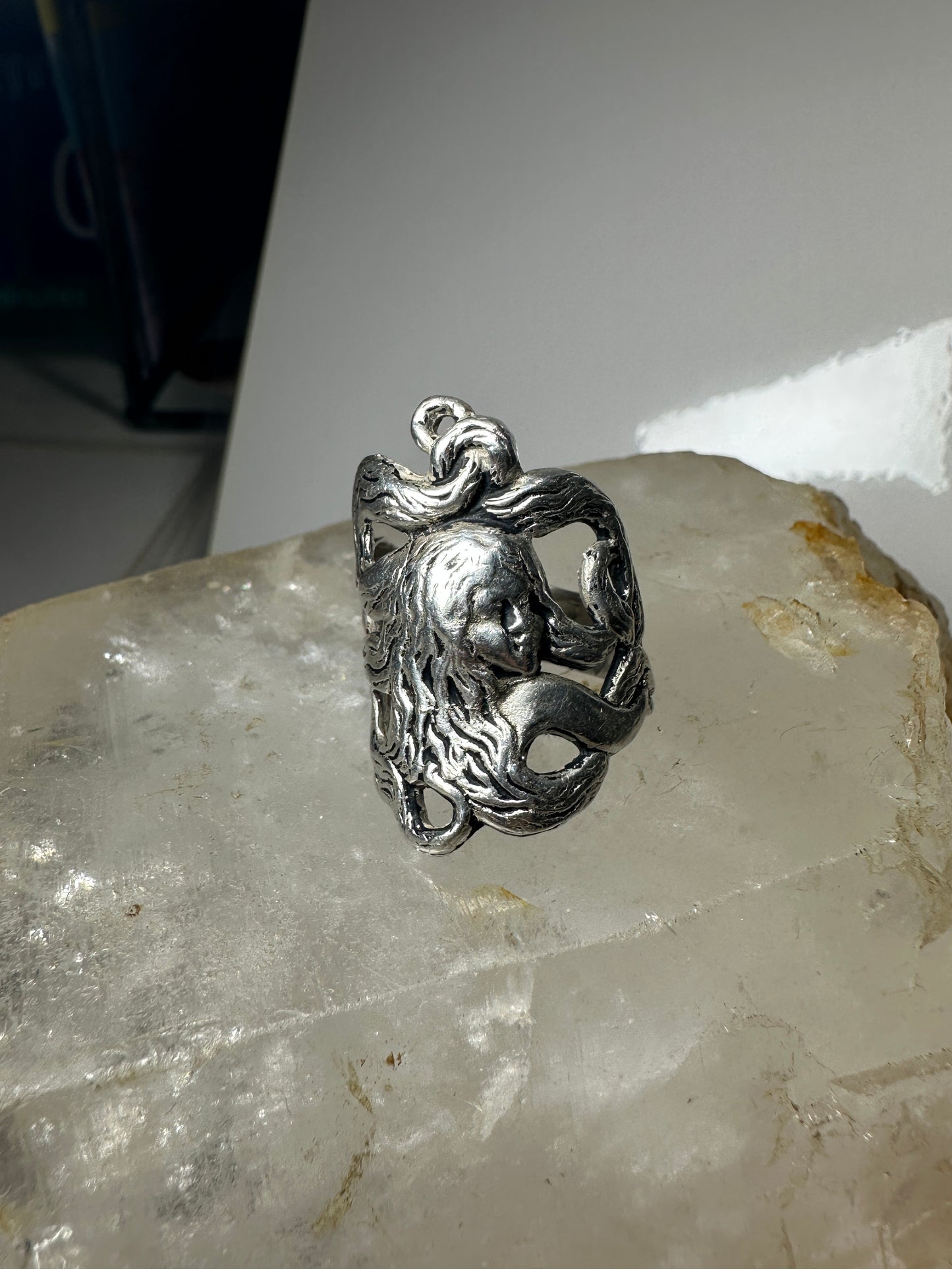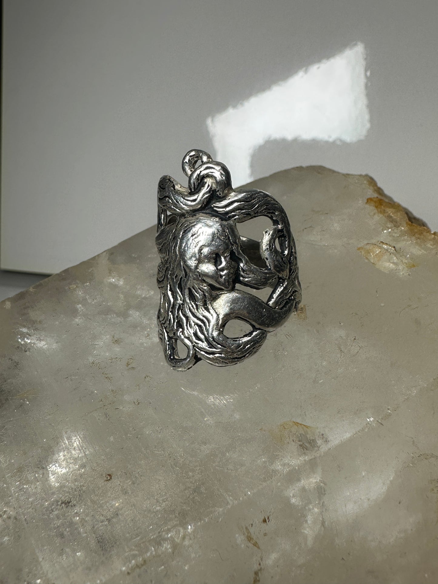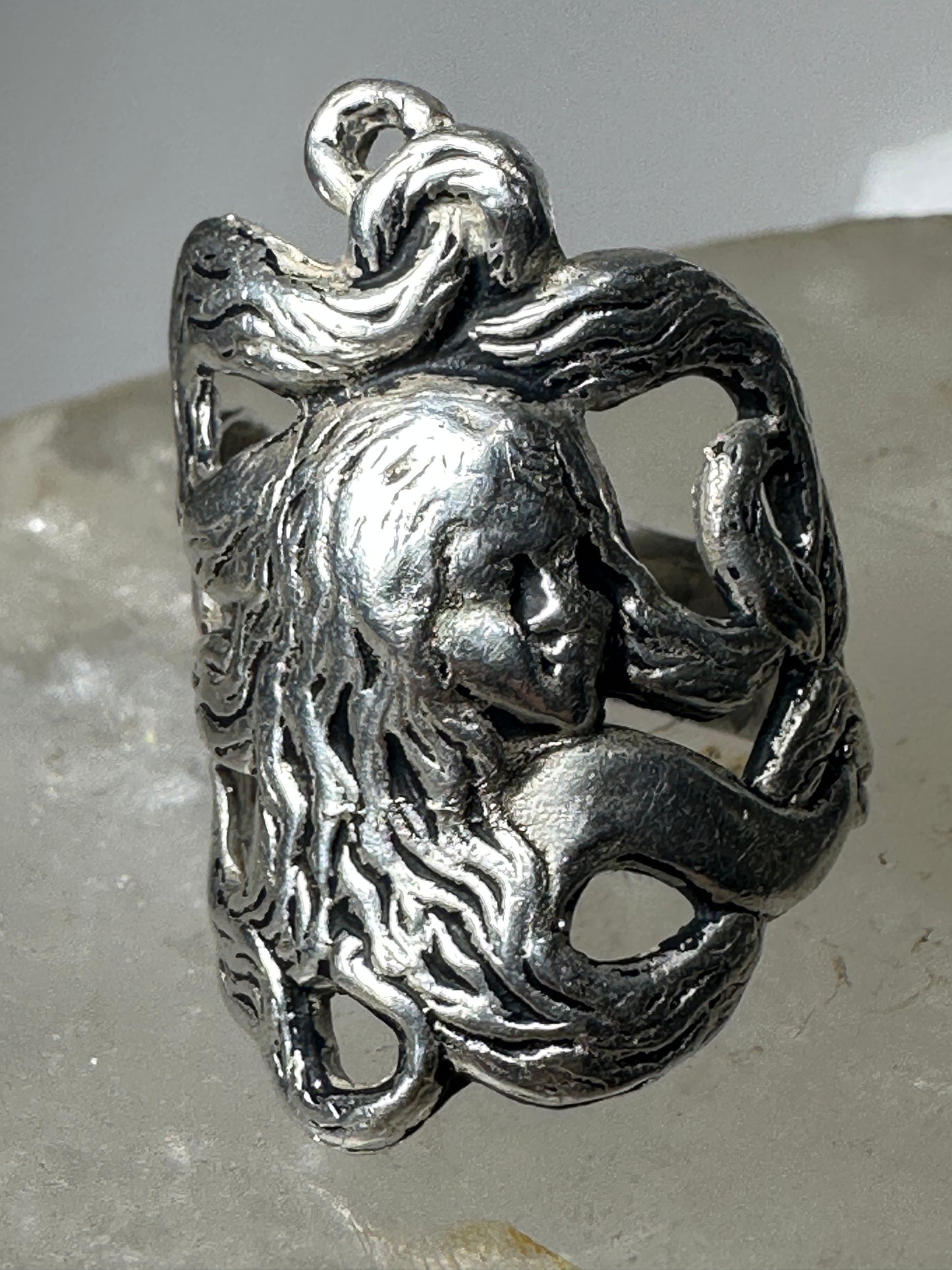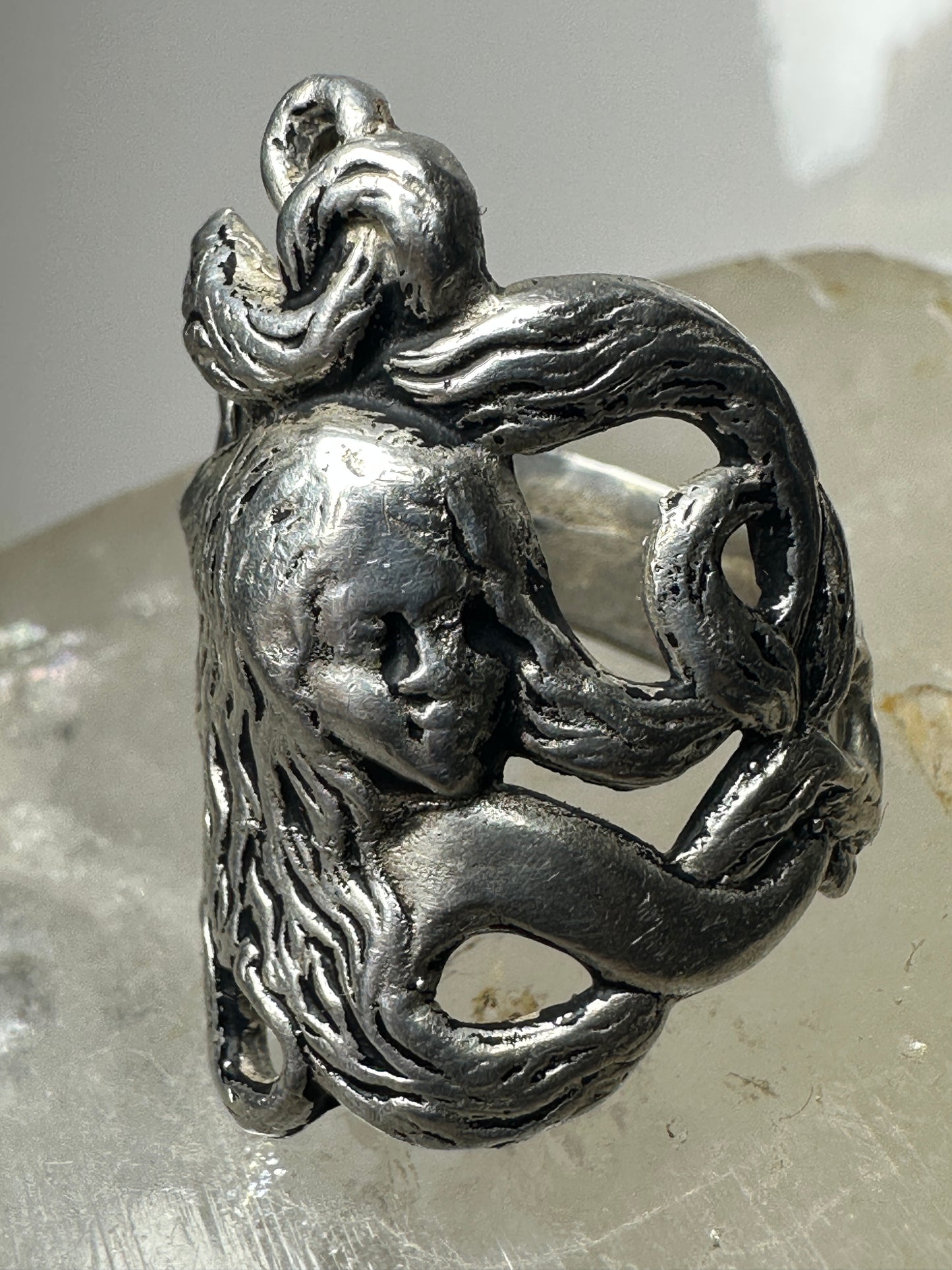 Face ring art deco band size 7.25 sterling silver women