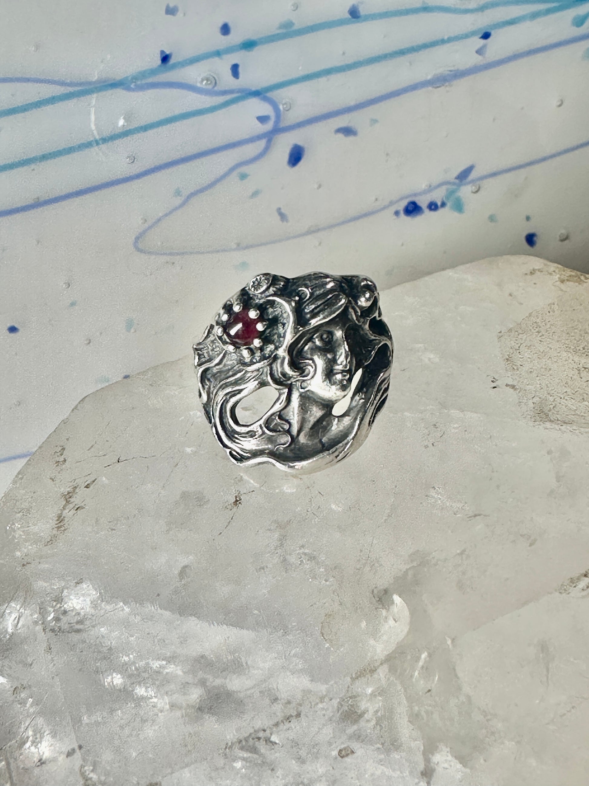 Face ring art deco style flower floral band sterling silver size 7 girls women girls