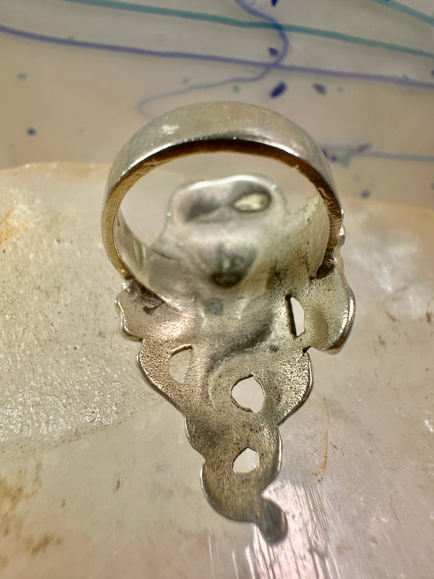 Face ring Art Nouveau long band size 6.75 sterling silver women