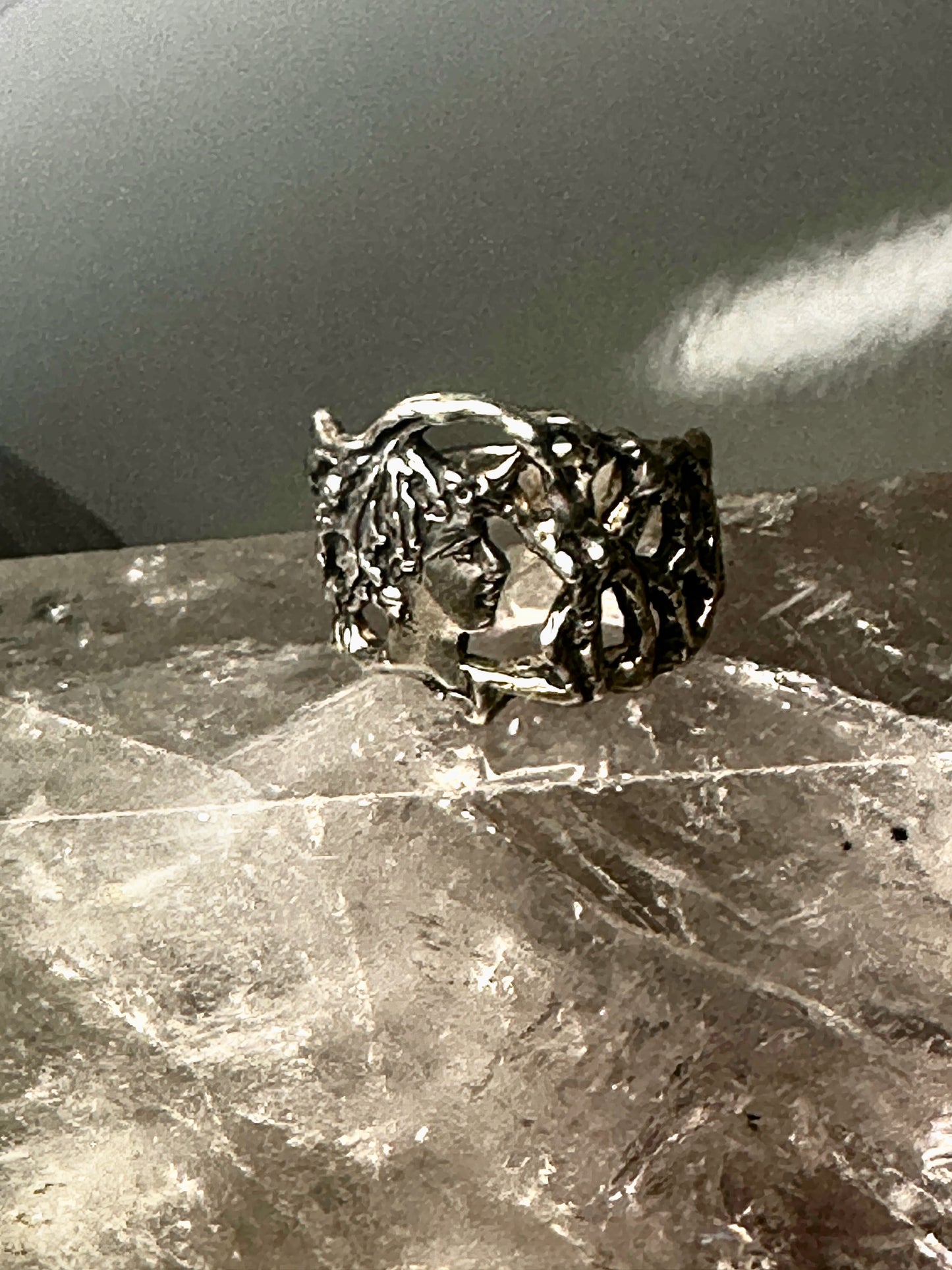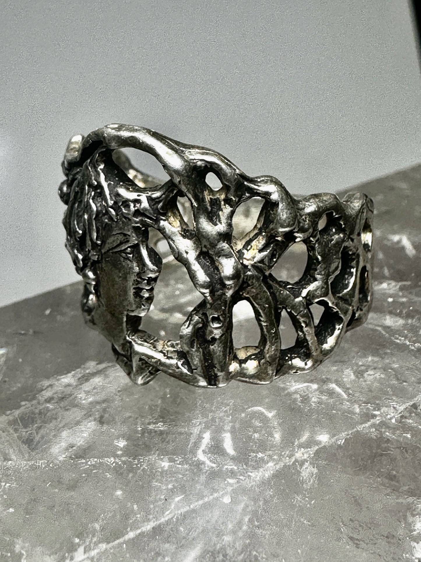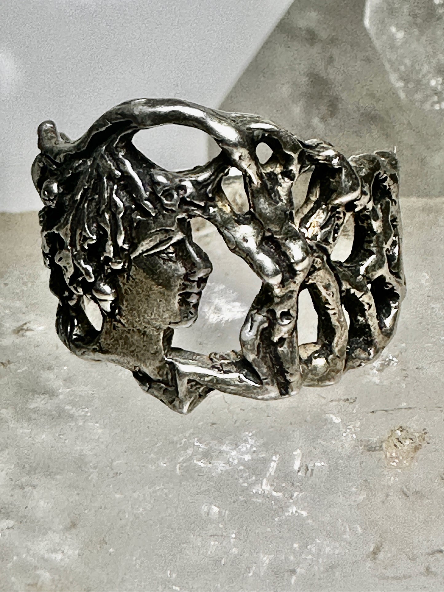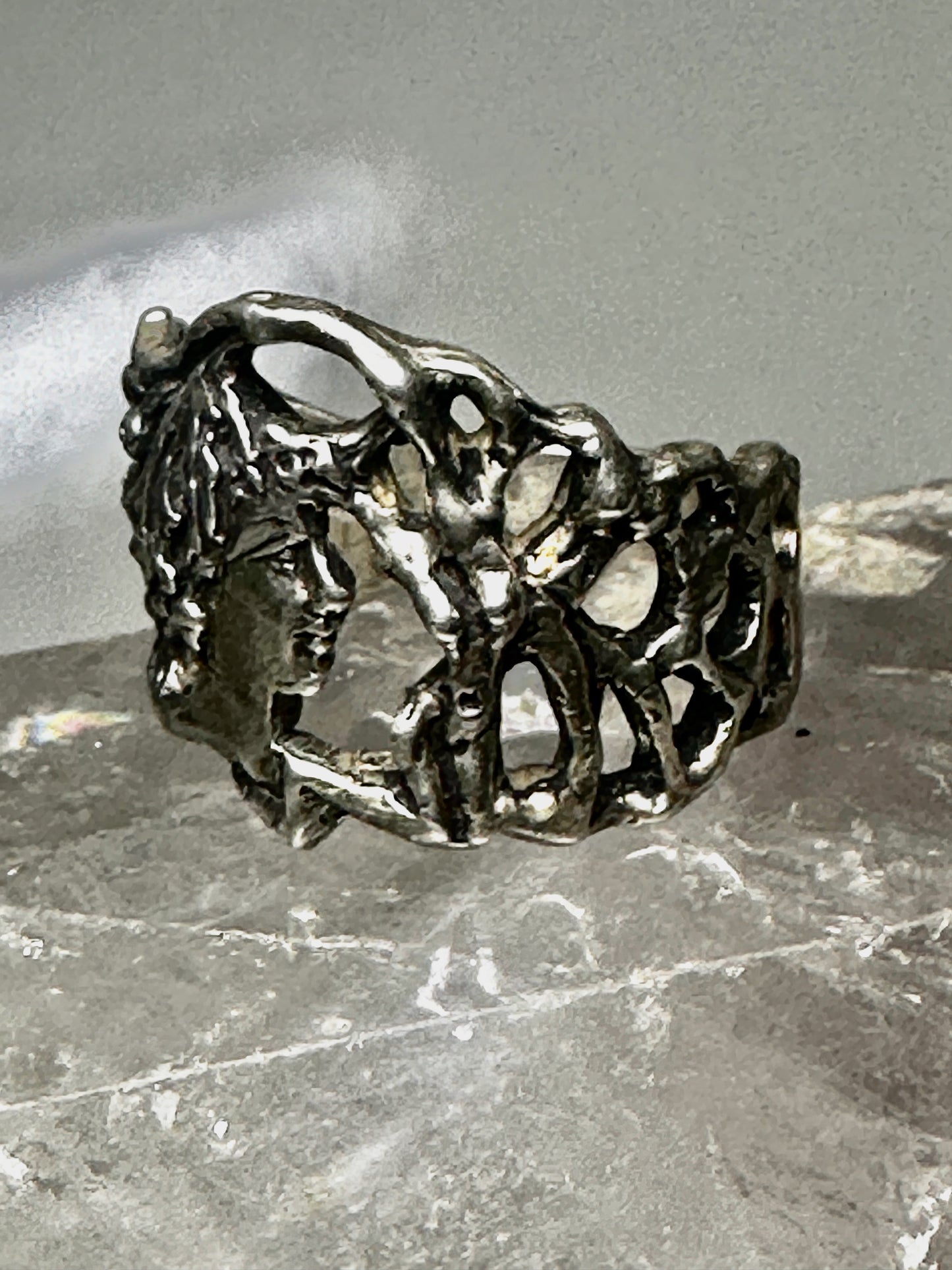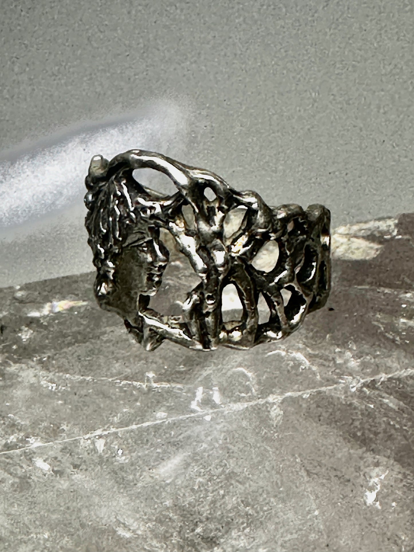 Face ring lady naked lady forest band size 7.75 leaves sterling silver women