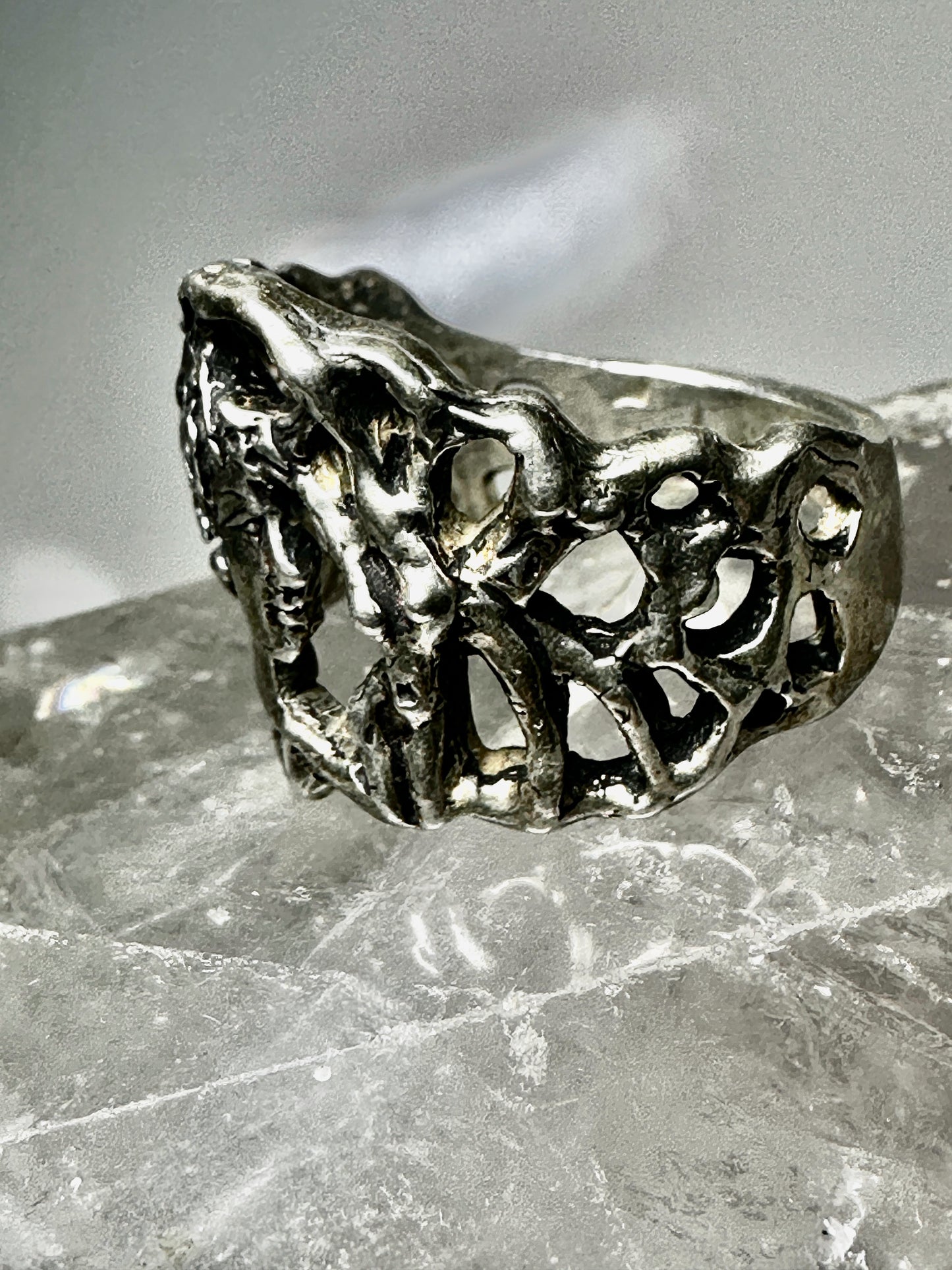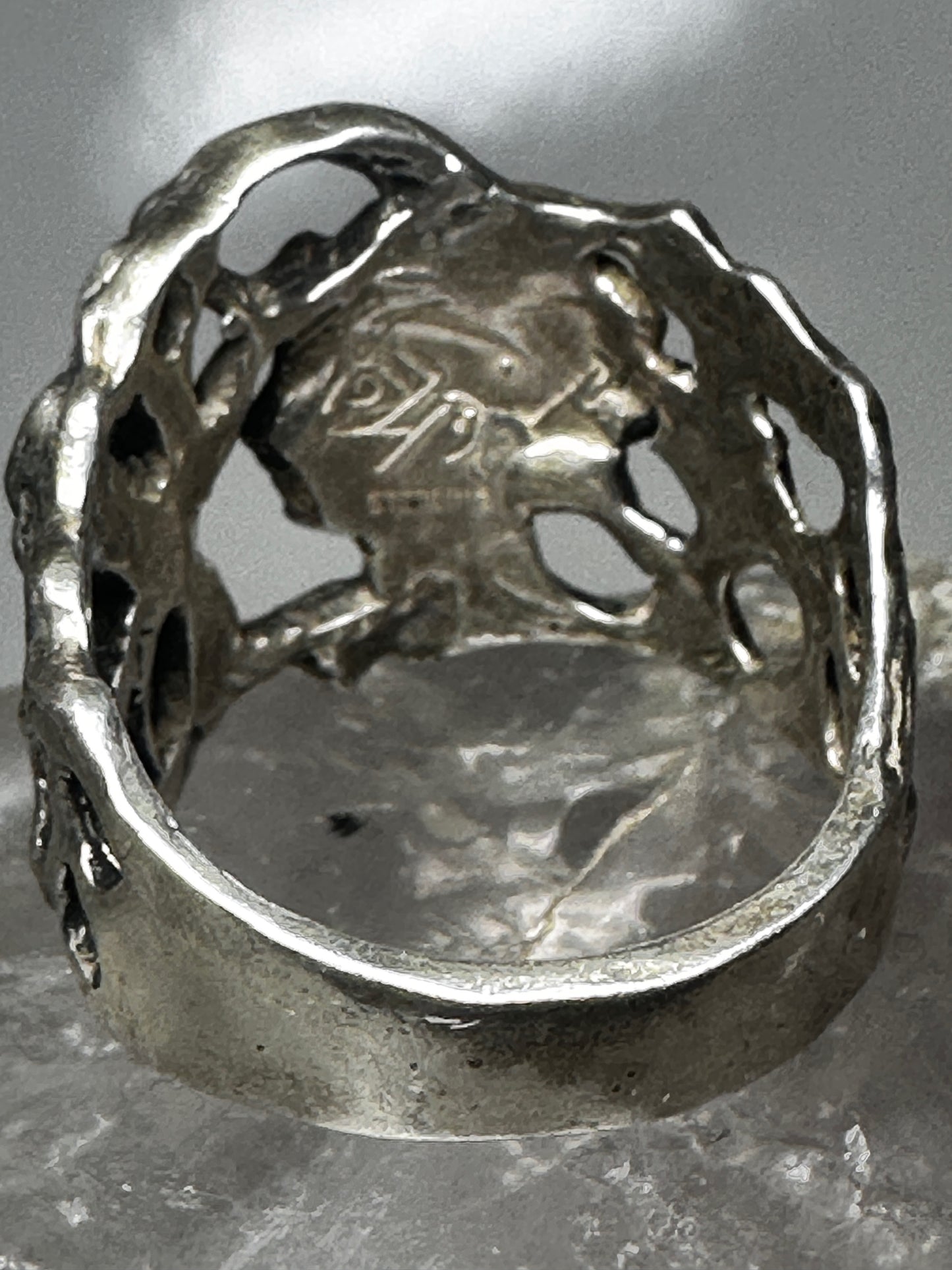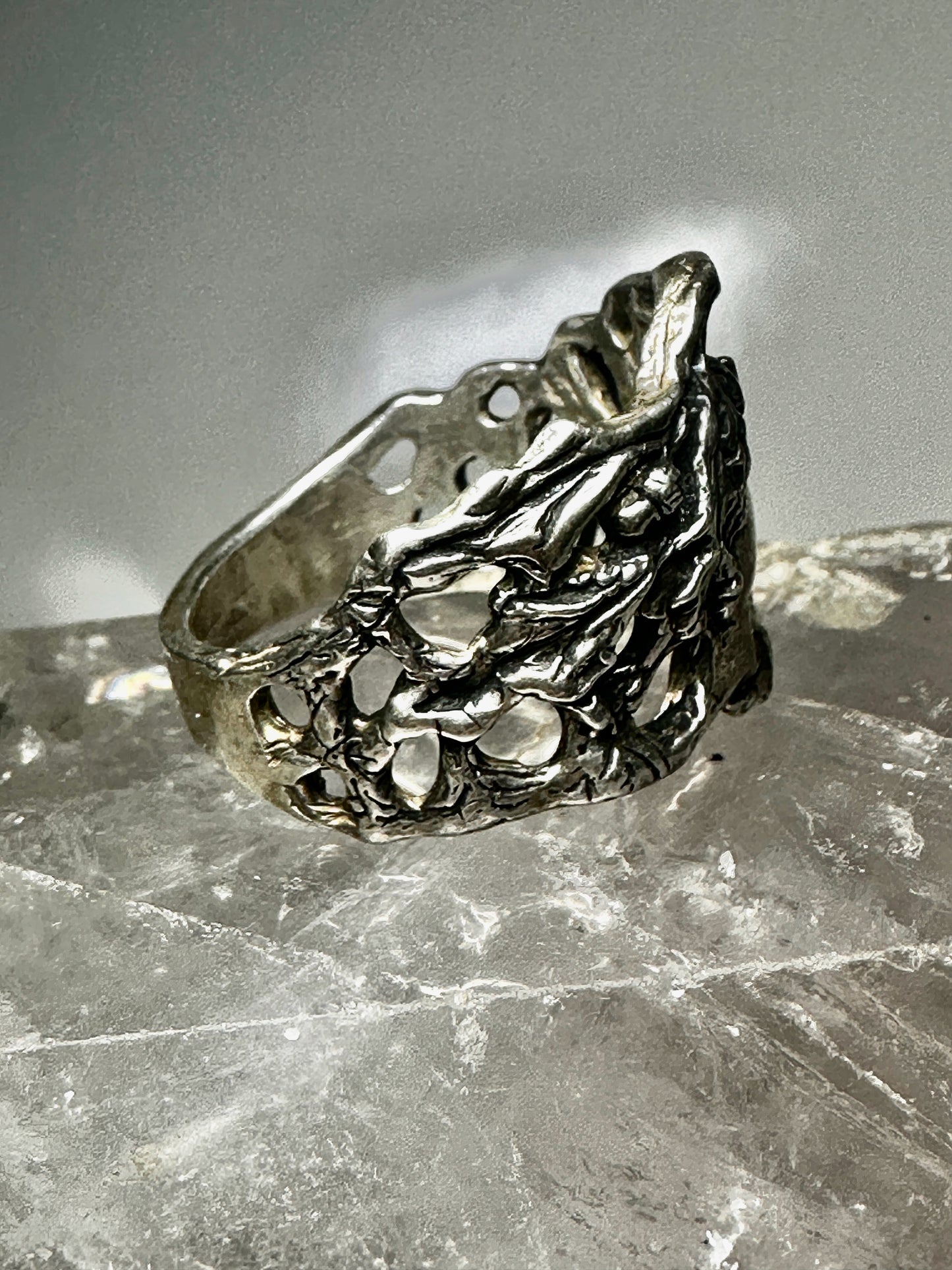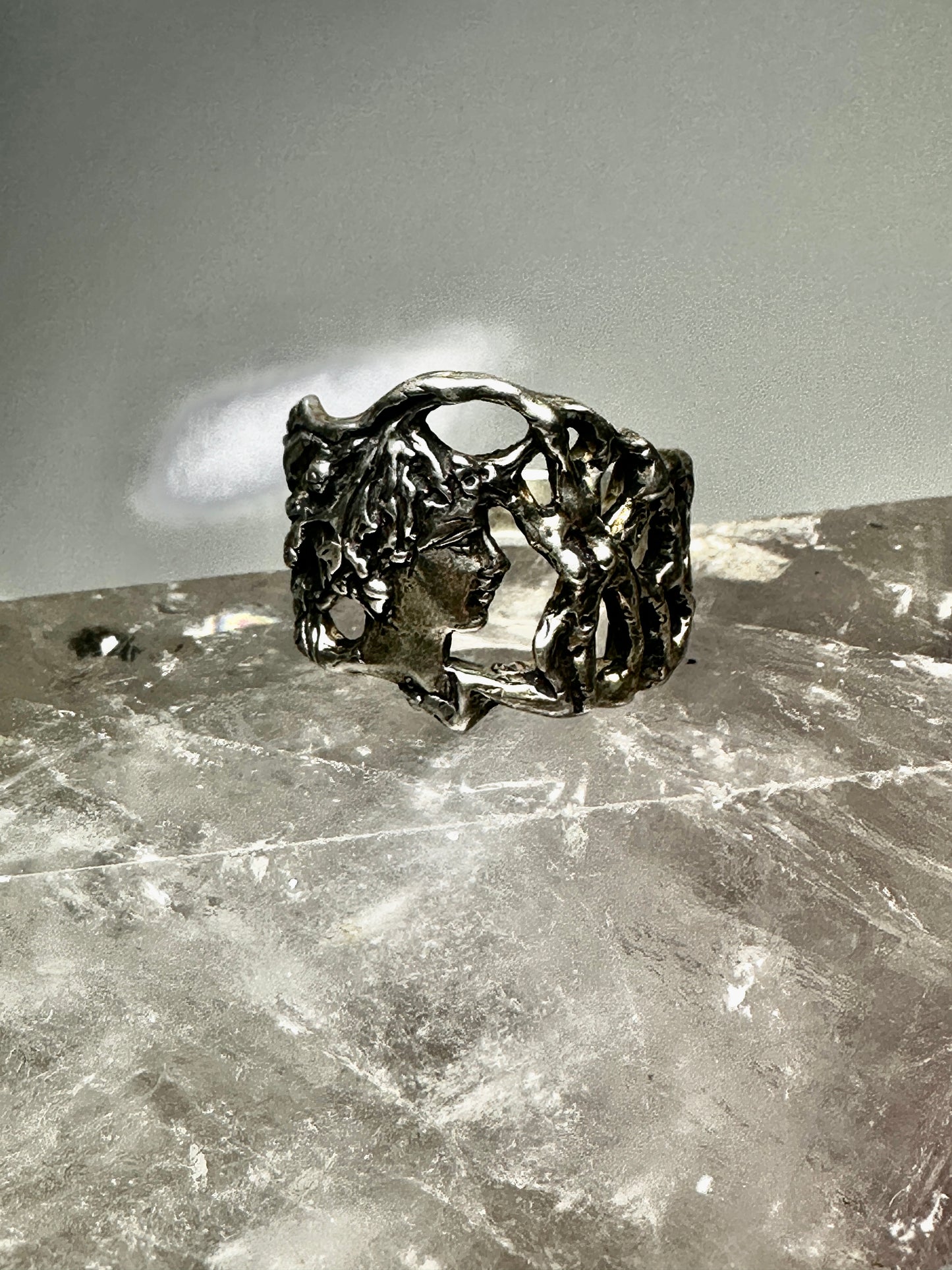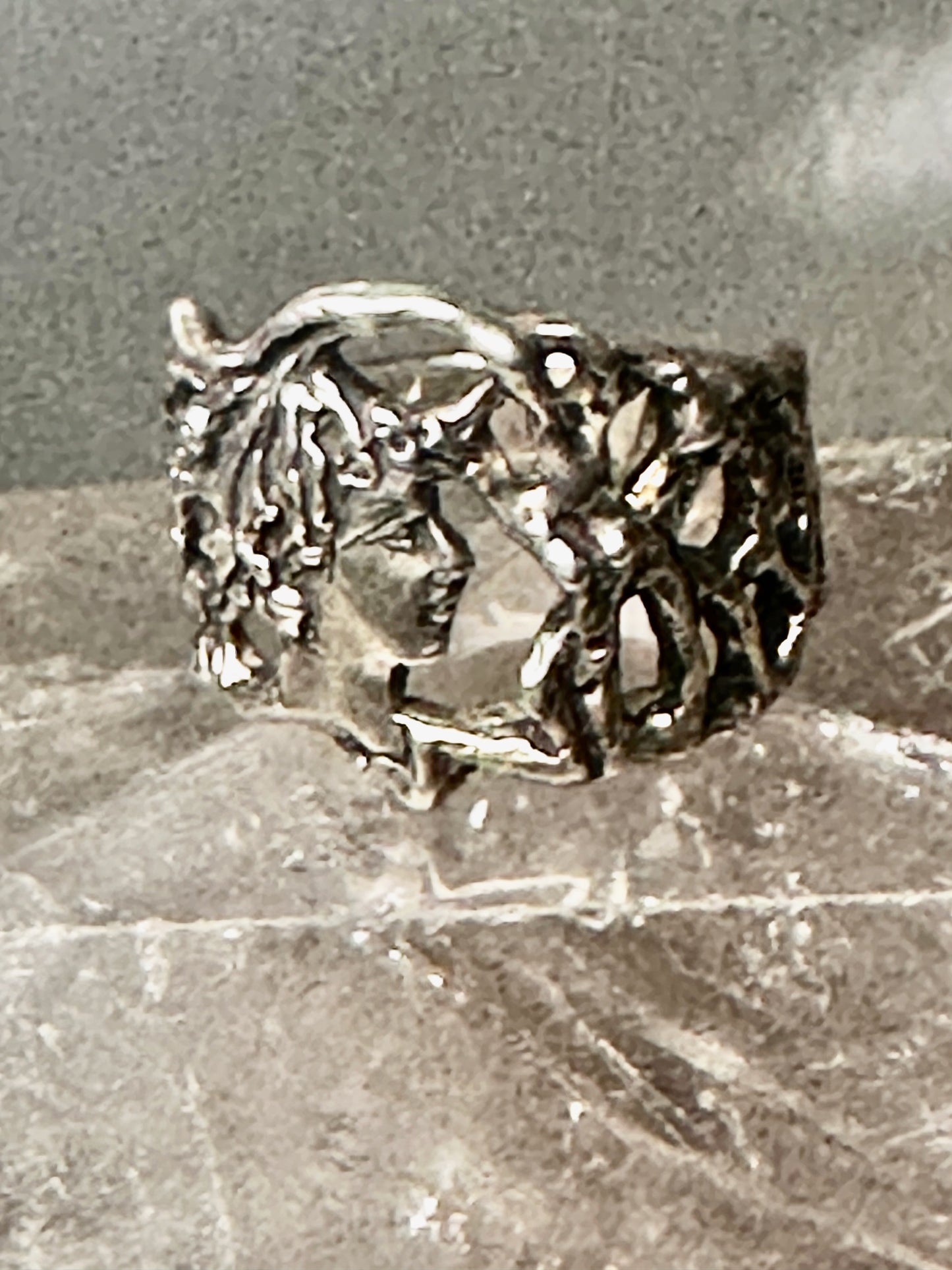 Face ring lady naked lady forest band size 7.75 leaves sterling silver women