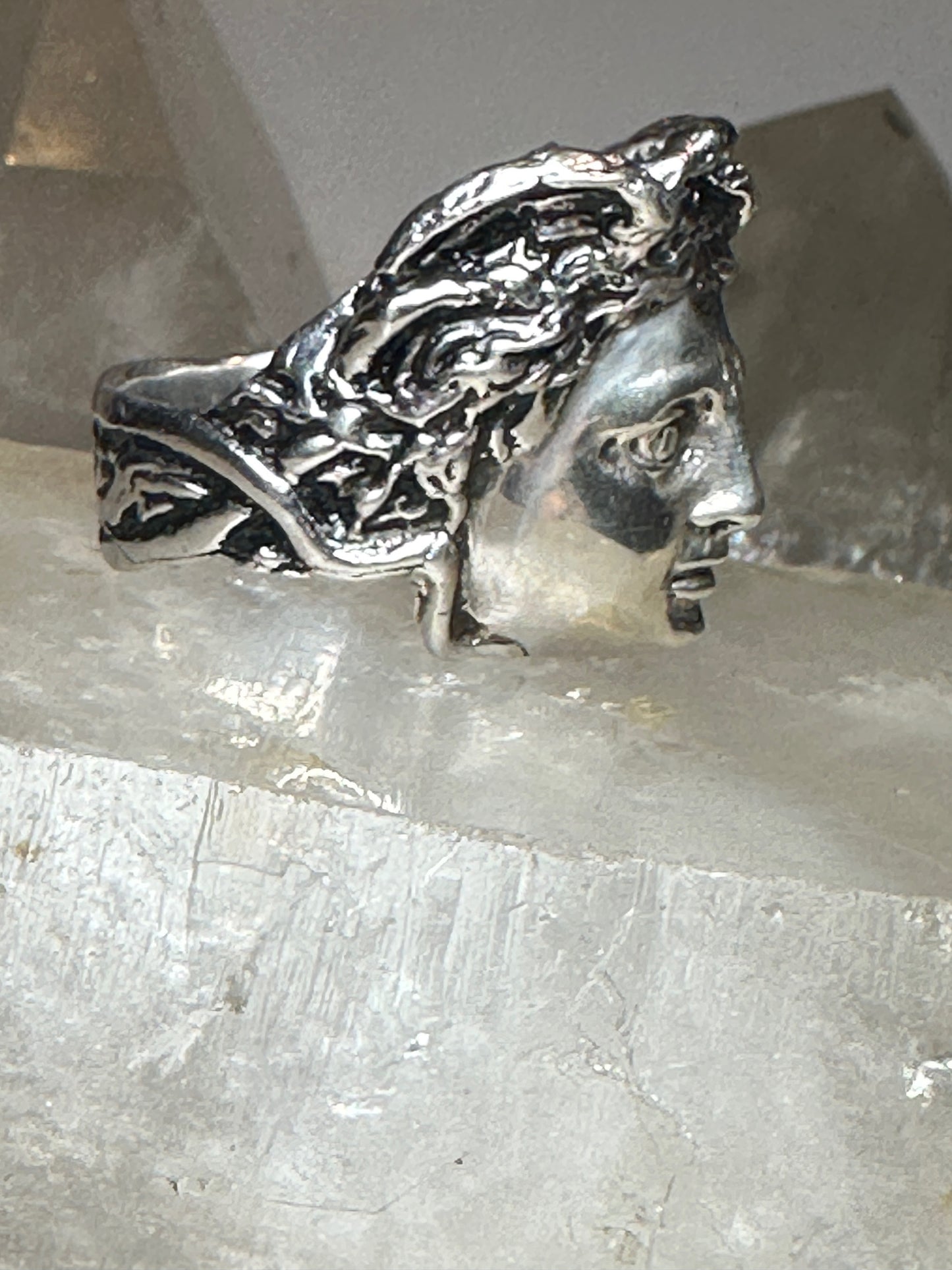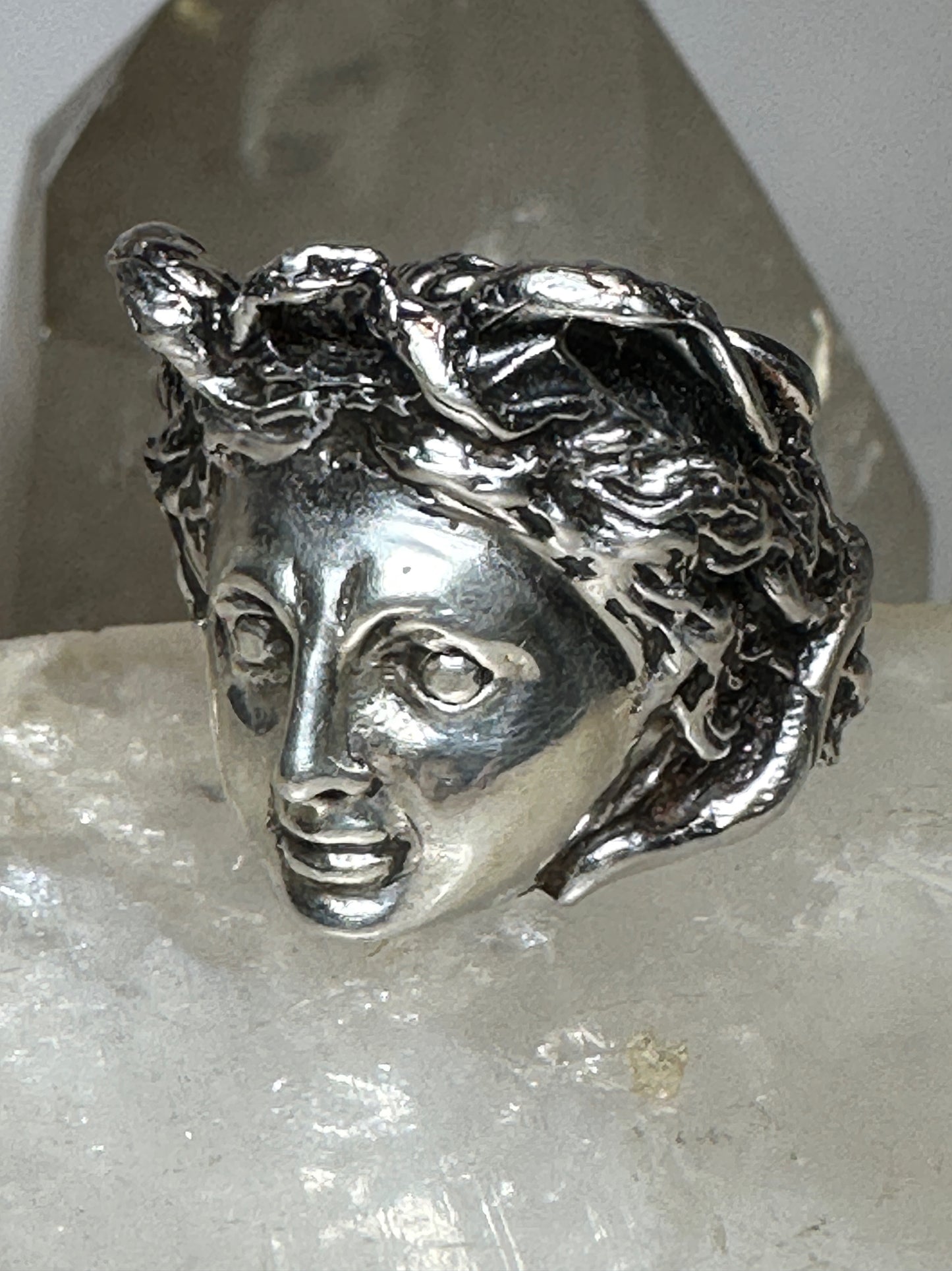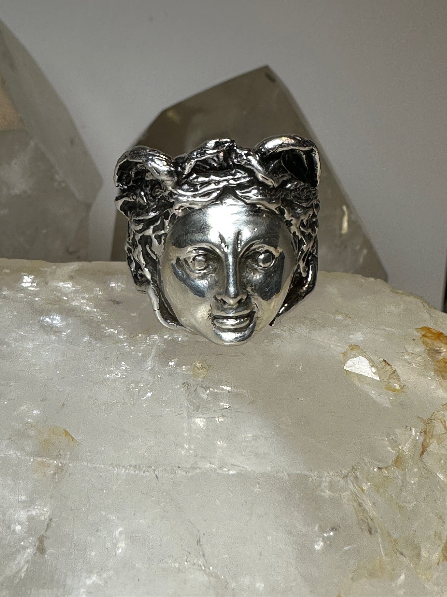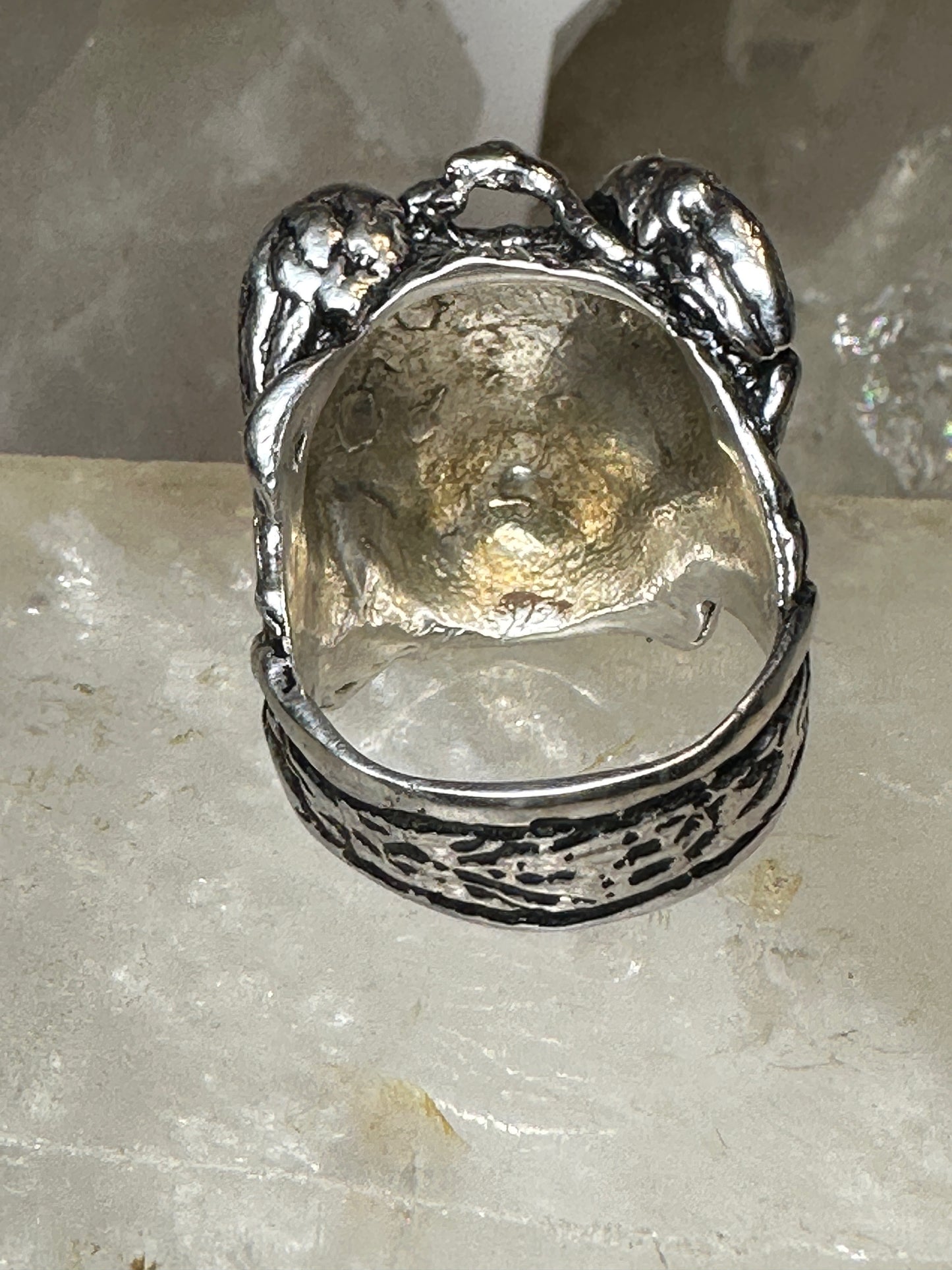 Face ring size 10.7 birds Classical Renaissance face figurative band sterling silver women men