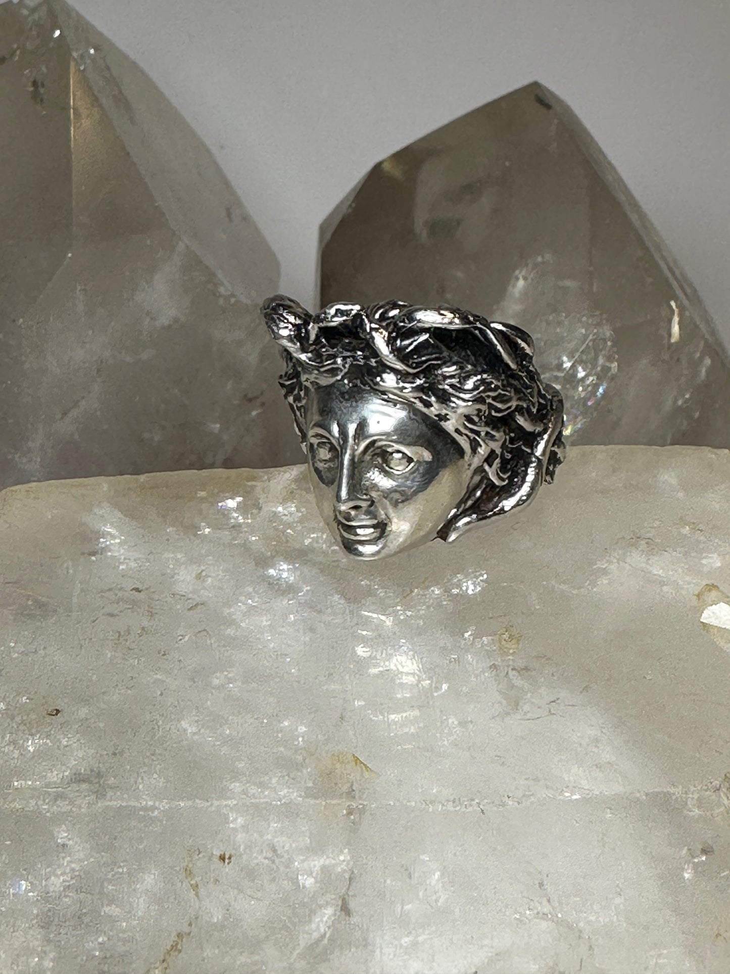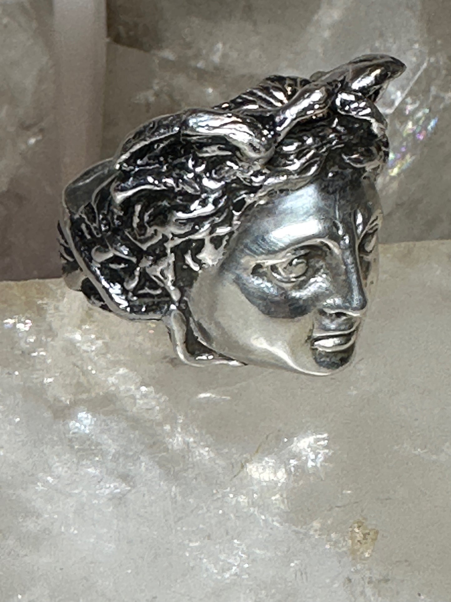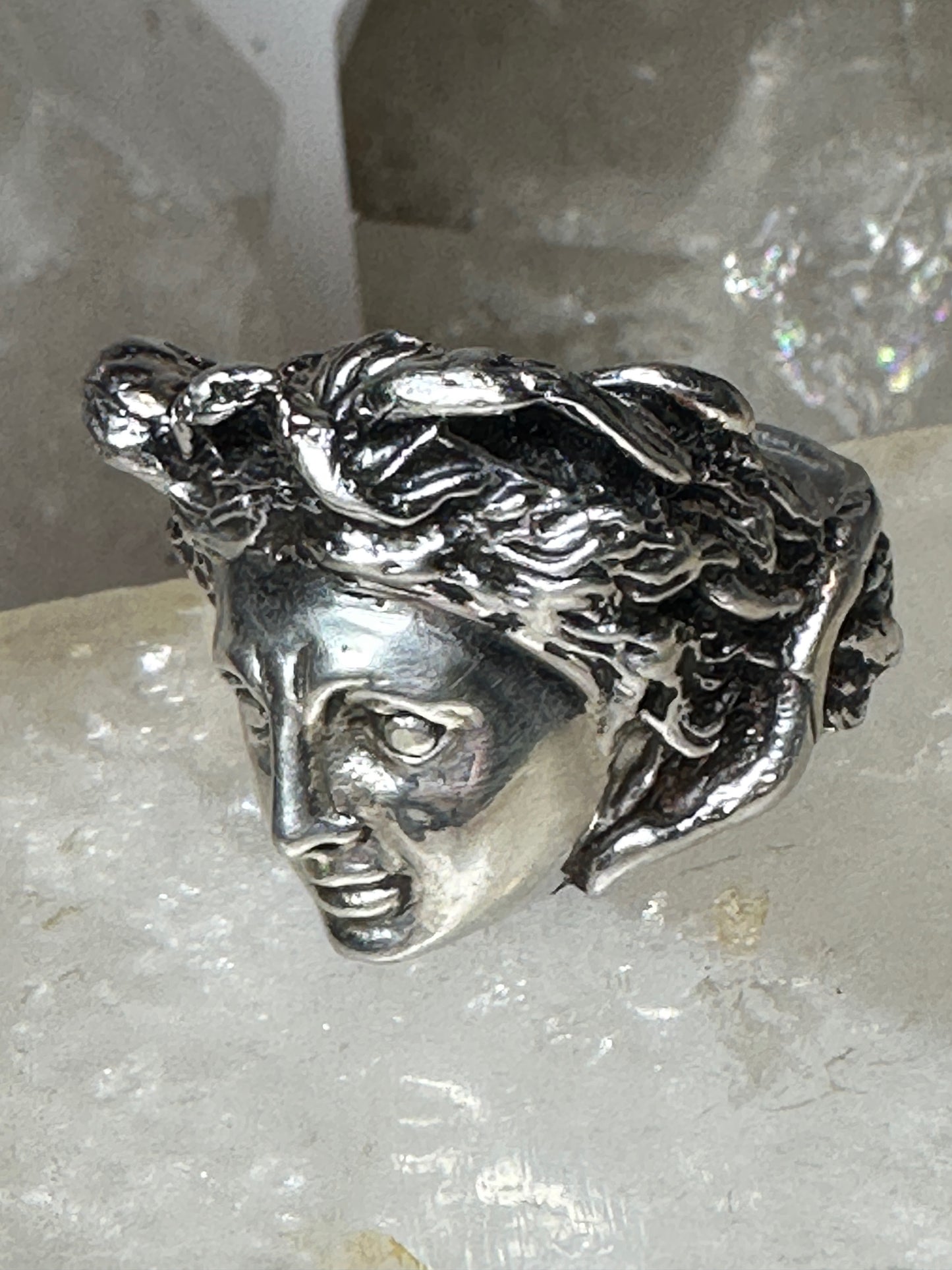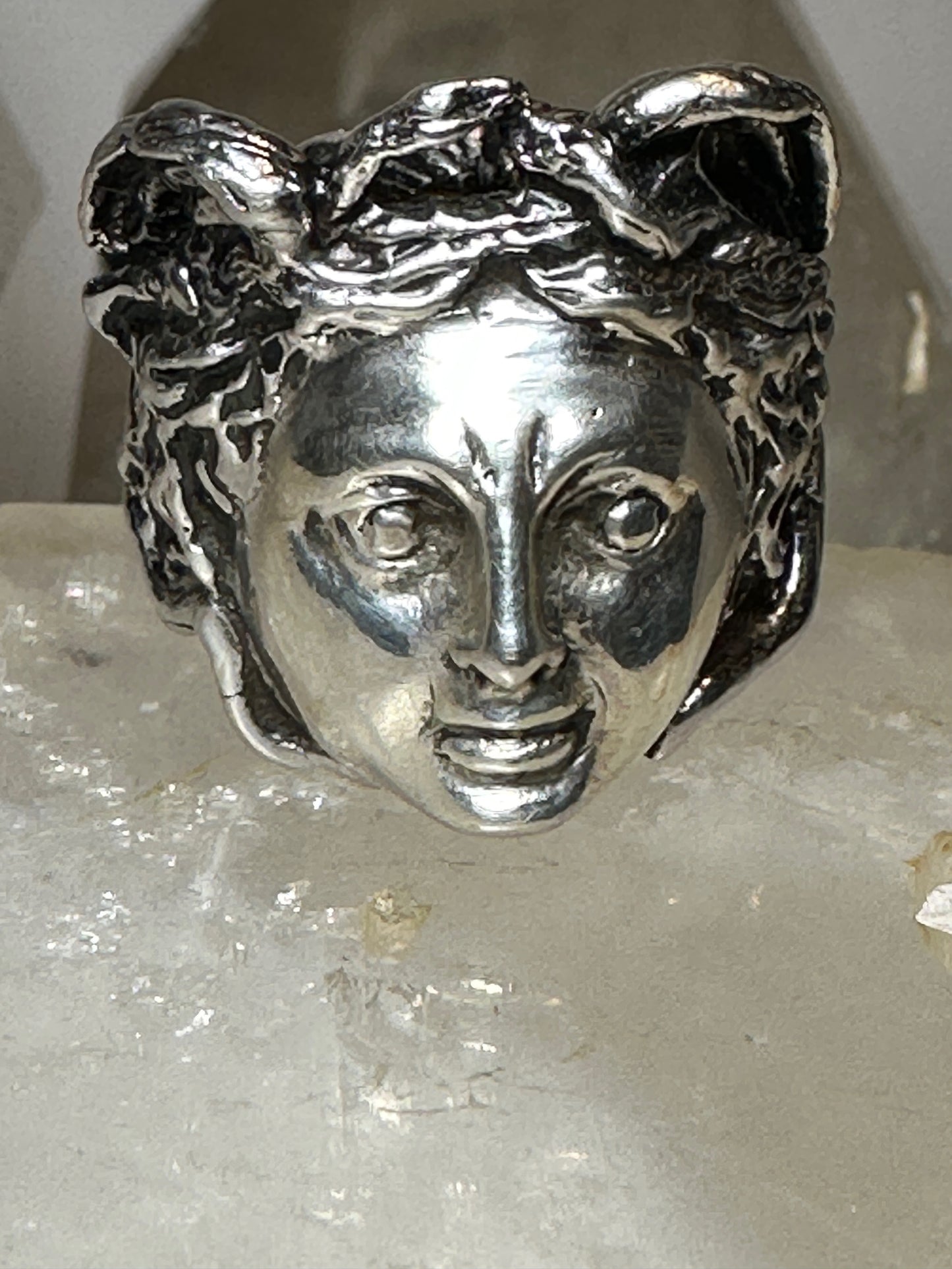Face ring size 10.7 birds Classical Renaissance face figurative band sterling silver women men