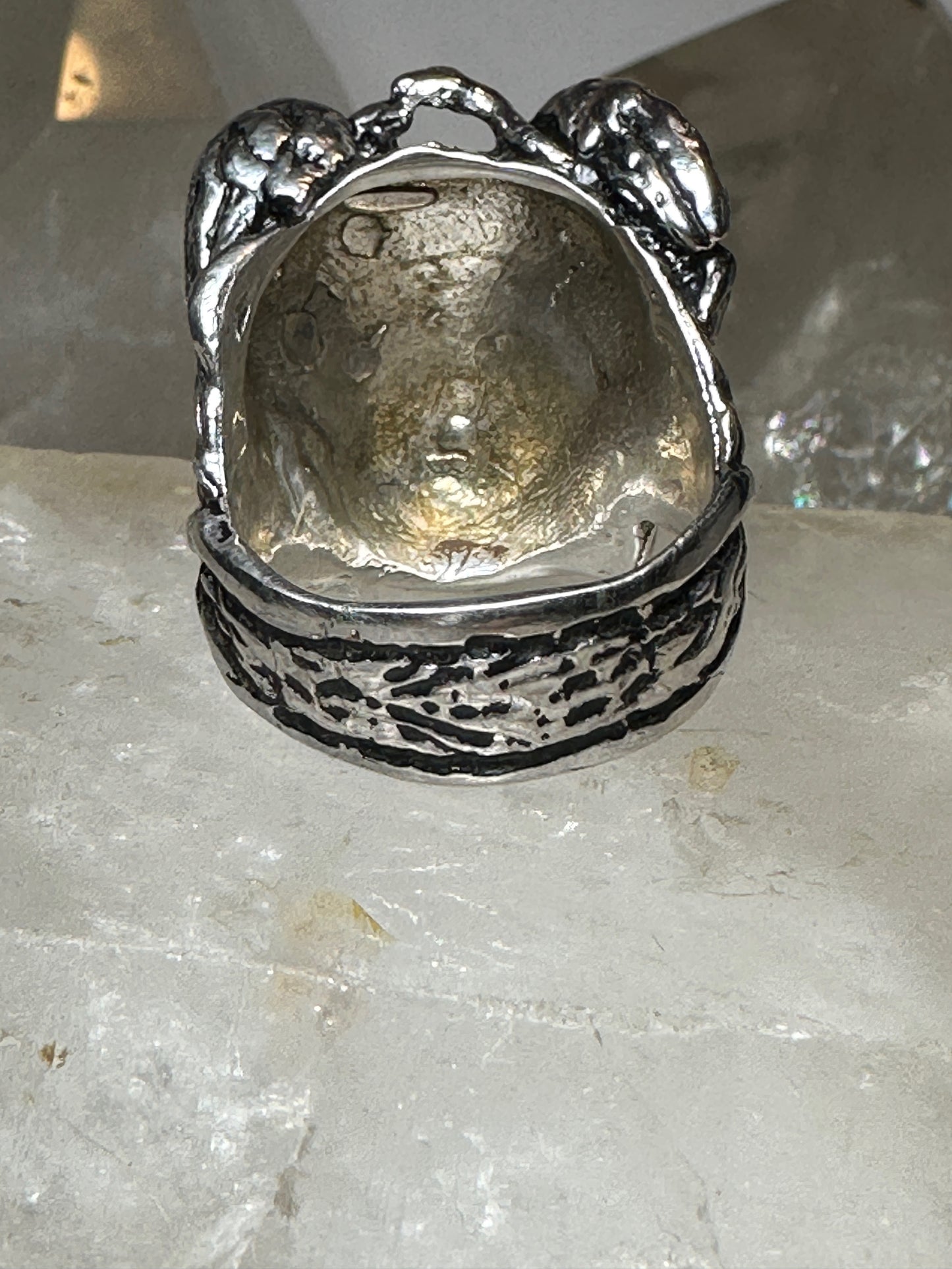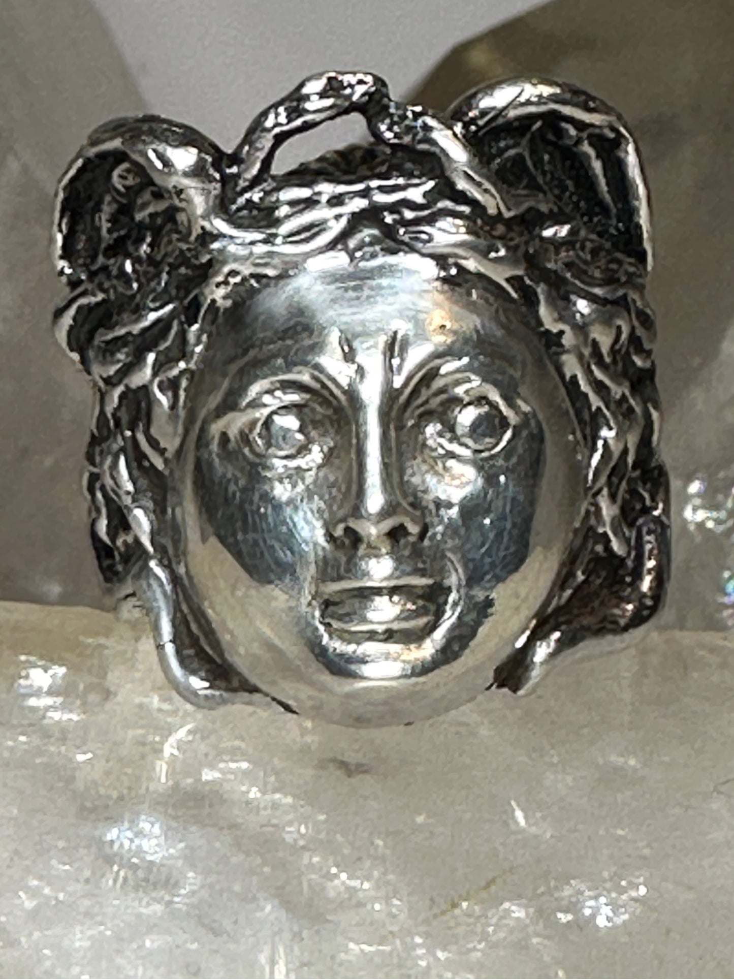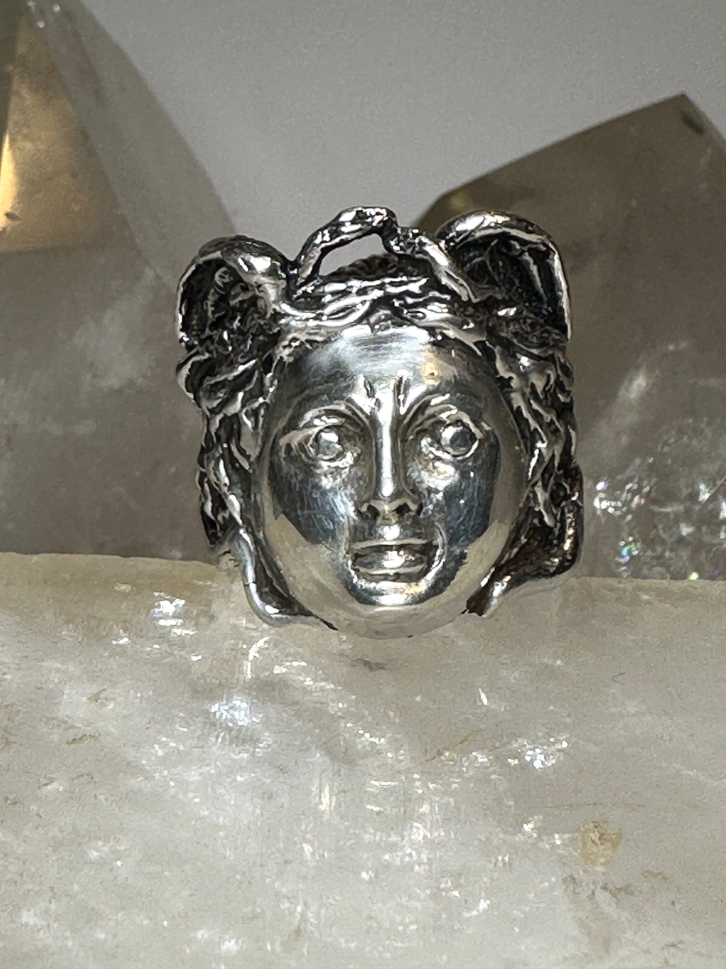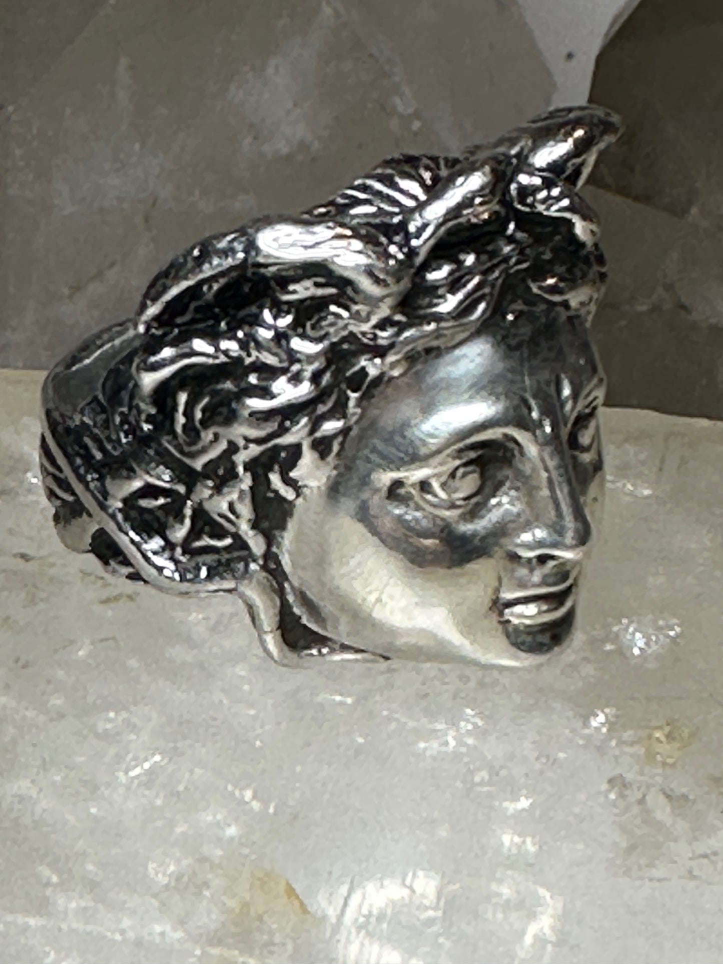 Face ring size 10.7 birds Classical Renaissance face figurative band sterling silver women men